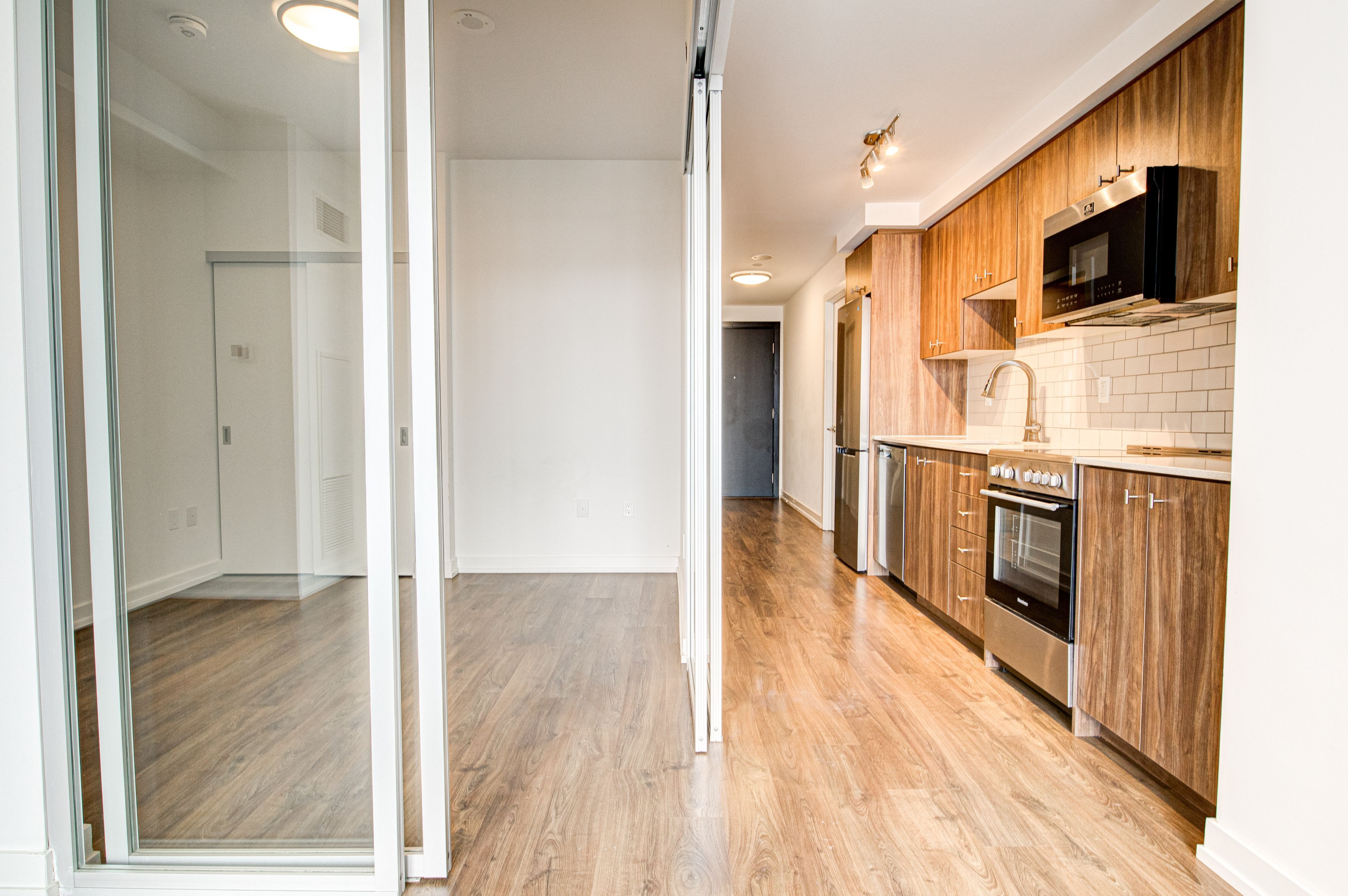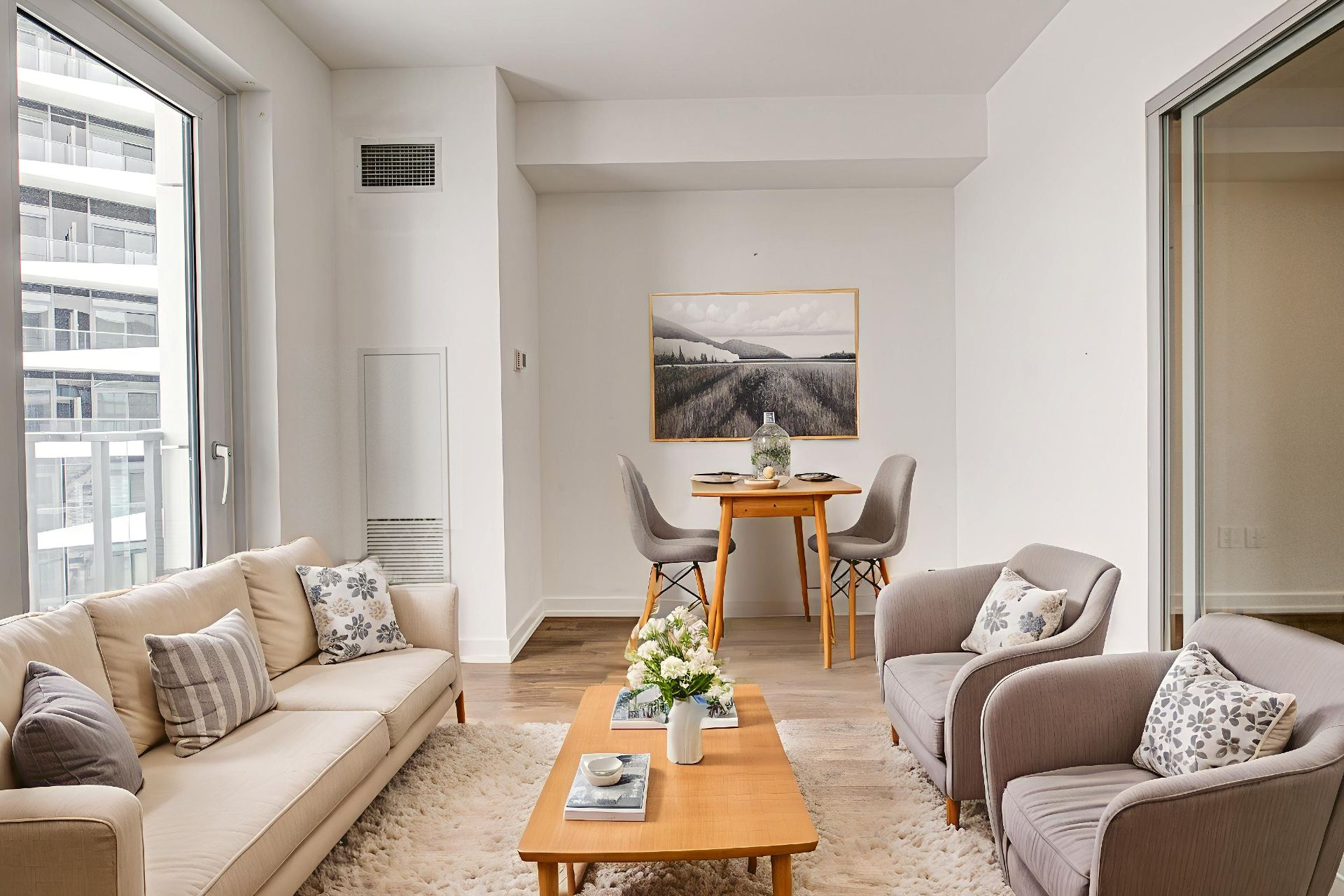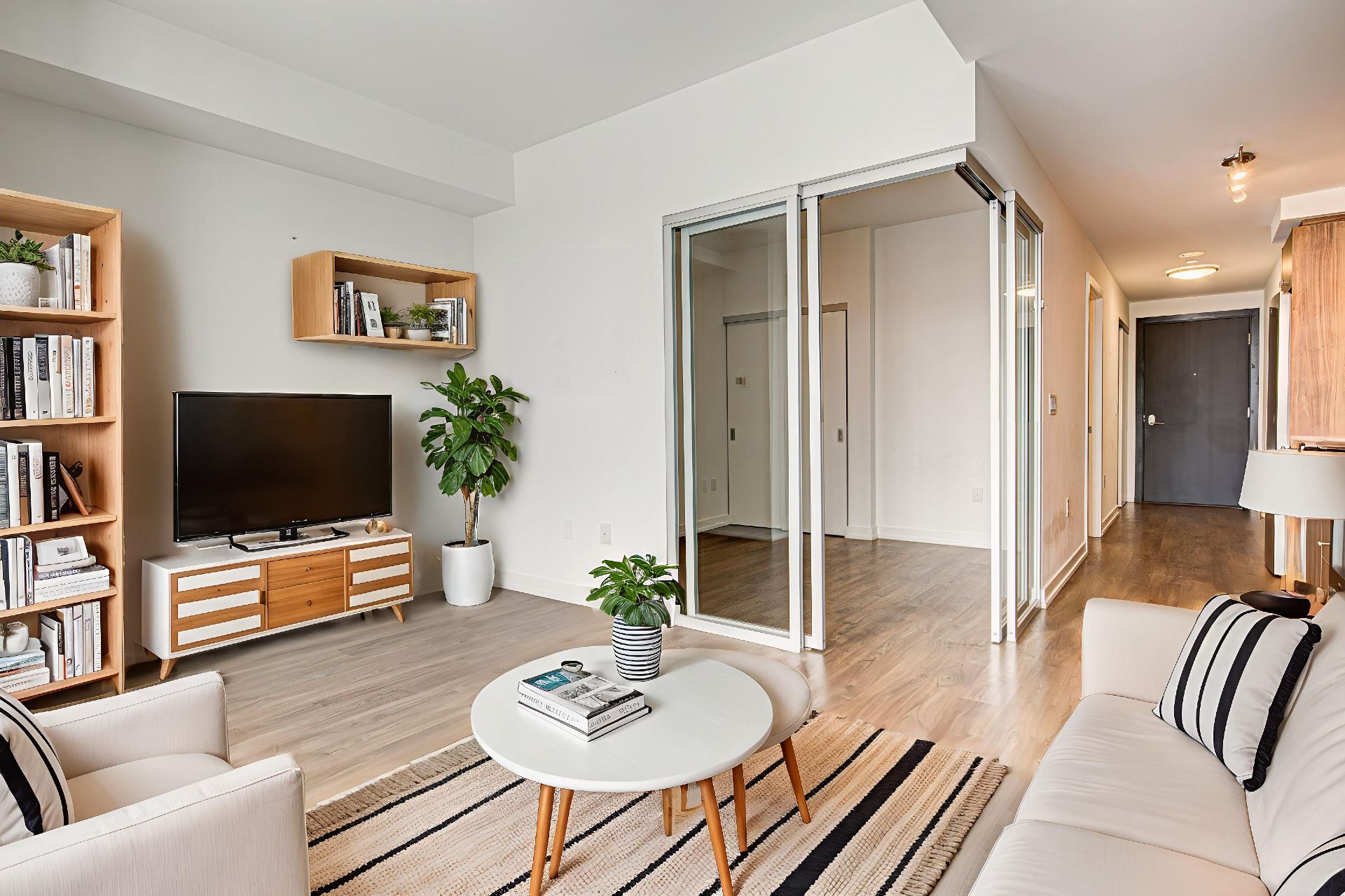 This modern 1-bedroom unit offers approximately 595 square feet of well-designed living space, highlighted by a private balcony that fills the home with natural light. It is situated in a vibrant urban center surrounded by contemporary condos and bustling commercial spaces. The neighborhood provides effortless access to victoria park, the tannery district, public transit, and hospitals. Residents of the building enjoy an impressive selection of amenities, including a fully equipped gym and dedicated yoga/pilates spaces. The home is being sold as-is and includes one underground parking space.