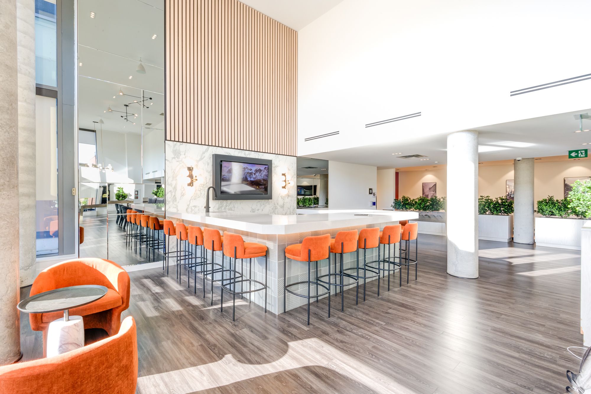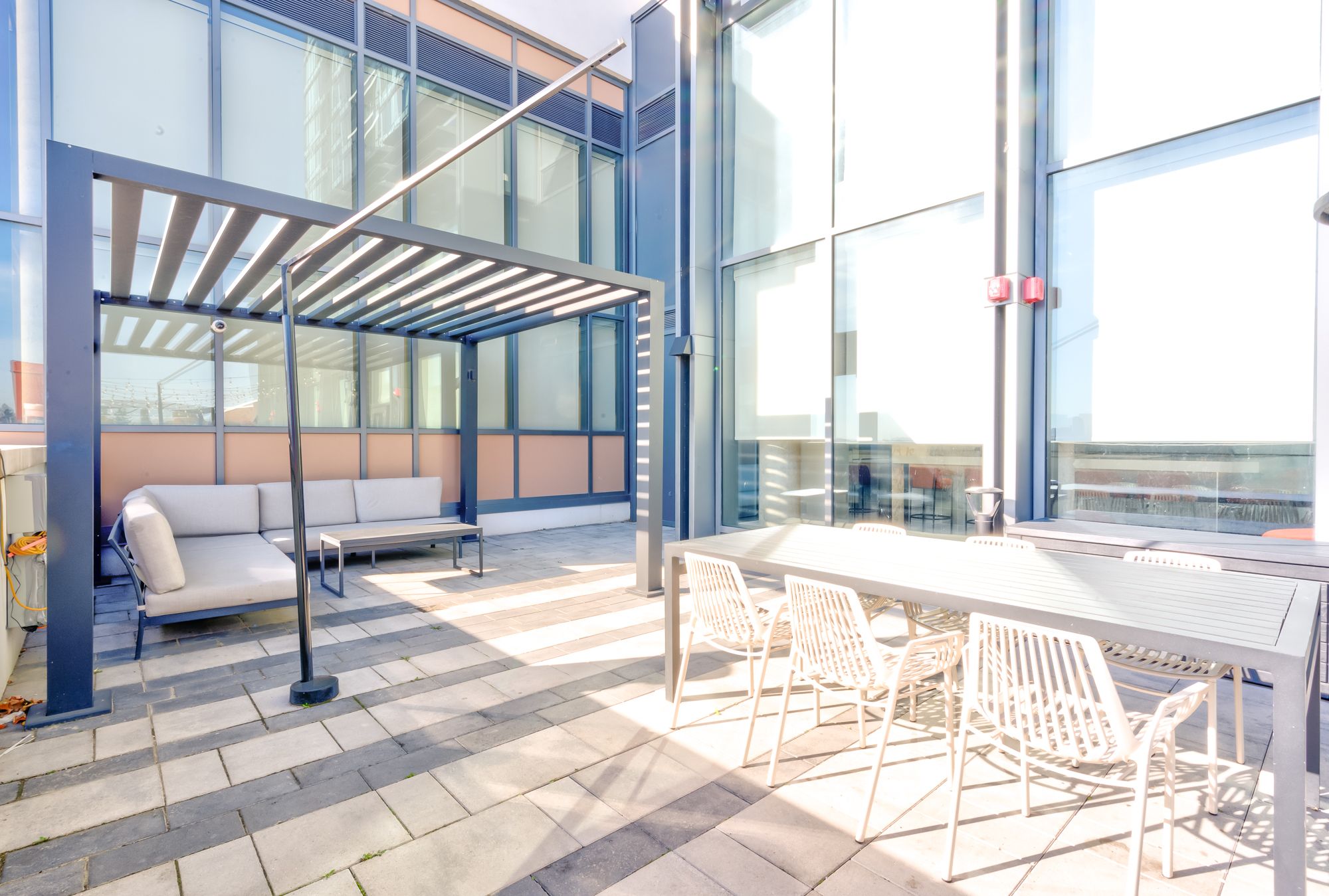 • Landscaped outdoor terrace with cabana seating and BBQs for relaxation.