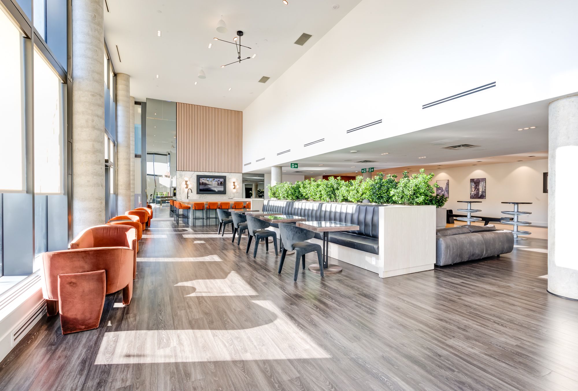 This stunning 1-bedroom condo on the 3rd floor of union towers at station park in downtown kitchener offers a stylish and modern living experience. Being on the 3rd floor, you're high enough for amazing views of kitchener, and steps away from amenity access! Spanning 560 square feet, the open-concept layout seamlessly blends living, dining, and kitchen areas, and enhanced by ample natural light due to the southern exposure and amazing sunset views. An added bonus - only offered in the podium units on the first couple of floors, you get the extended ceiling height! This condo features a 4-piece bathroom and convenient in-suite laundry for ultimate comfort. Residents can indulge in a wealth of luxury amenities, including a two-lane bowling alley with a lounge, a premier lounge area complete with a bar and games, and a private hydropool swim spa and hot tub. Fitness enthusiasts will appreciate the well-equipped gym, yoga/pilates studio, and peloton studio, while pet owners can pamper their furry friends at the dog washing station and pet spa. The landscaped outdoor terrace invites relaxation with cabana seating and bbqs, and a concierge desk ensures resident support. For special occasions, a private dining room with kitchen appliances, dining table, and lounge chairs awaits. This condo truly embodies a vibrant urban lifestyle.