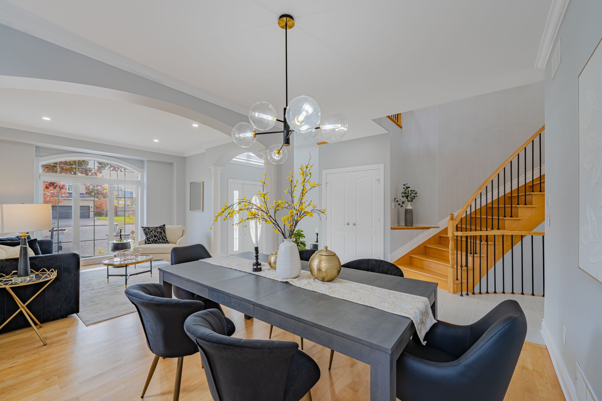 • Bright main floor with formal living, dining, cozy family room, and office.