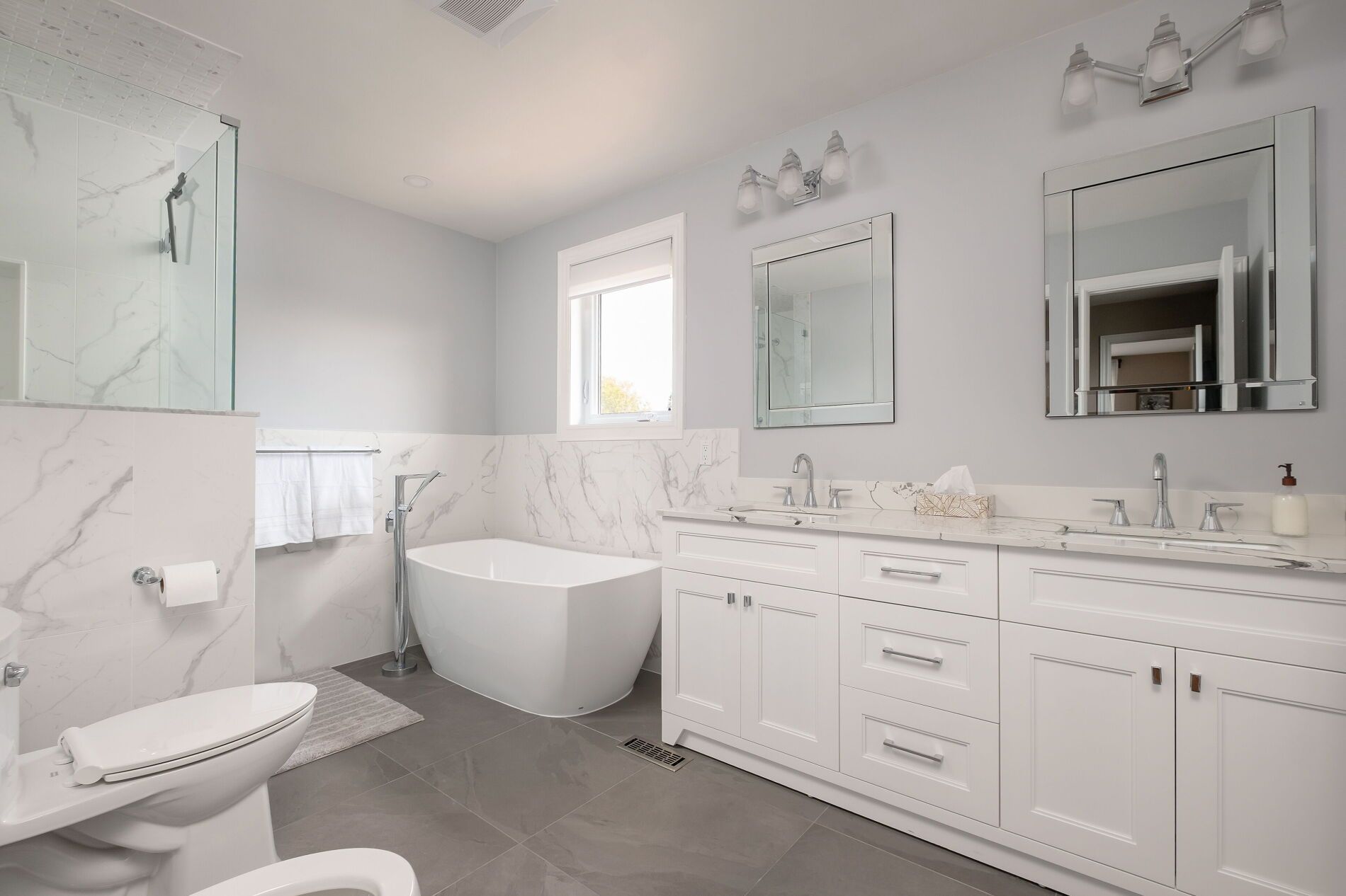 • Elegant foyer with soaring ceilings and a grand staircase.