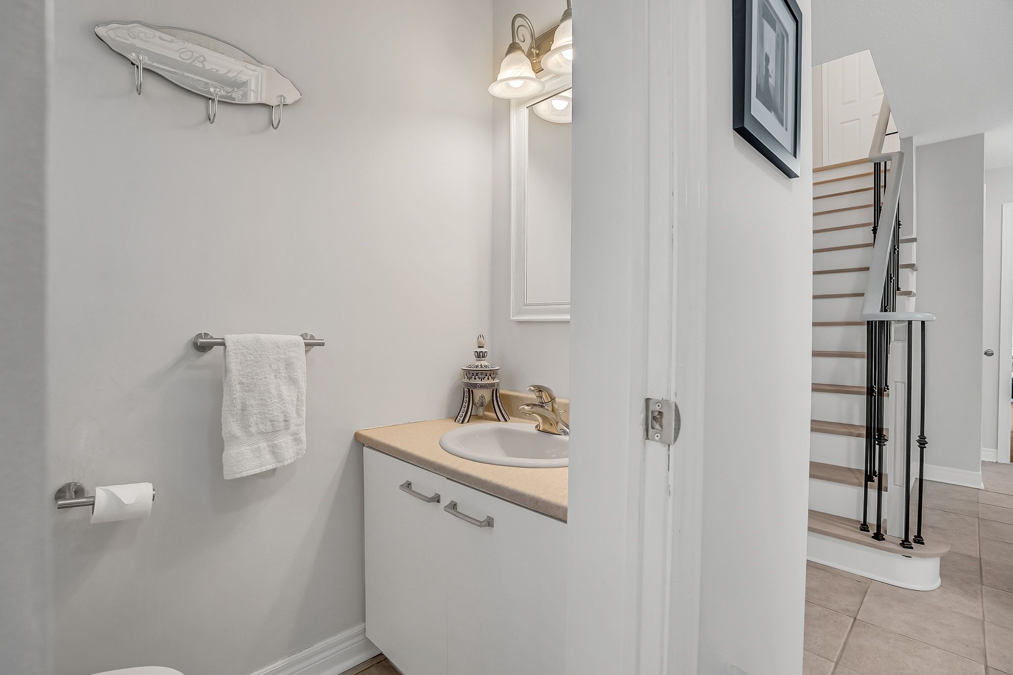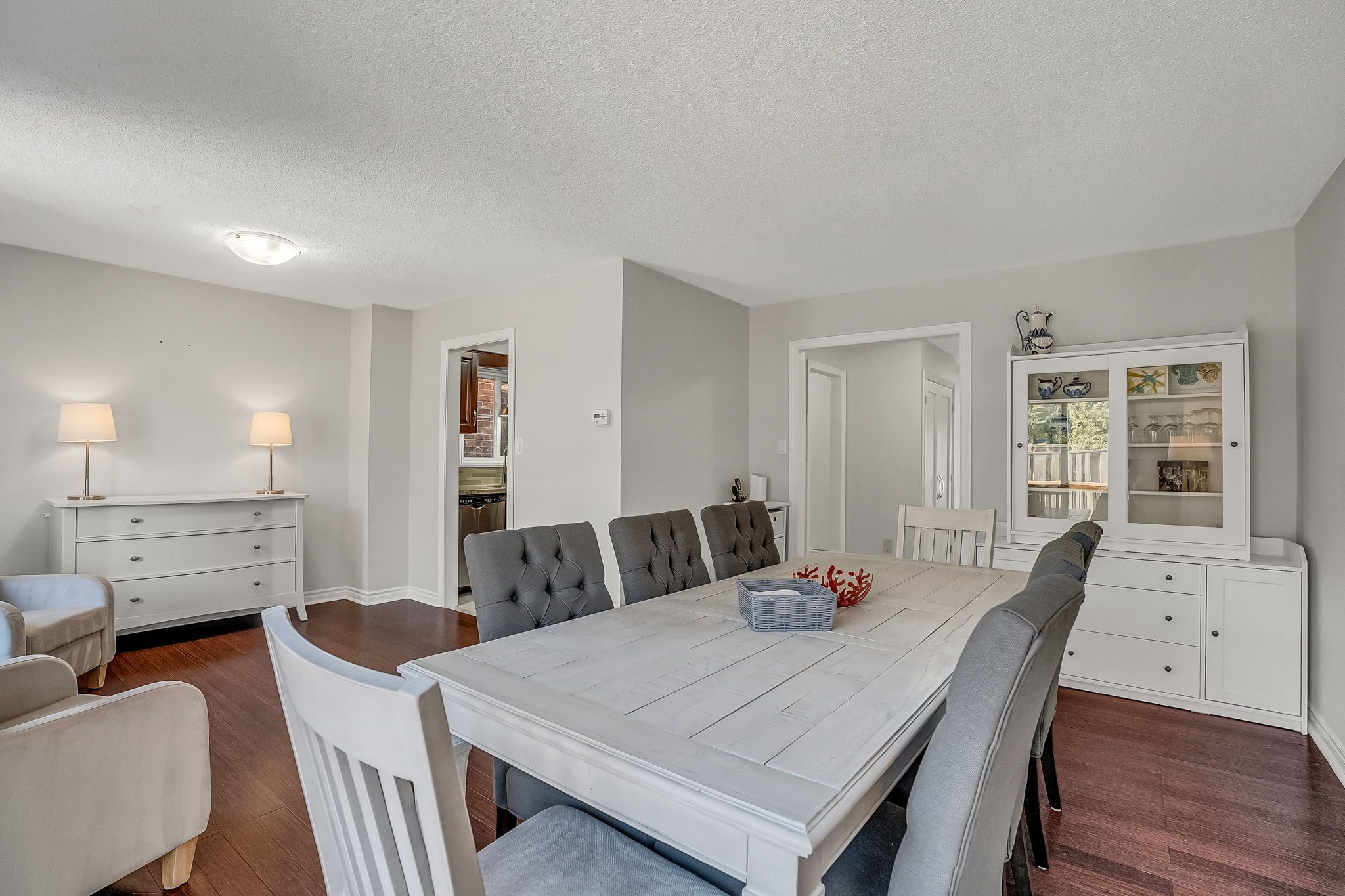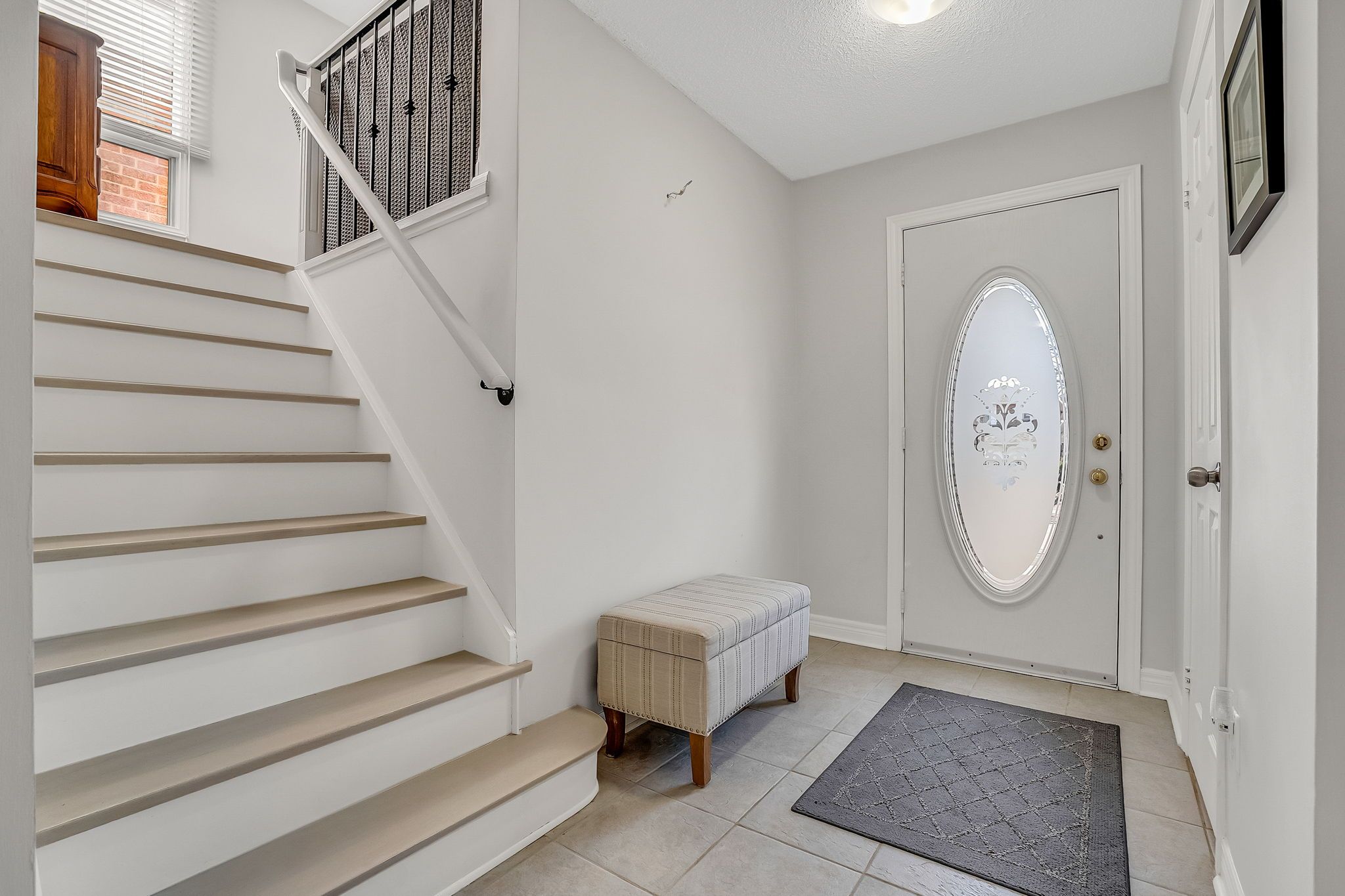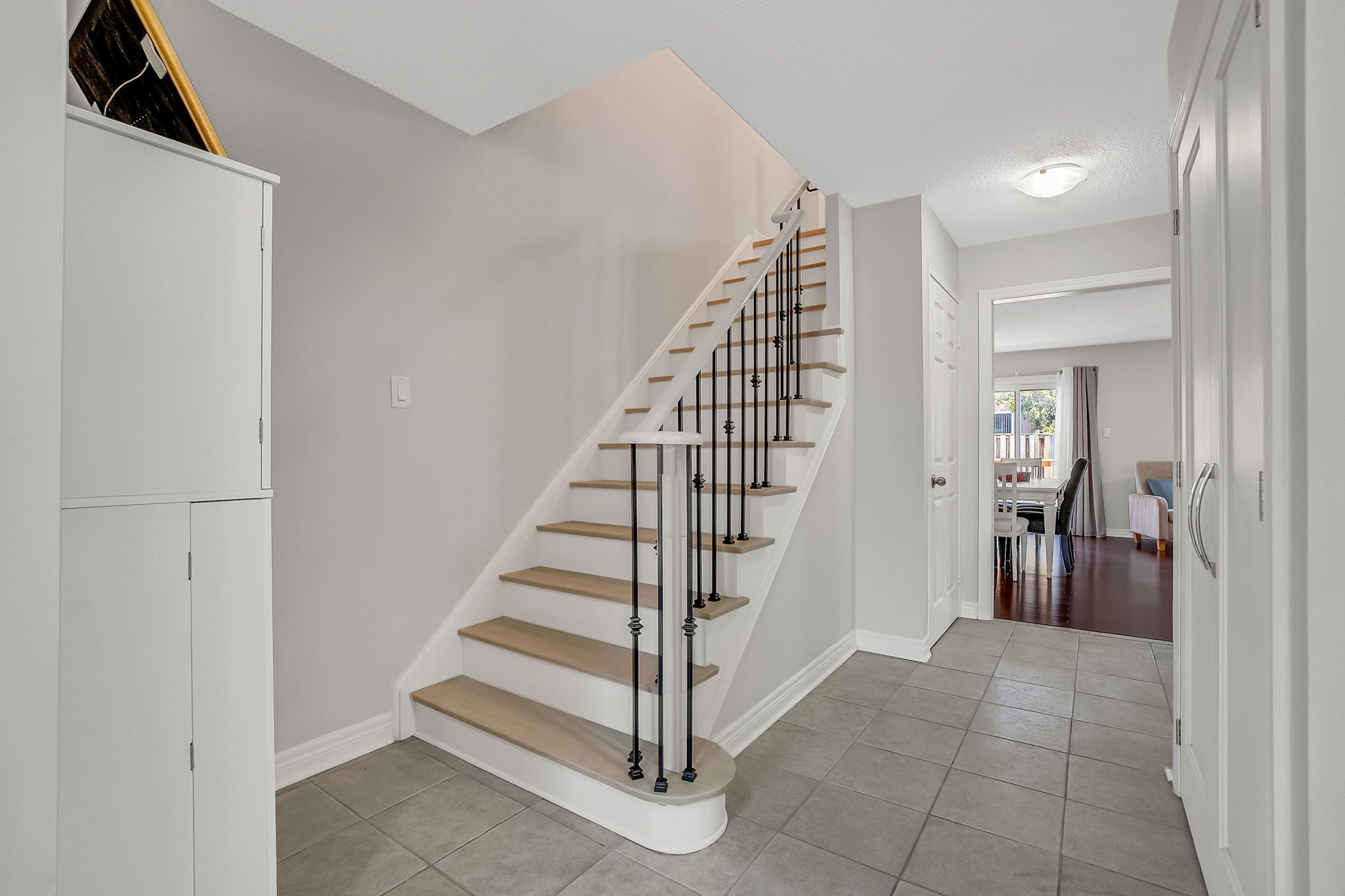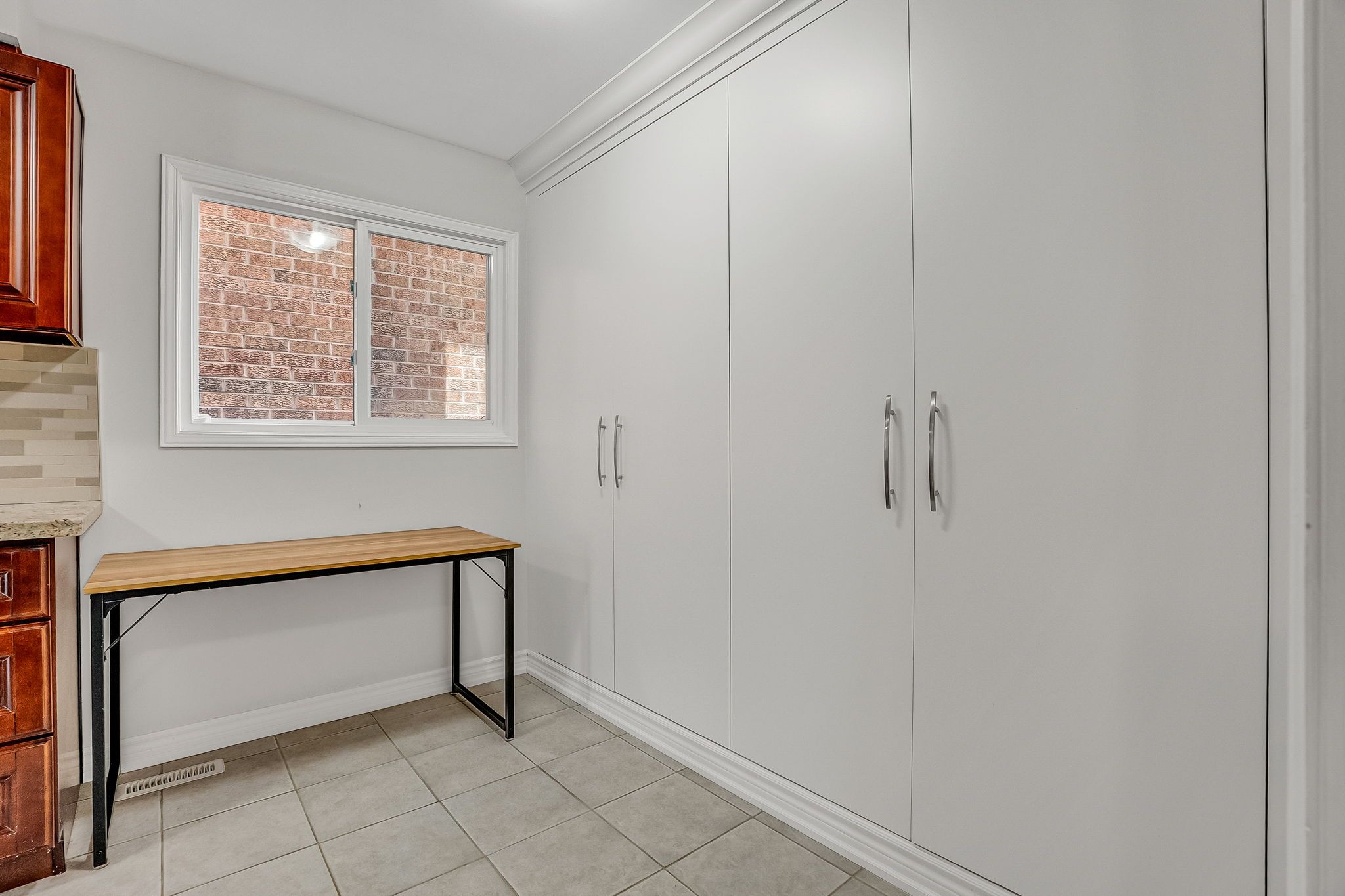 • Custom kitchen storage with quartz countertops and fresh paint throughout.