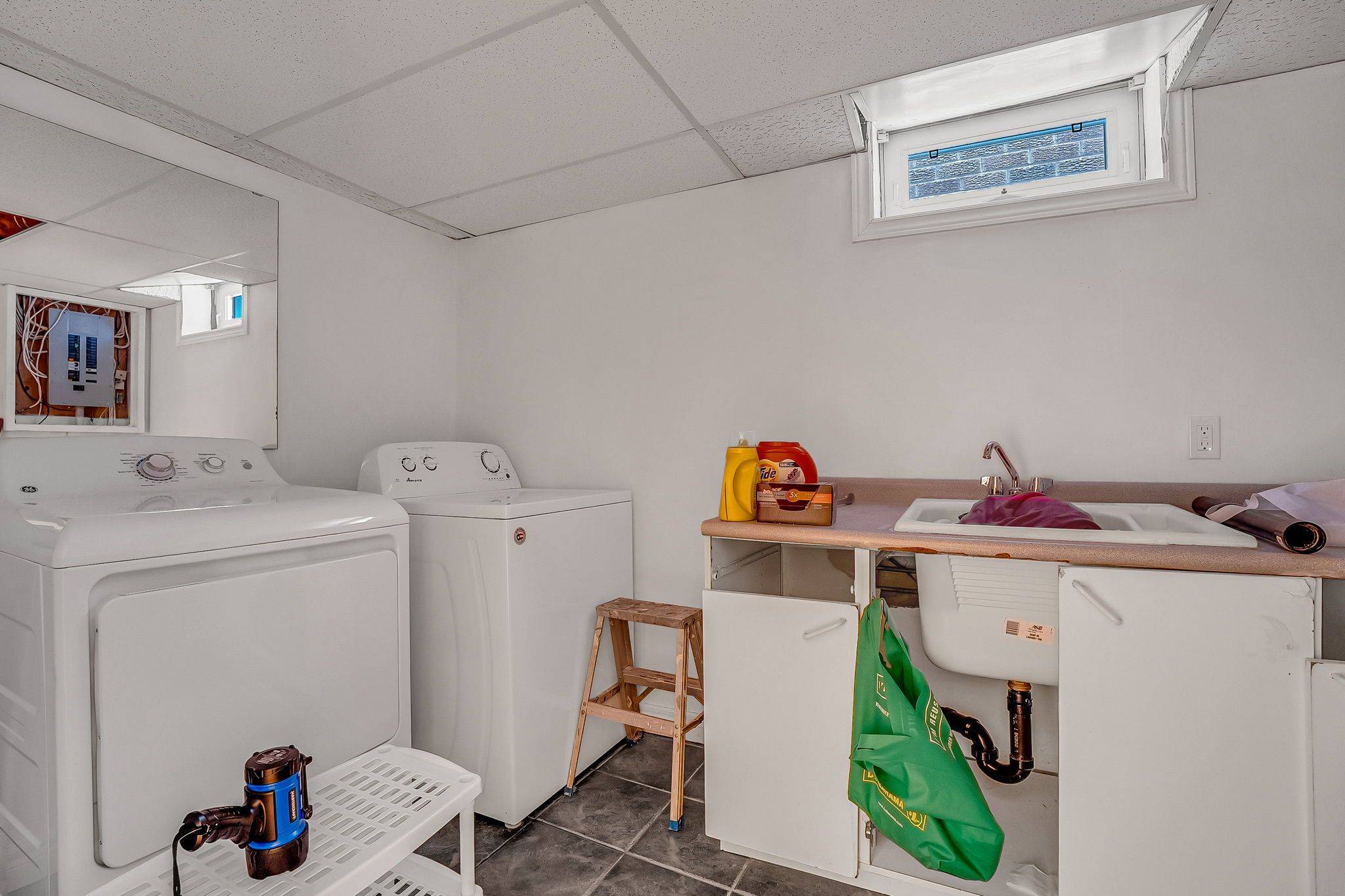 • Finished basement equipped with a wet bar, laundry room, and washroom.