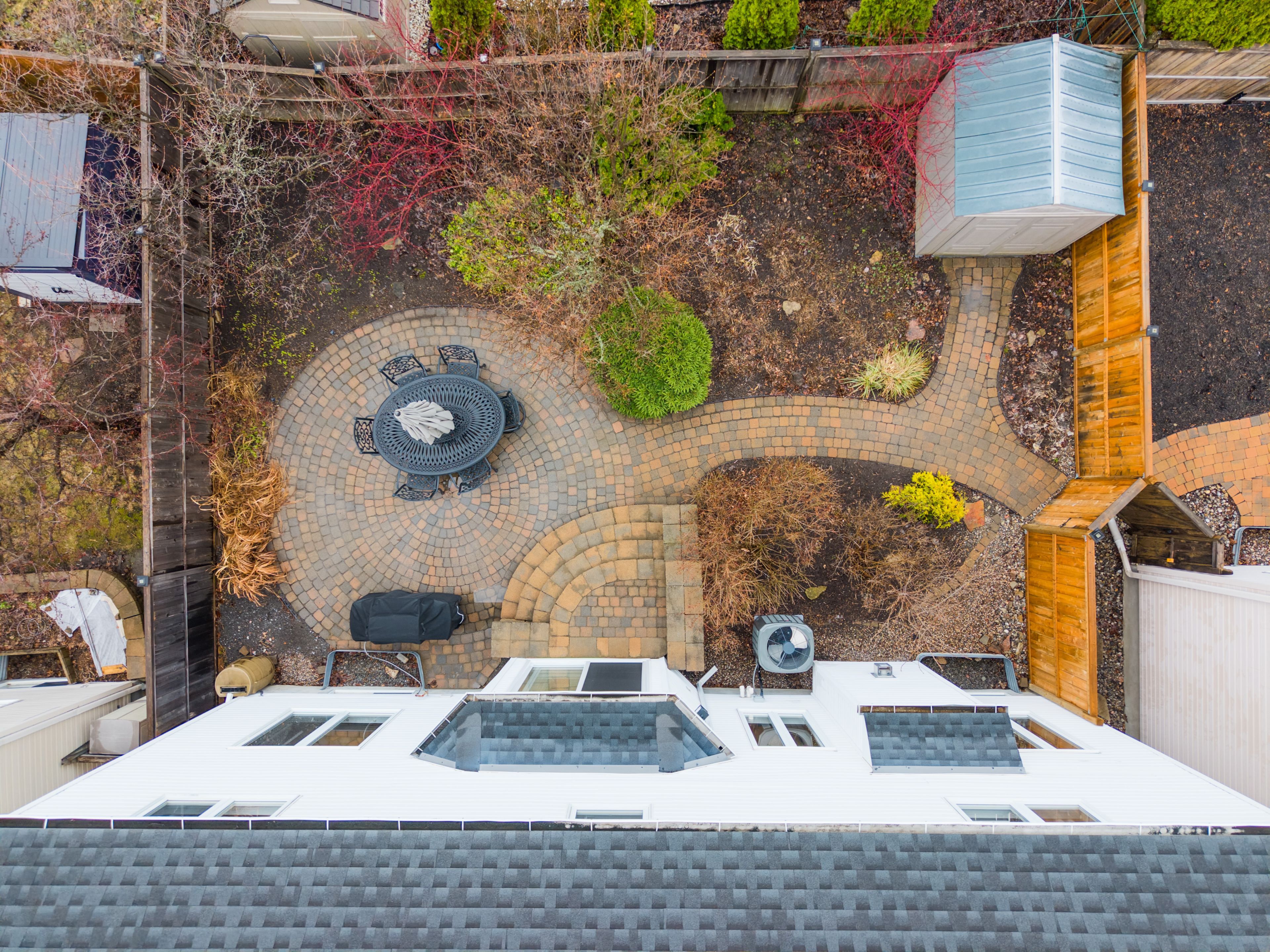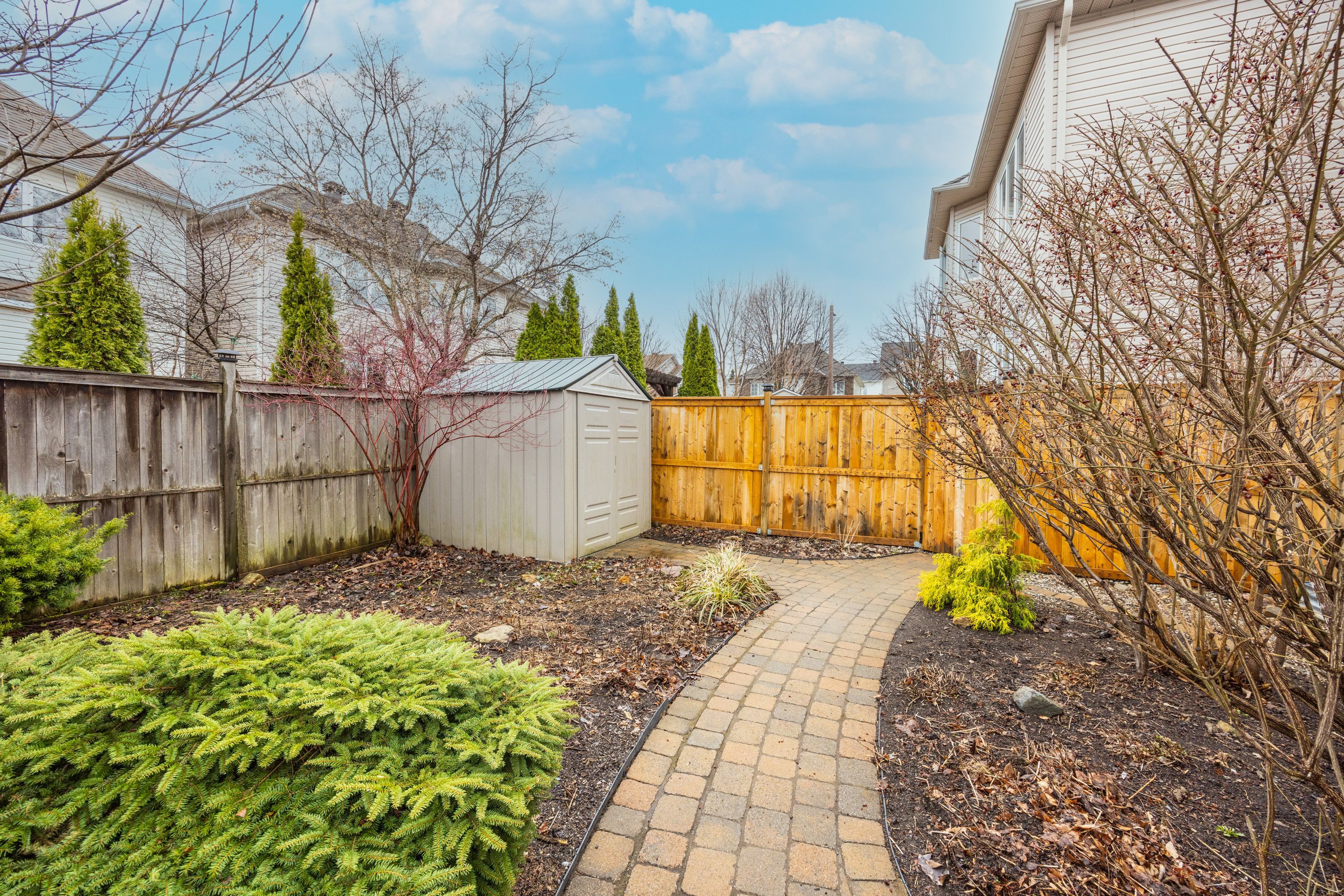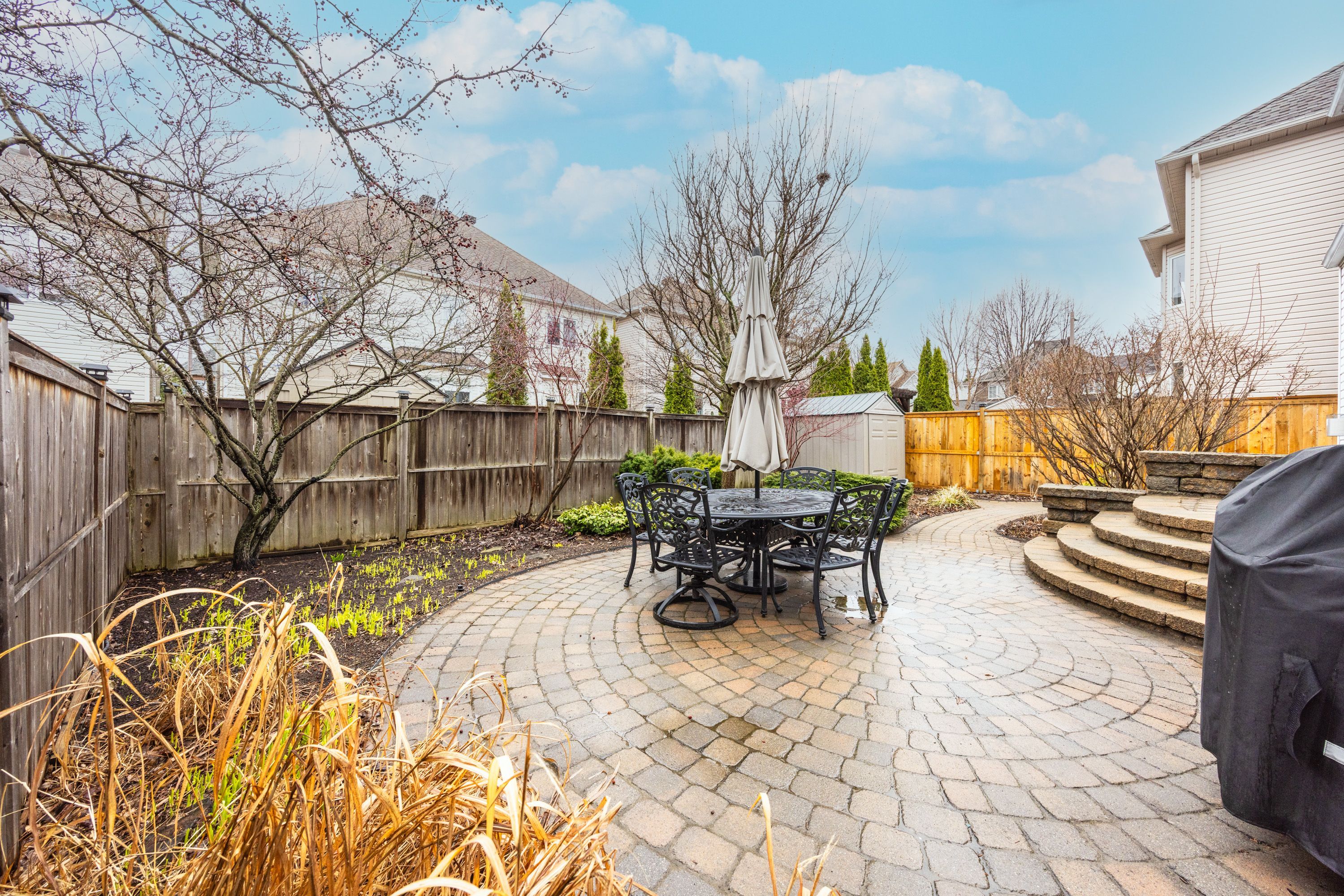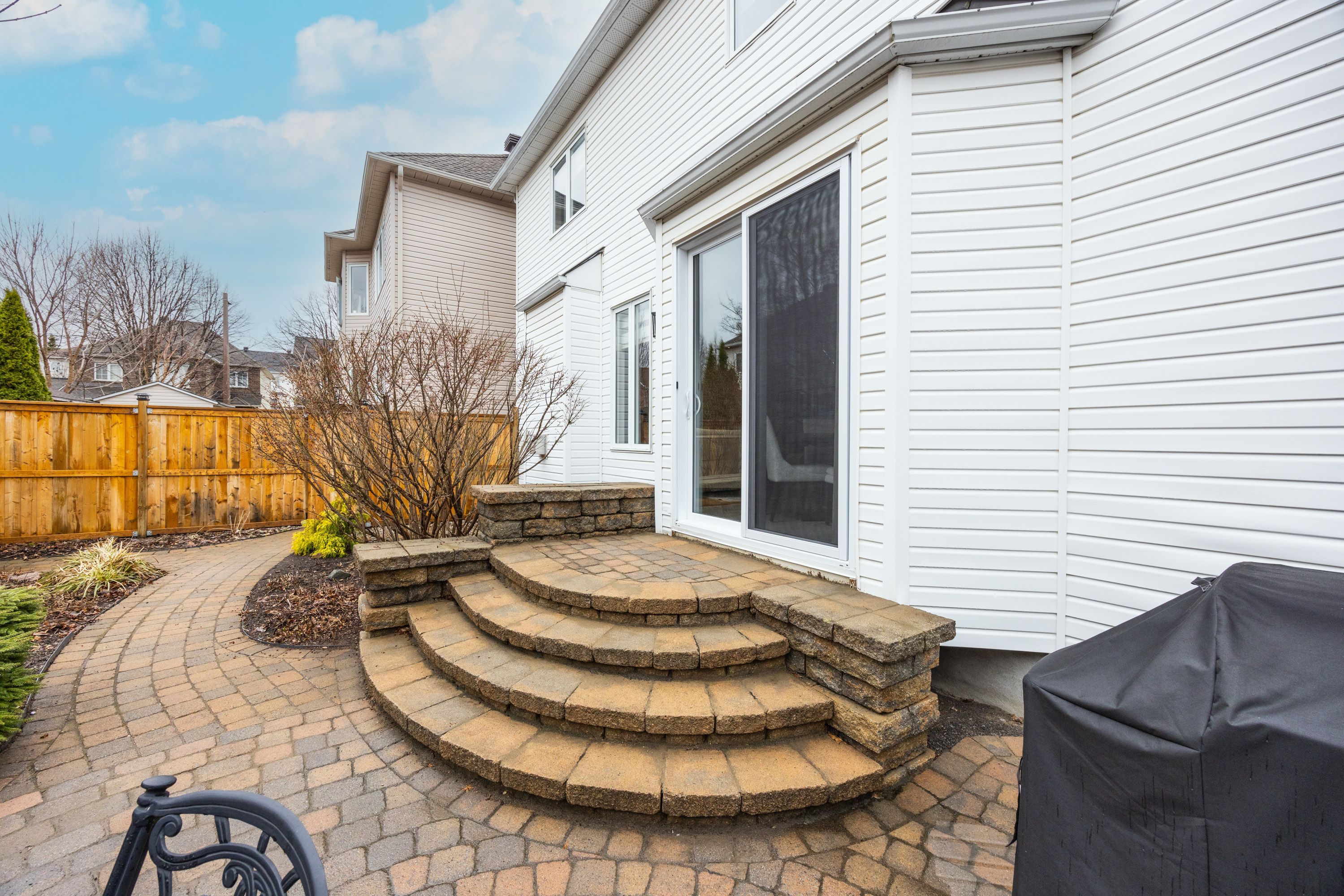 • Landscaped backyard with an interlock patio and privacy fence.