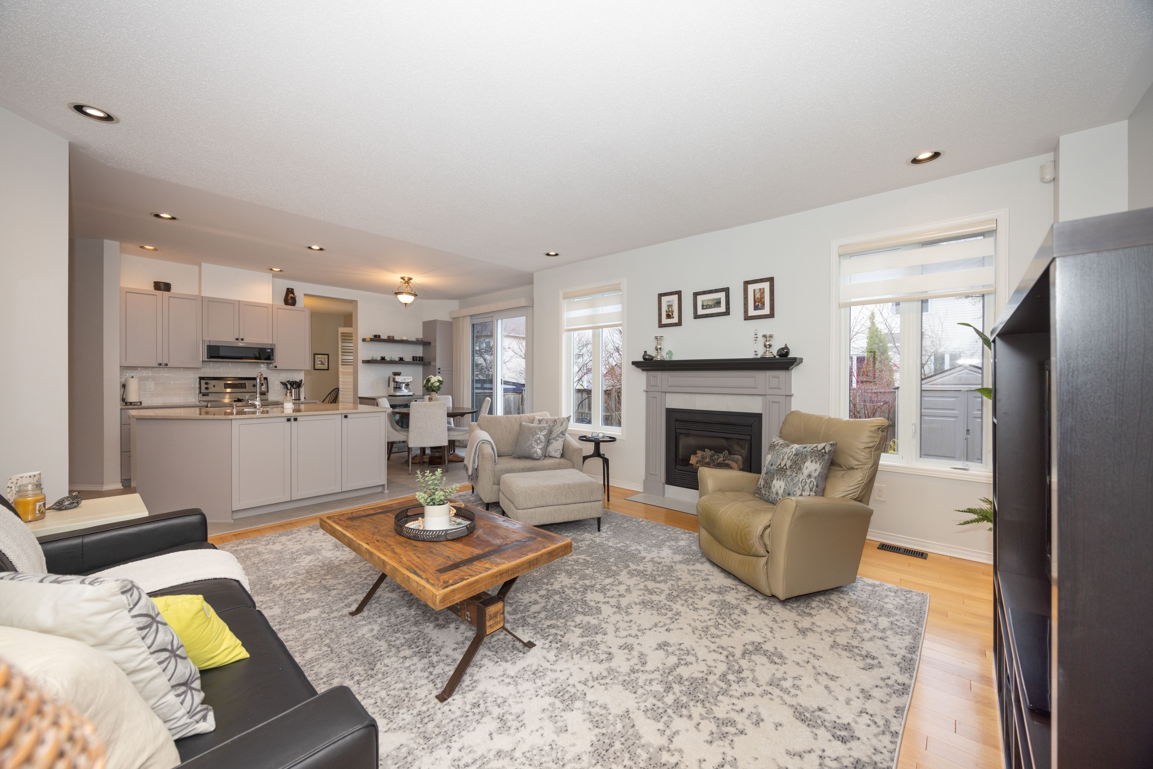 • Cozy family room with gas fireplace, perfect for gatherings.