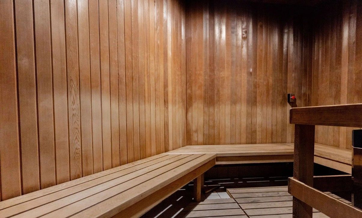 • Resort-style amenities include an indoor pool and fitness center.