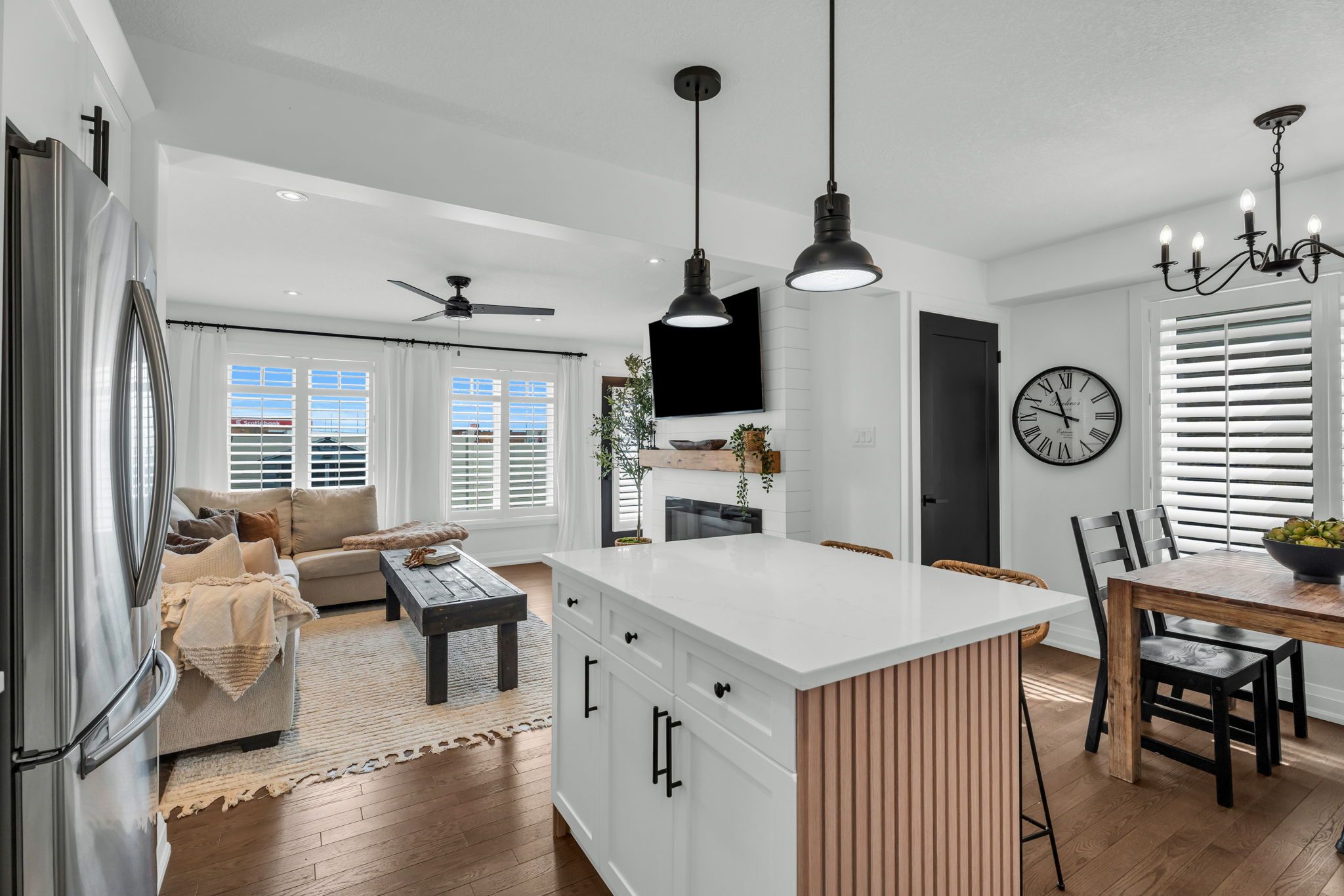 • Bright, open-concept main floor with seamless living, kitchen, and dining areas.