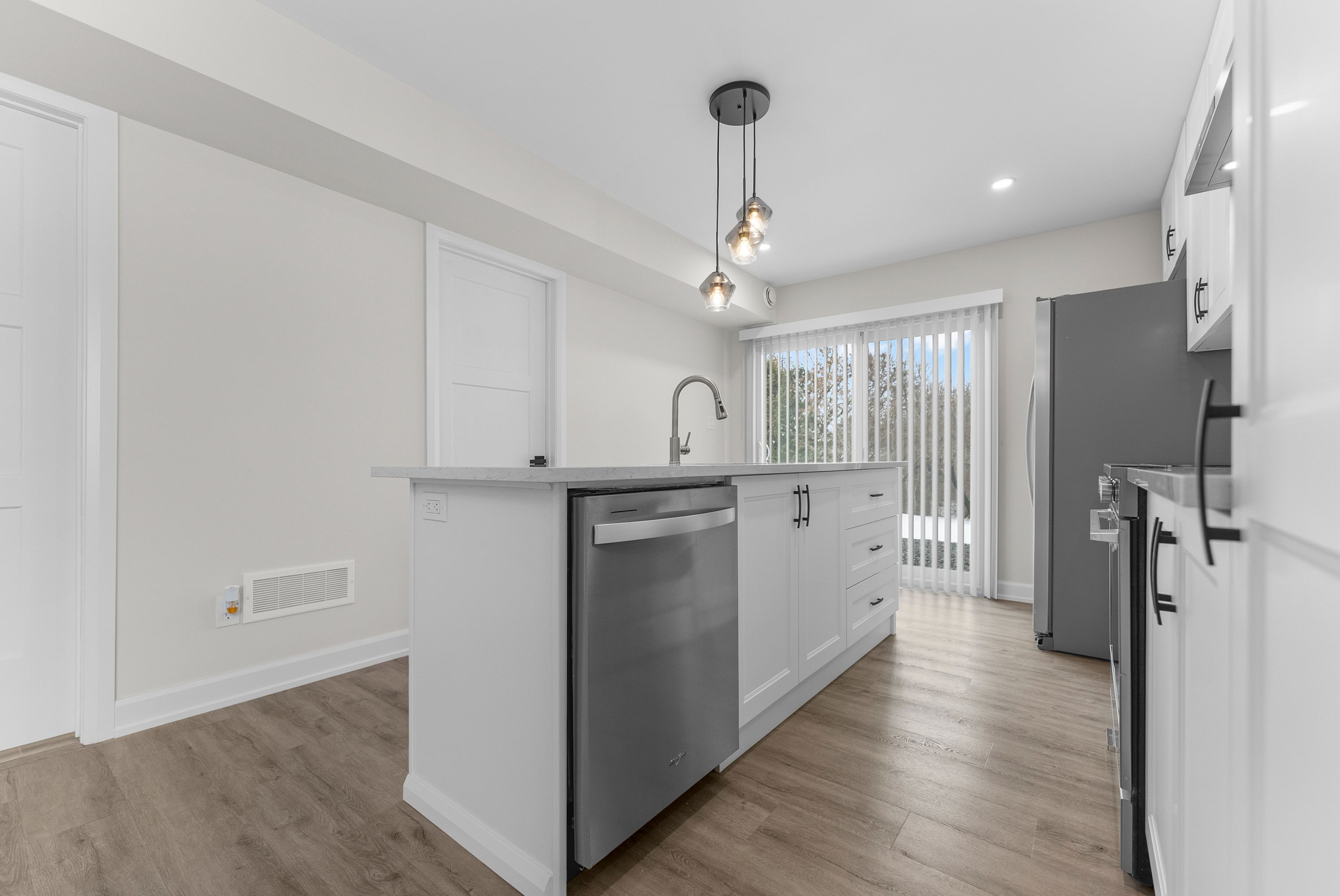 • Spacious kitchen with big island, great for gatherings and daily use.
