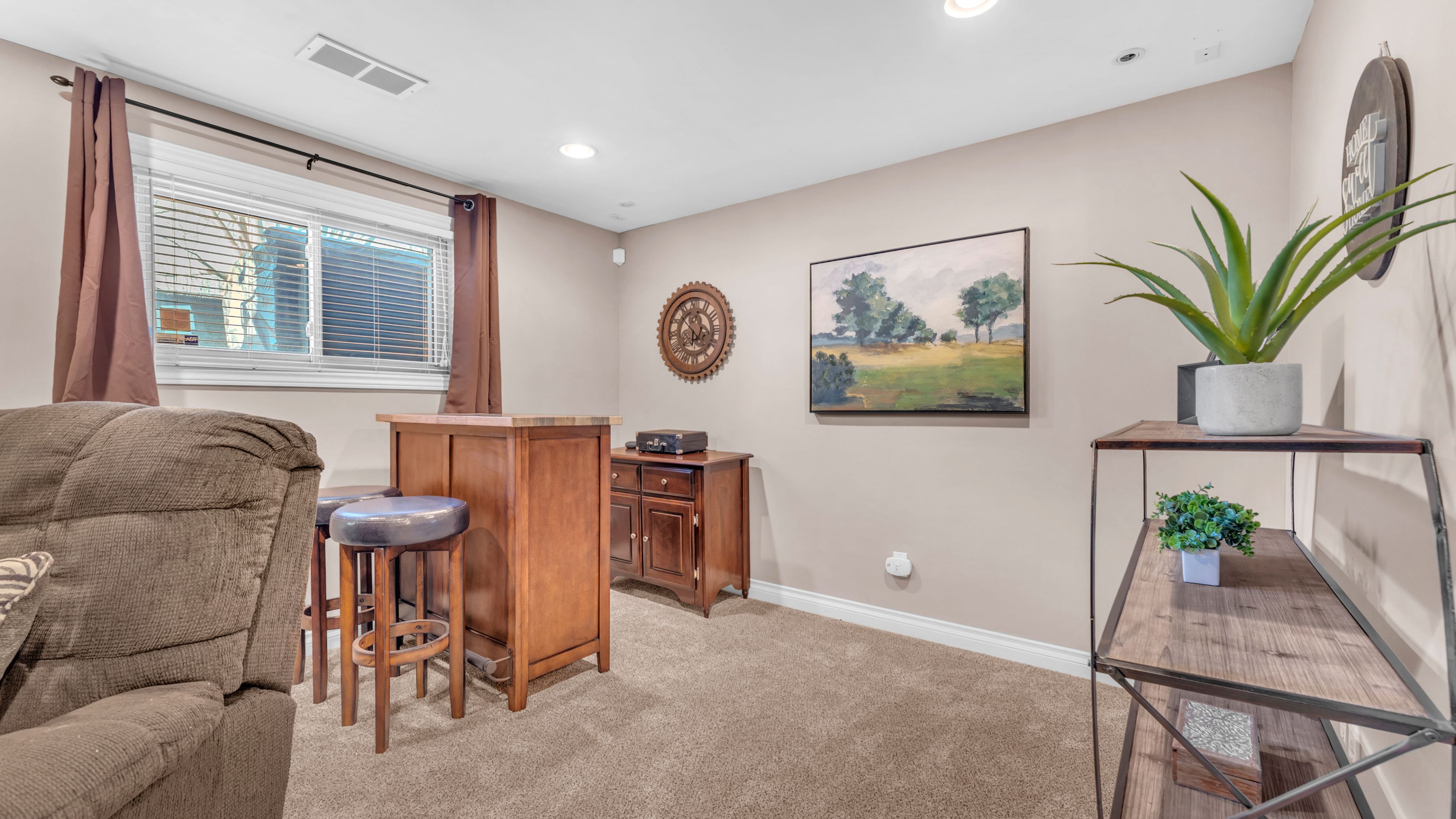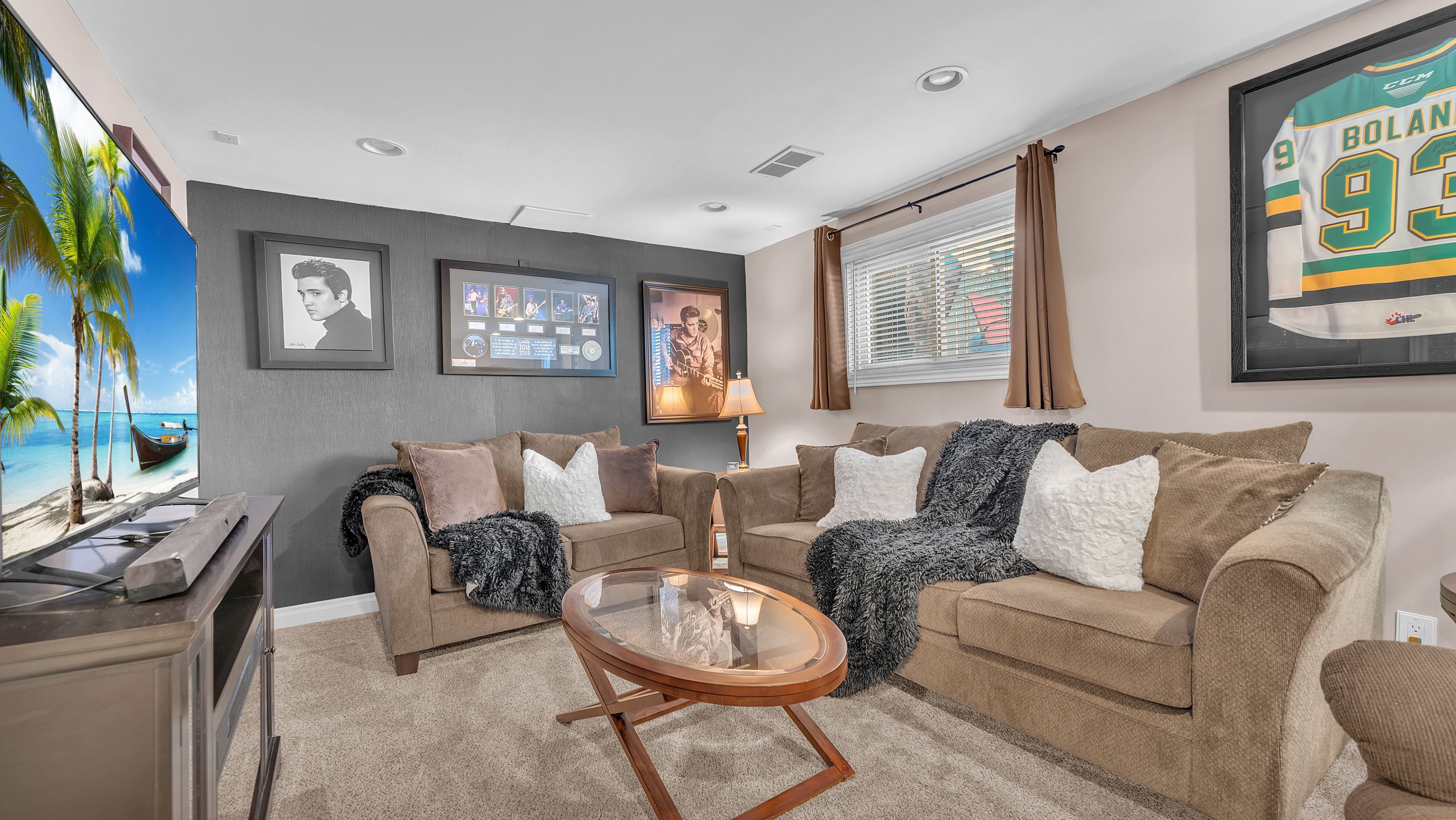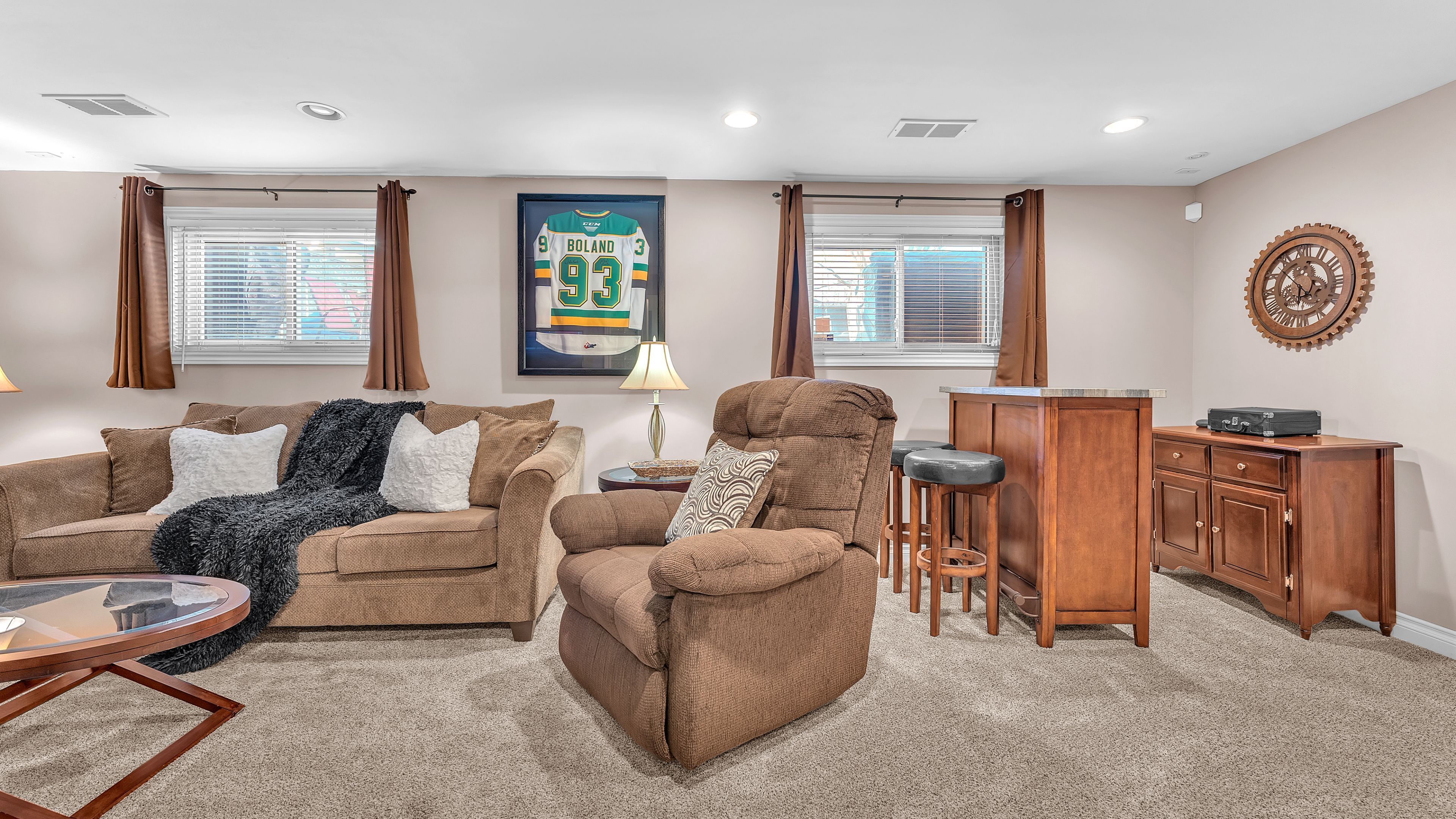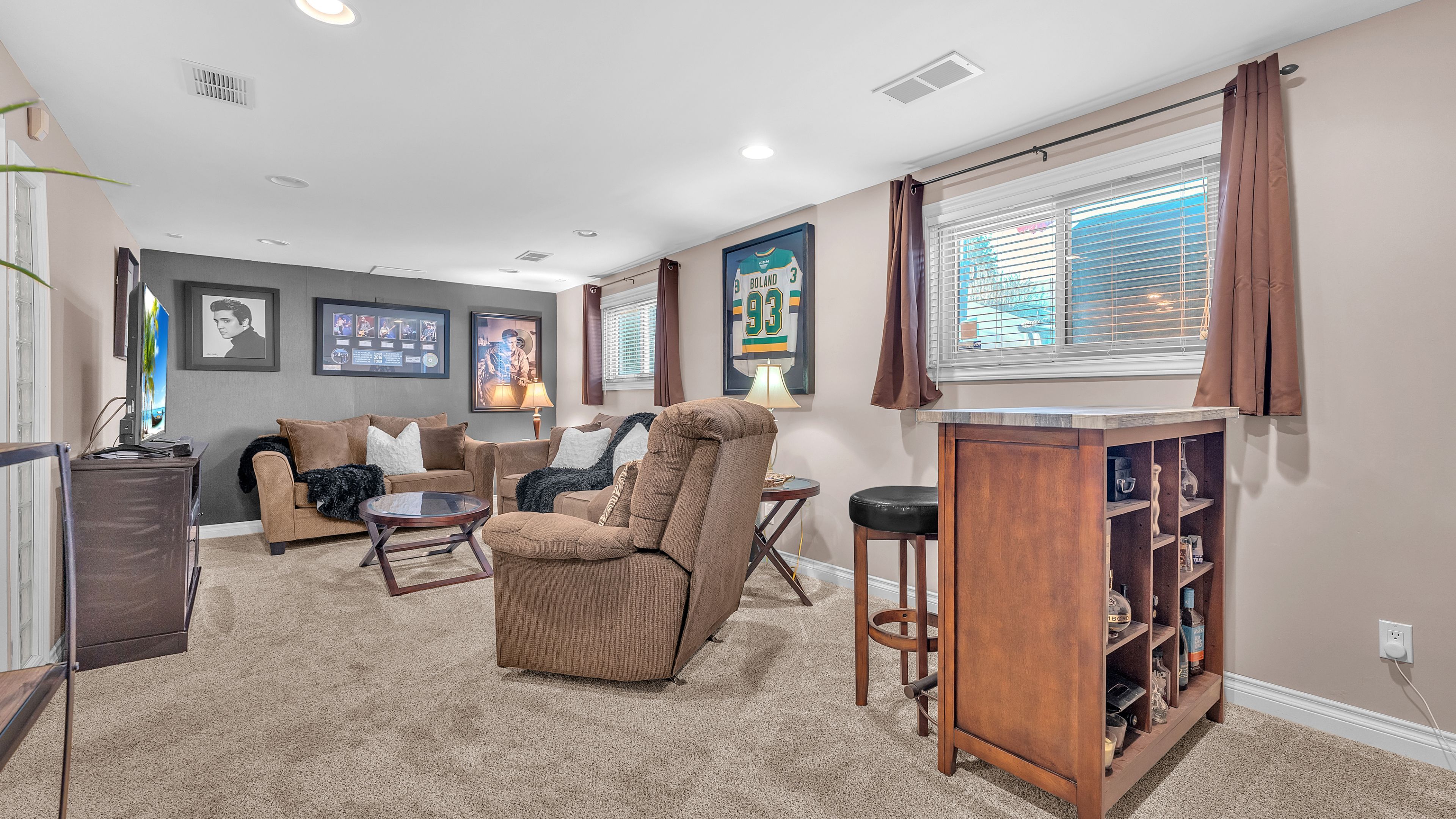 • Cozy family room featuring a gas fireplace for relaxation.