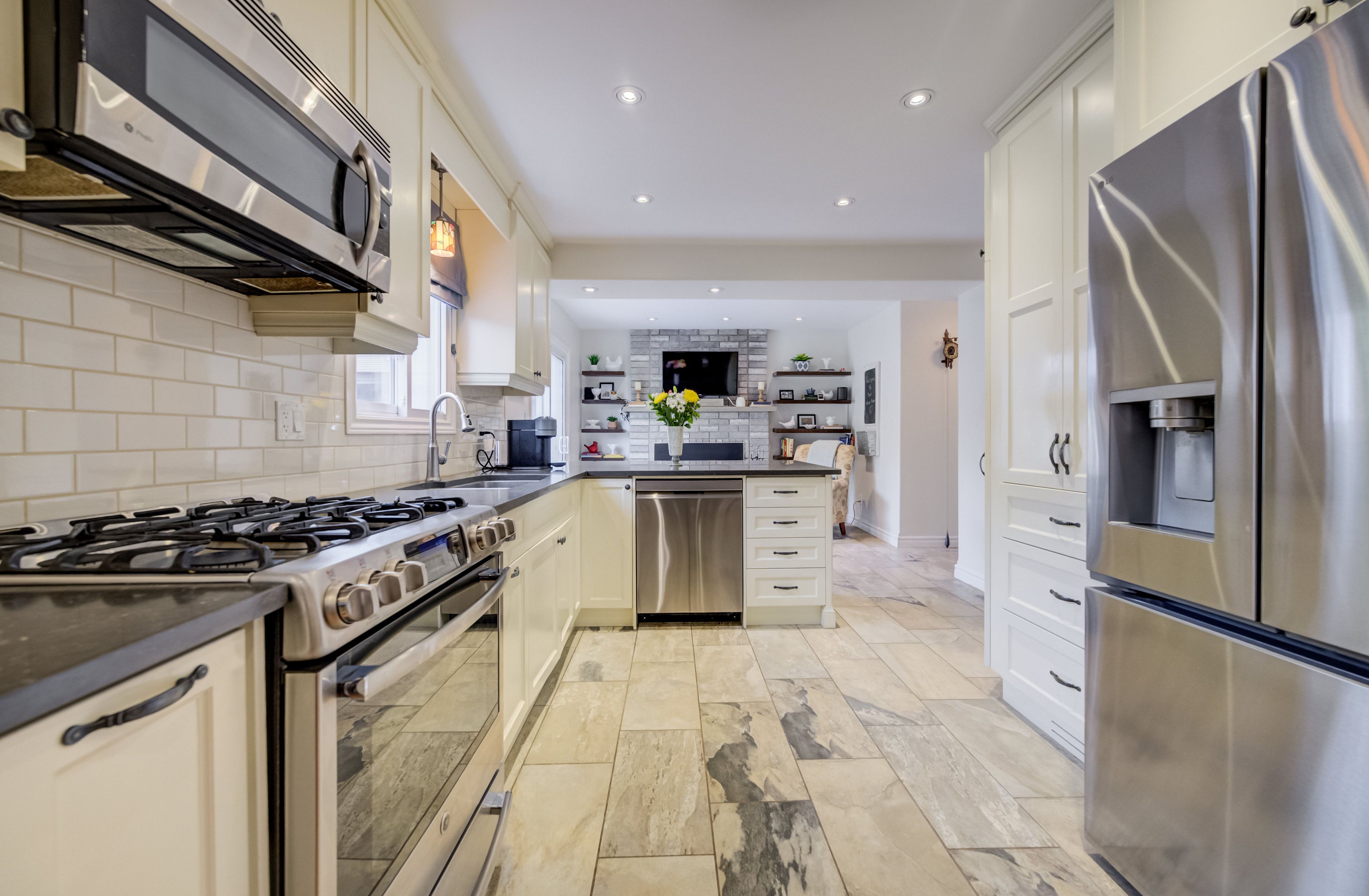 • Updated kitchen with granite countertops and plenty of cabinetry for storage.