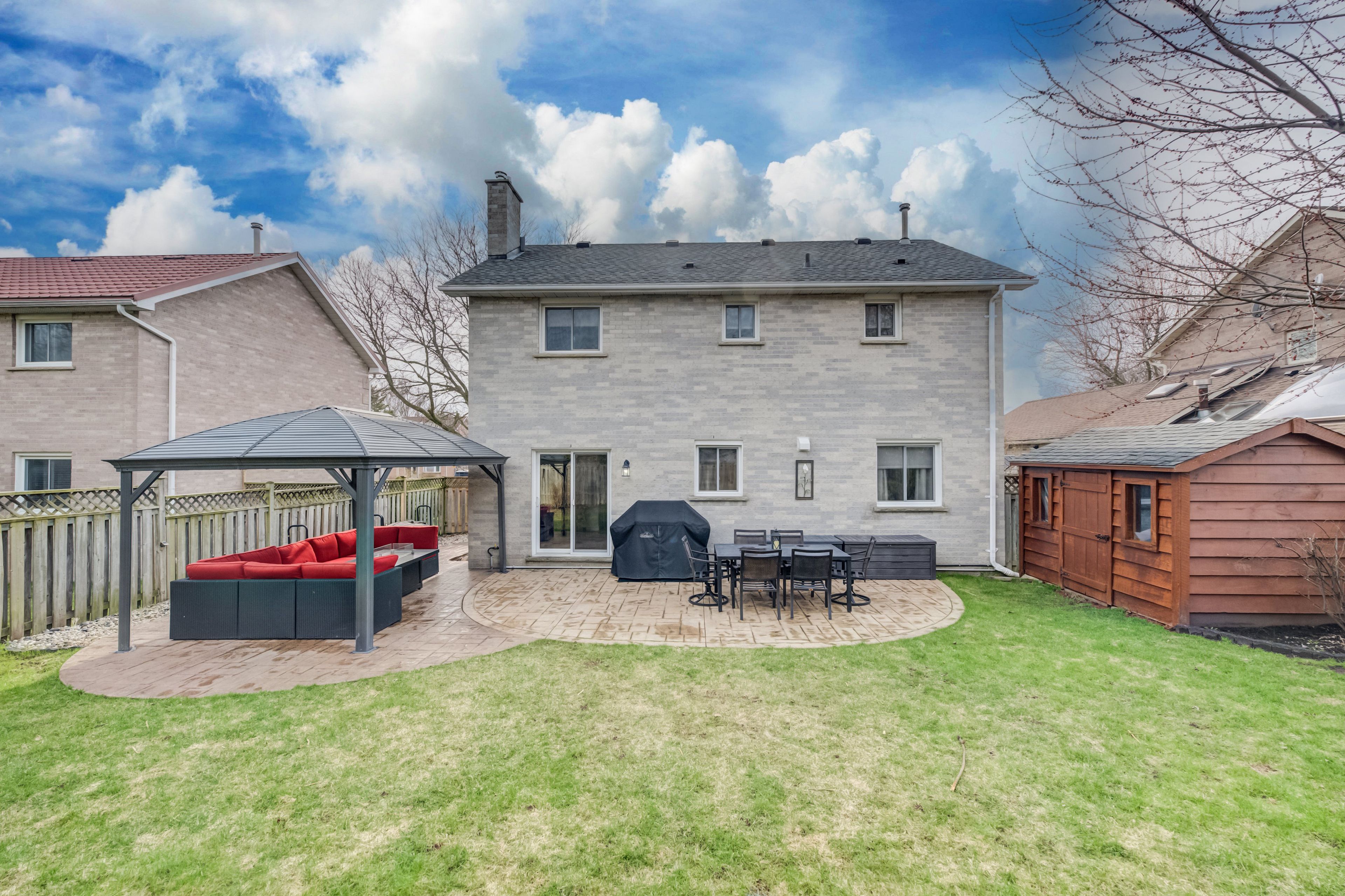 A great place to call home! Welcome to this spacious and well-maintained family home, ideally situated on a 55-foot lot in the highly desirable clemens mills neighbourhood. Nestled on a quiet, family-friendly street, this home is within walking distance to schools, parks, shades mill conservation area, and public transit, with easy access to highway 401 and nearby shopping. This inviting 3-bedroom, 4-bathroom home features hardwood and tile flooring throughout the main level, a bright family room with a cozy wood-burning fireplace, and an updated kitchen complete with granite countertops and ample cabinetry. A convenient main-floor laundry room and walk-out to the private backyard add to the home's functionality and appeal. Upstairs, you'll find three generously sized bedrooms, including a spacious primary suite with a walk-in closet and full ensuite bath, along with an additional full bathroom. The finished recreation room provides versatile extra living space-perfect for family activities, a home gym, or entertainment. Outside, enjoy a beautifully finished exterior with a stamped concrete walkway and patio, as well as an exposed aggregate concrete driveway.