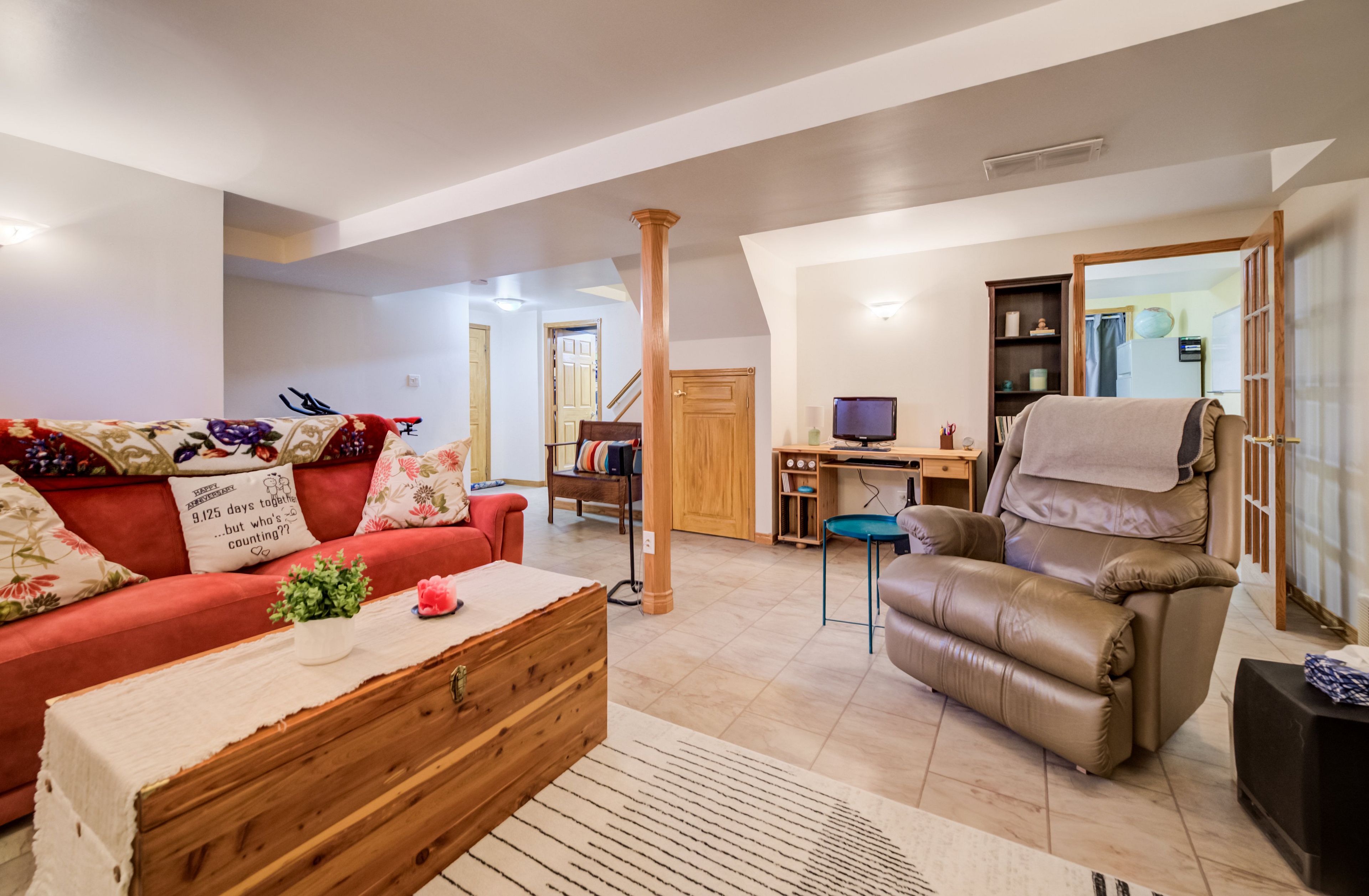 • Finished recreation room adds extra living space for activities and entertainment.