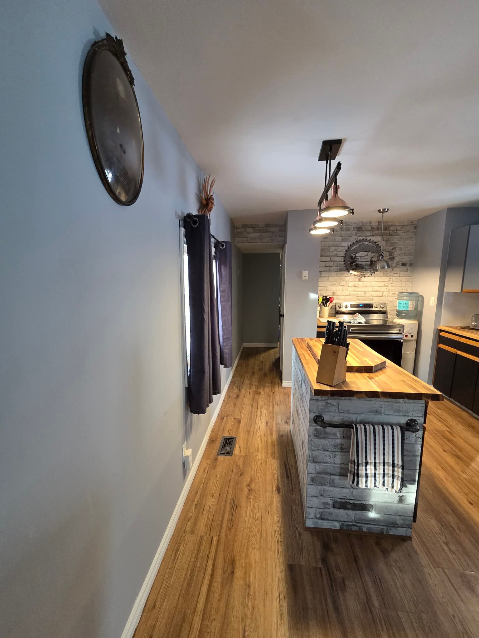 • Updated kitchen features large island and brand-new stainless steel appliances.