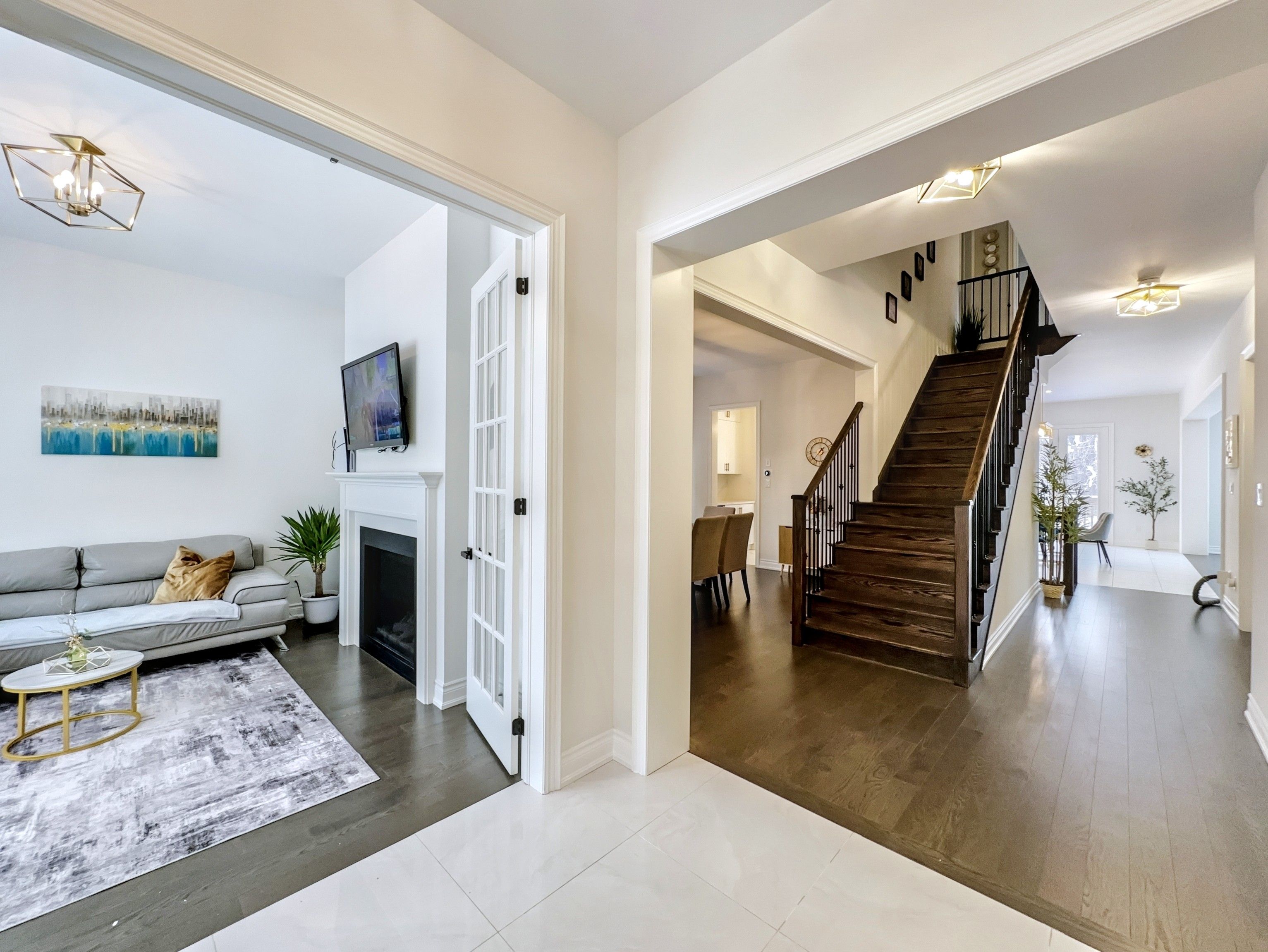 Welcome to 150 cannes ave, an exceptional newer luxury home in prestigious vellore village, offering elegant design, upscale finishes, and a rare private backyard setting with mature trees and peaceful nature views. Beautifully maintained and thoughtfully upgraded throughout, this impressive residence blends style, comfort, and everyday functionality in one of woodbridge's most desirable family communities. The main floor showcases a grand foyer, spacious principal rooms, a formal dining room with fireplace, and a stunning open-concept layout designed for modern living and entertaining. The showpiece chef's kitchen features full-height cabinetry, quartz surfaces, slab backsplash, premium appliances, oversized island, designer lighting, and a walk-through servery with built-in wine fridge. The bright breakfast area opens to the rear deck and overlooks the private treed yard, while the spectacular family room offers a custom feature wall, fireplace, built-ins, and oversized windows framing the natural setting beyond. Upstairs, a wide and airy landing leads to generously sized bedrooms, upgraded bathrooms, and convenient upper-level laundry. The primary suite is a true retreat, featuring a spacious bedroom, large walk-in/dressing area, and a spa-inspired ensuite with double vanity, freestanding tub, oversized glass shower, and striking designer finishes. Additional highlights include custom closet organizers, elegant lighting, quality millwork, epoxy-finished garage, and standout pride of ownership throughout. Outside, enjoy professionally landscaped front gardens, stone planters, impressive curb appeal, and a beautifully finished backyard with interlock patio, green space, and a rare wooded backdrop that offers privacy and a true lifestyle setting year-round. A move-in-ready luxury home with exceptional presentation inside and out.