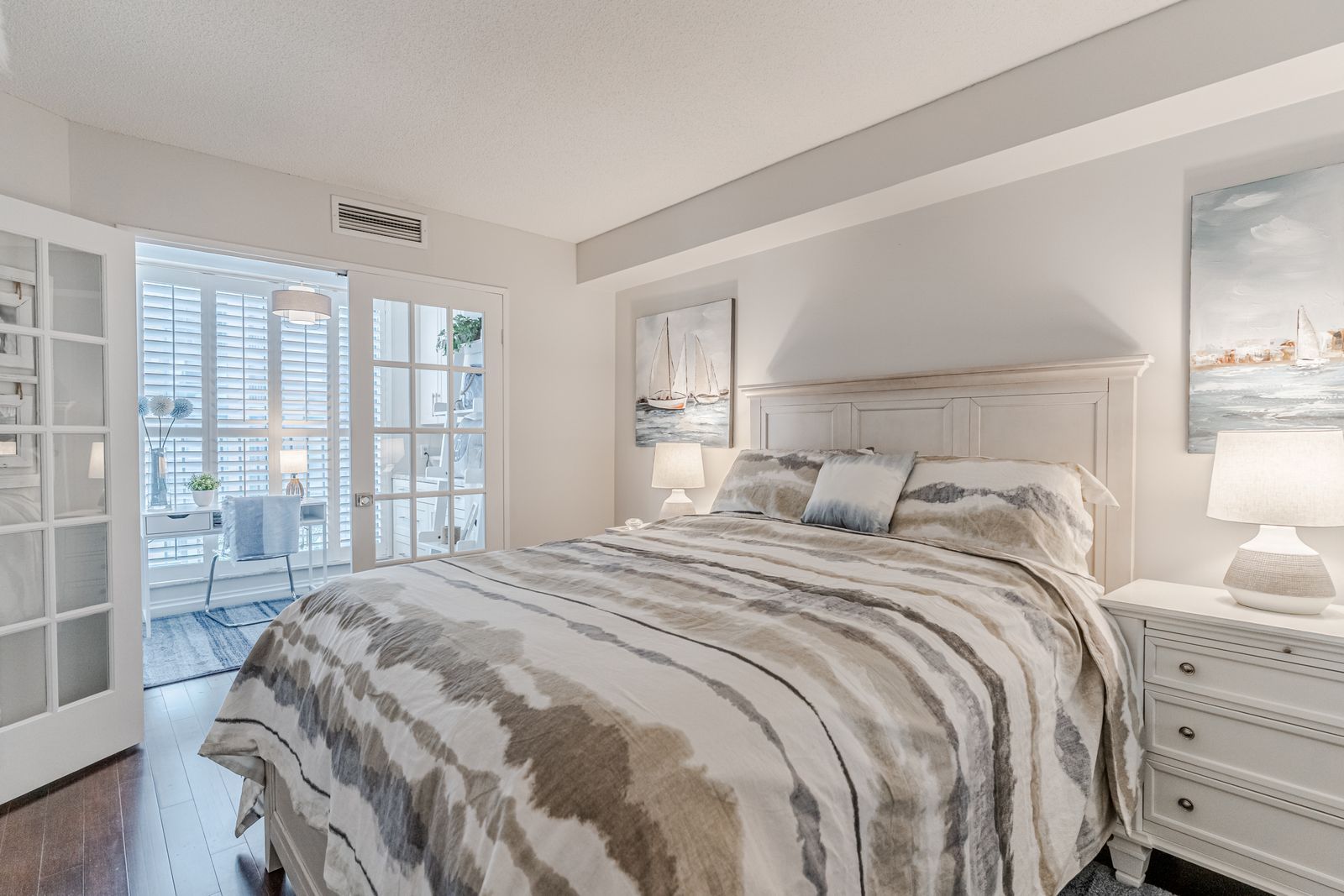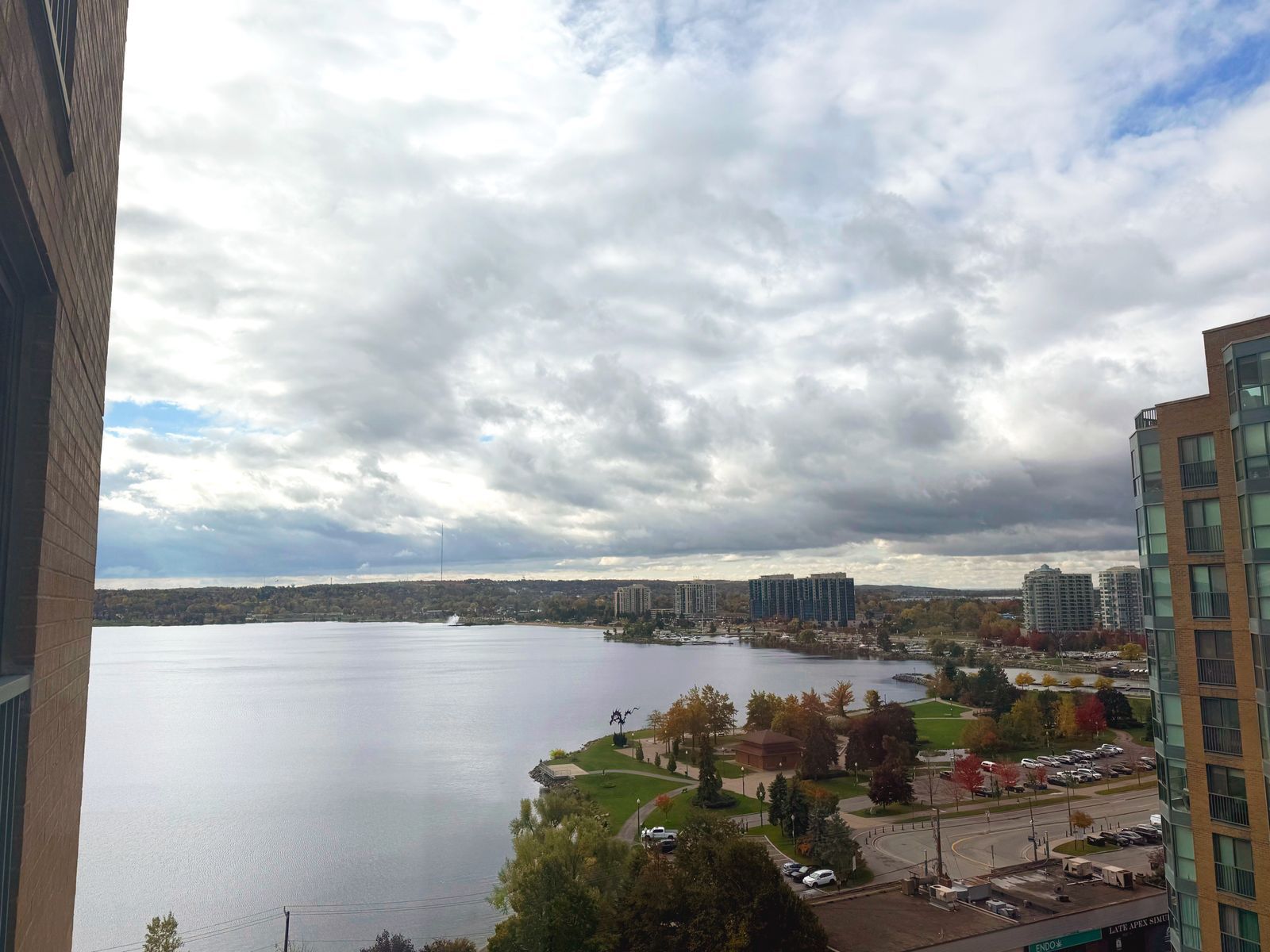 Stylishly renovated 1 bed + den condo with stunning views of kempenfelt bay, modern upgrades & premium amenities! Enjoy breathtaking water views the moment you walk in at this beautifully renovated condo in the renowned bayshore landing, where modern comfort meets the serenity of kempenfelt bay and the vibrance of downtown barrie. Natural light pours through oversized corner windows, illuminating a bright open-concept layout designed for both relaxation and entertaining. The contemporary kitchen showcases sleek cabinetry, built-in appliances, and custom pull-outs, opening effortlessly into the spacious living and dining areas where expansive water views set a stunning backdrop. The inviting bedroom features a custom closet by closets by design, while the versatile den provides an ideal spot for a home office or reading nook. A stylishly updated 4-piece bathroom boasts refined finishes, premium fixtures, and a toto toilet, with a convenient laundry room featuring a full-size washer and dryer. Every corner exudes thoughtful design with smooth ceilings, freshly painted walls, upgraded lighting with dimmers, modern doors and hardware, california shutters, and custom built-ins that add function and flair. Step beyond your suite to enjoy resort-style amenities, including concierge and security, an indoor pool, sauna, fitness and games rooms, party and recreation spaces, and an on-site car wash. Perfectly positioned in the heart of the city centre, this residence places you just steps from vibrant restaurants, cafes, boutiques, event spaces, beaches, and lakeside trails - offering the best of city living with the serenity of kempenfelt bay right outside your window. With a desirable first-level parking space and a spacious private storage locker, this exceptional #hometostay combines everyday luxury with the ease of low-maintenance living near barrie's sparkling waterfront.