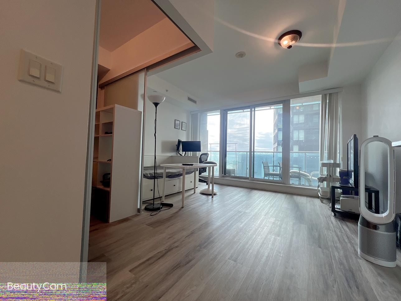 Stunning 1 bedroom with balcony and 9 ft ceilings. Includes parking and locker. Lake view!! This vibrant neighbourhood has all the hottest restaurants, shops, 24 hr metro, 24 hr fitness and so much more!!! Short distance to streetcar, go train, highways and minutes to the downtown core. Amenities: gym, cyber lounge, party room, yoga room, games room. Also close to all local amenities: goodlife, pubs, restaurant, lcbo, street cars, 24 hrs metro, etc.