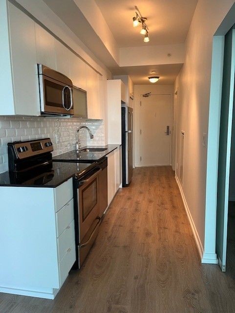Gorgeous, functional 1 bed & 1 bath condo in the heart of liberty village. Balcony with stunning s/w lakeview. Floor to ceiling windows allow for plenty of sunlight throughout. Spacious laundry room for extra storage. Includes storage locker on the same floor as the unit! Includes 1 oversized parking close to the elevator! 24 hr. Security and visitor parking. Walking distance from all amenities, transit, shopping, restaurants, everything you could possibly need! Enjoy all the conveniences of the urban lifestyle of liberty village along with all the extra conveniences this unit provides! Newly installed laminate flooring and baseboards (2024)