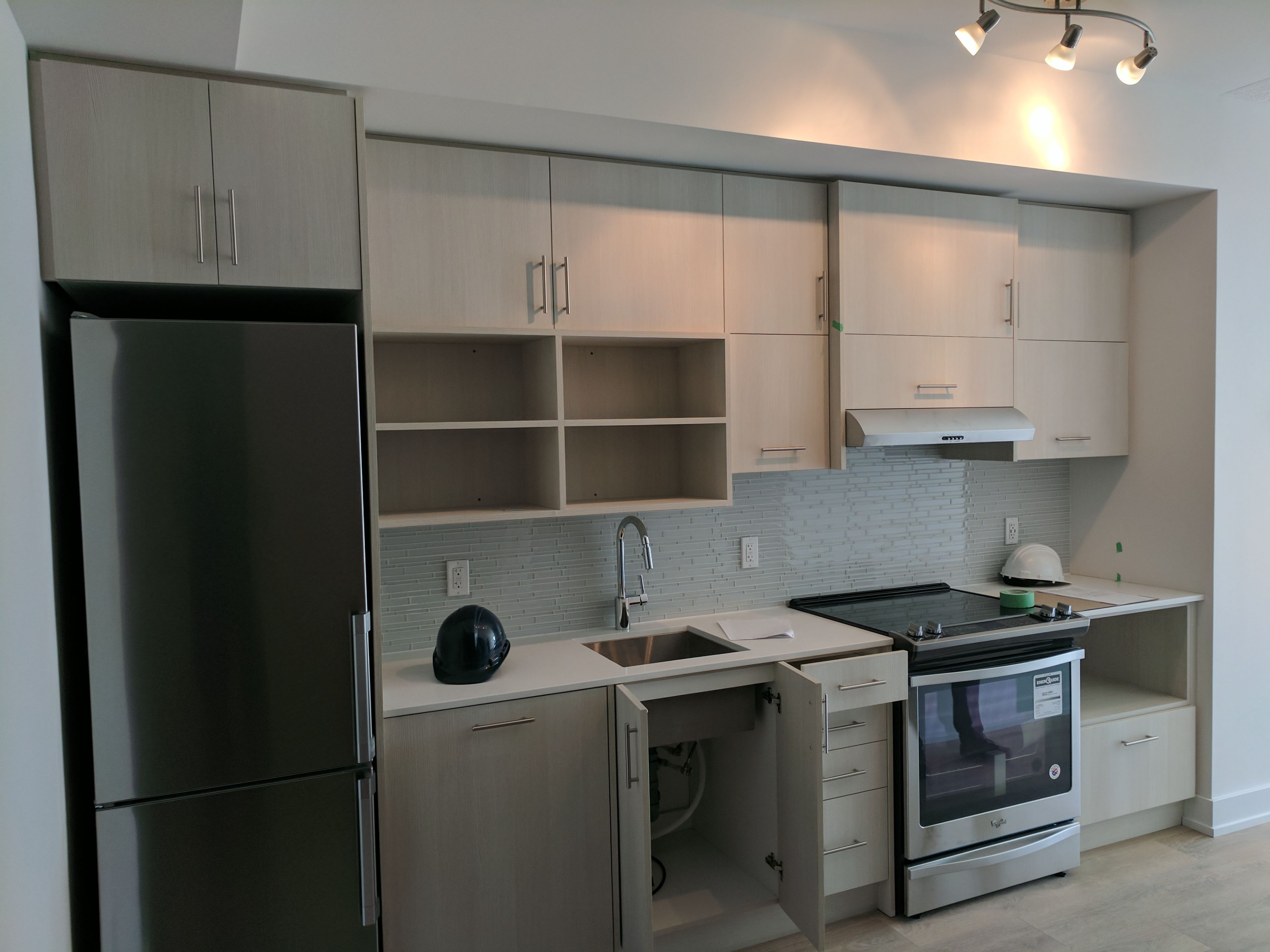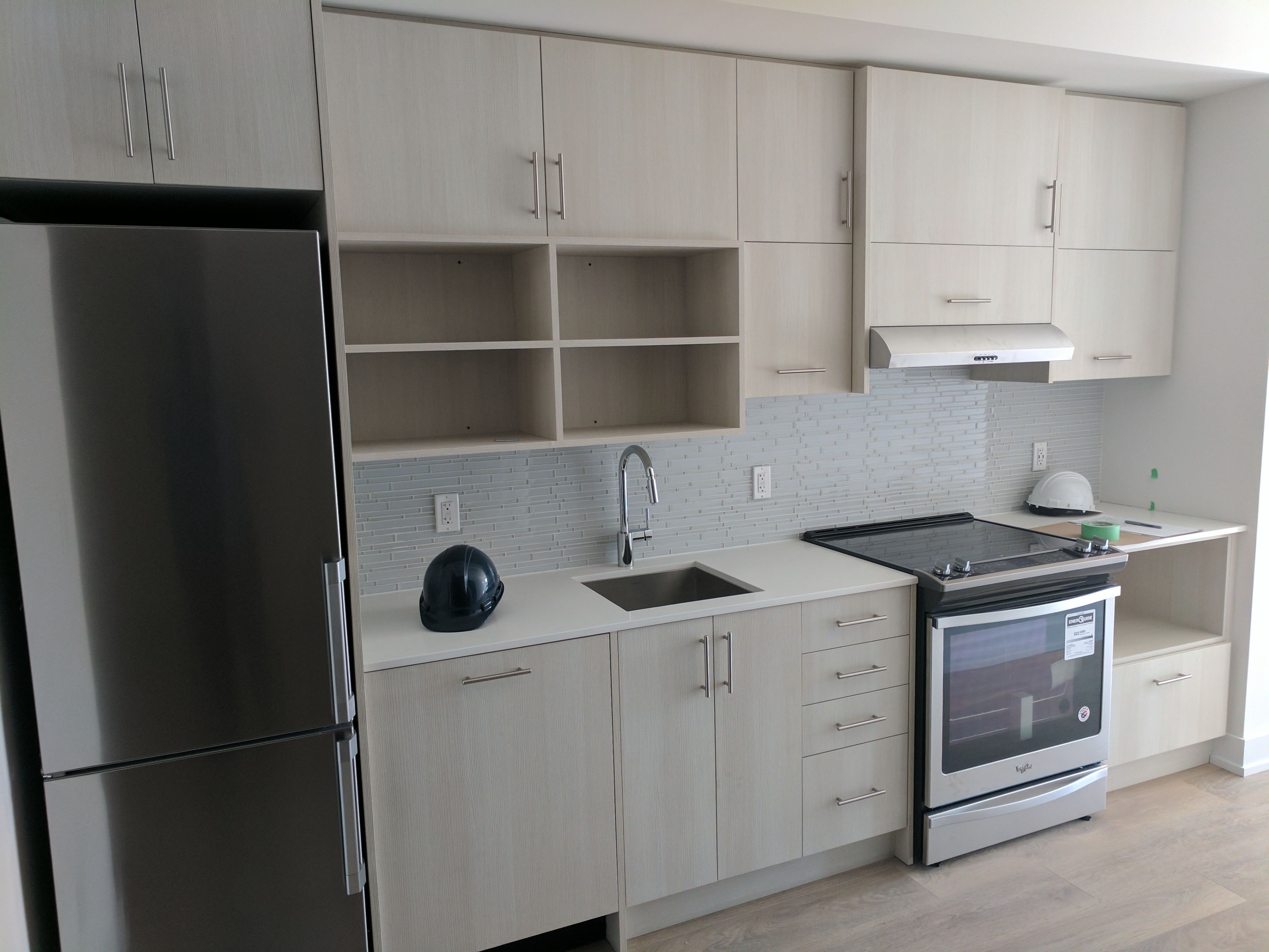 • Open-concept layout with a modern kitchen and stainless steel appliances.