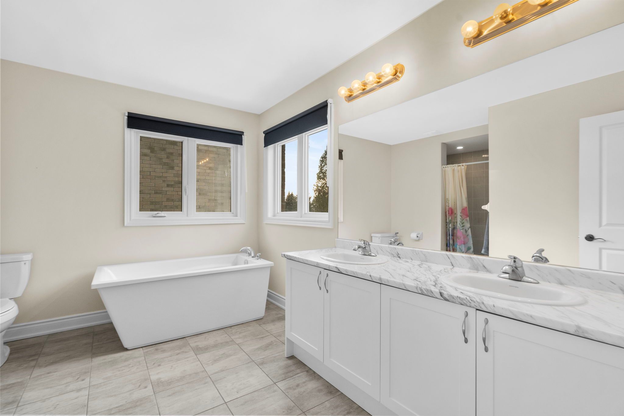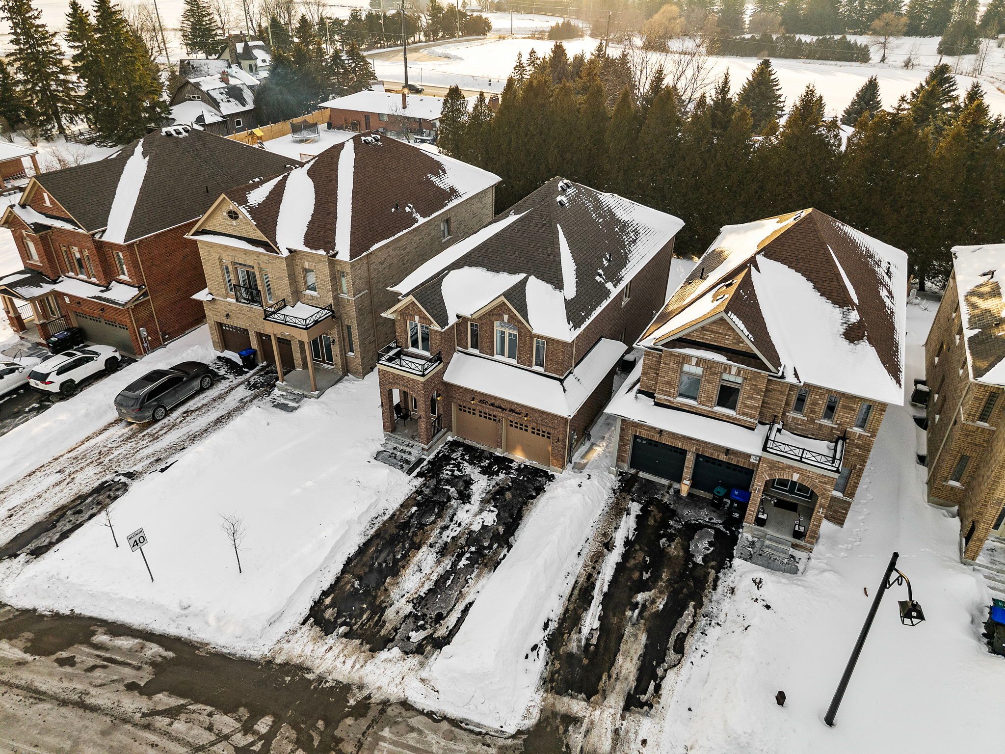 Welcome to this spacious, thoughtfully designed home tucked into a quiet pocket of bradford, backing onto peaceful, lush trees. With countryside views just around the corner and only minutes to highway 400, schools, parks, trails, shopping, and go transit, this home offers the perfect blend of tranquility and everyday convenience. Offering over 3,000 sq ft above grade with 5 bedrooms and 4 washrooms, this home is ideal for growing families or those seeking flexible living space. The open-concept main floor features 9 ft ceilings, a gourmet kitchen with breakfast area that walks out to a private deck, and seamless flow into the living room with a gas fireplace, perfect for everyday living and entertaining. Additional living space includes a separate family room and a dedicated den or office, ideal for working from home. The primary suite is a private retreat, thoughtfully set apart from the other bedrooms and overlooking the treed backyard, complete with a walk-in closet and large 5-piece washroom. All bedrooms are conveniently located on the same level as the laundry, offering everyday ease and the luxury of true functional living. A paved side walkway leads to the basement's separate entrance, offering excellent future potential for additional living space or income opportunities, with enough room for a two-bedroom suite. Enjoy extra parking with no sidewalk. A rare and highly desired lot in bradford, this is a home you truly need to see to appreciate. Book your showing and experience why this lot and layout combination is hard to come across! *please note some images have been virtually staged and/or enhanced to show the potential of the home, including seasonal adjustments.