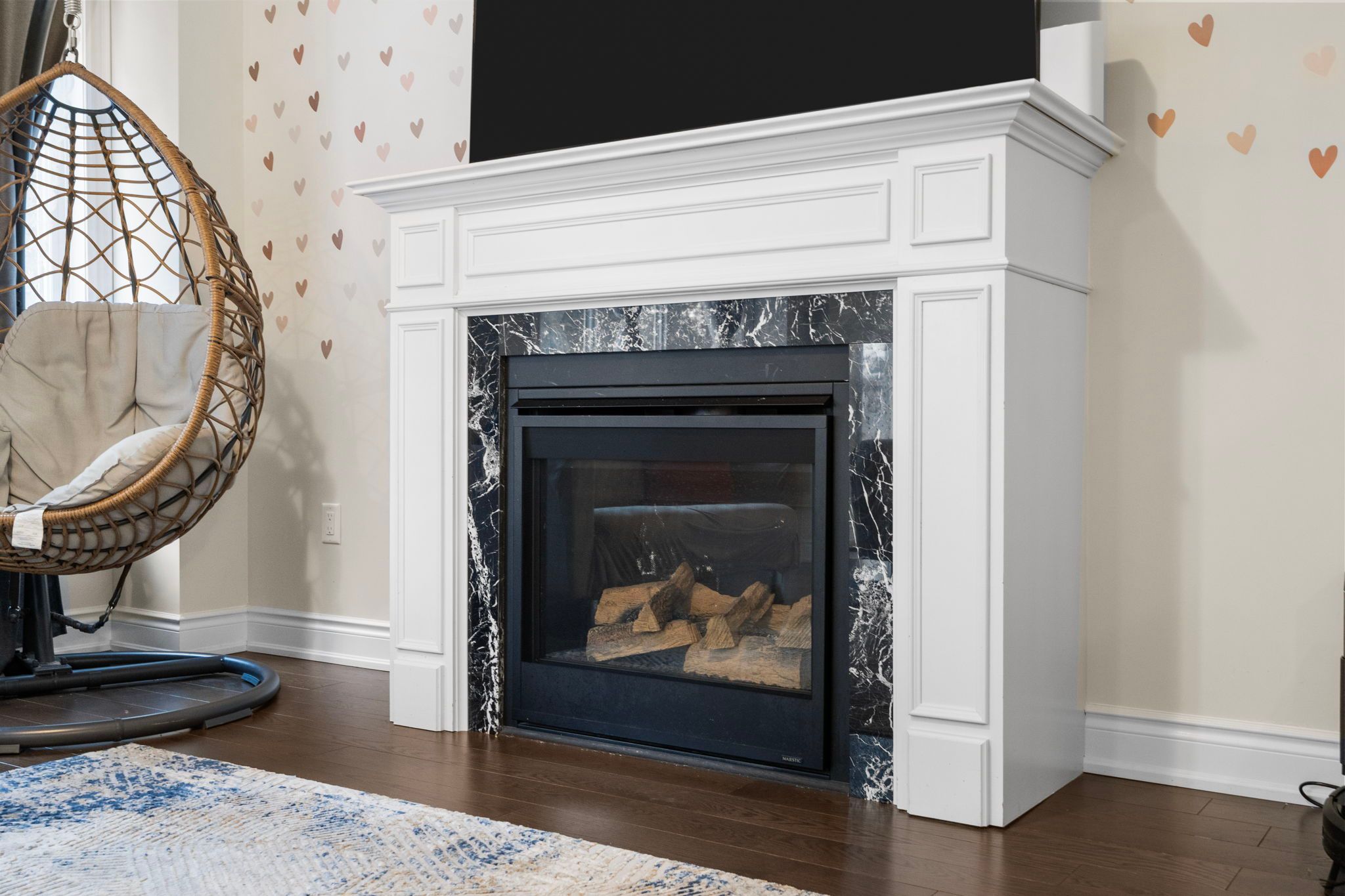 • Open-concept living area with a gourmet kitchen and gas fireplace.