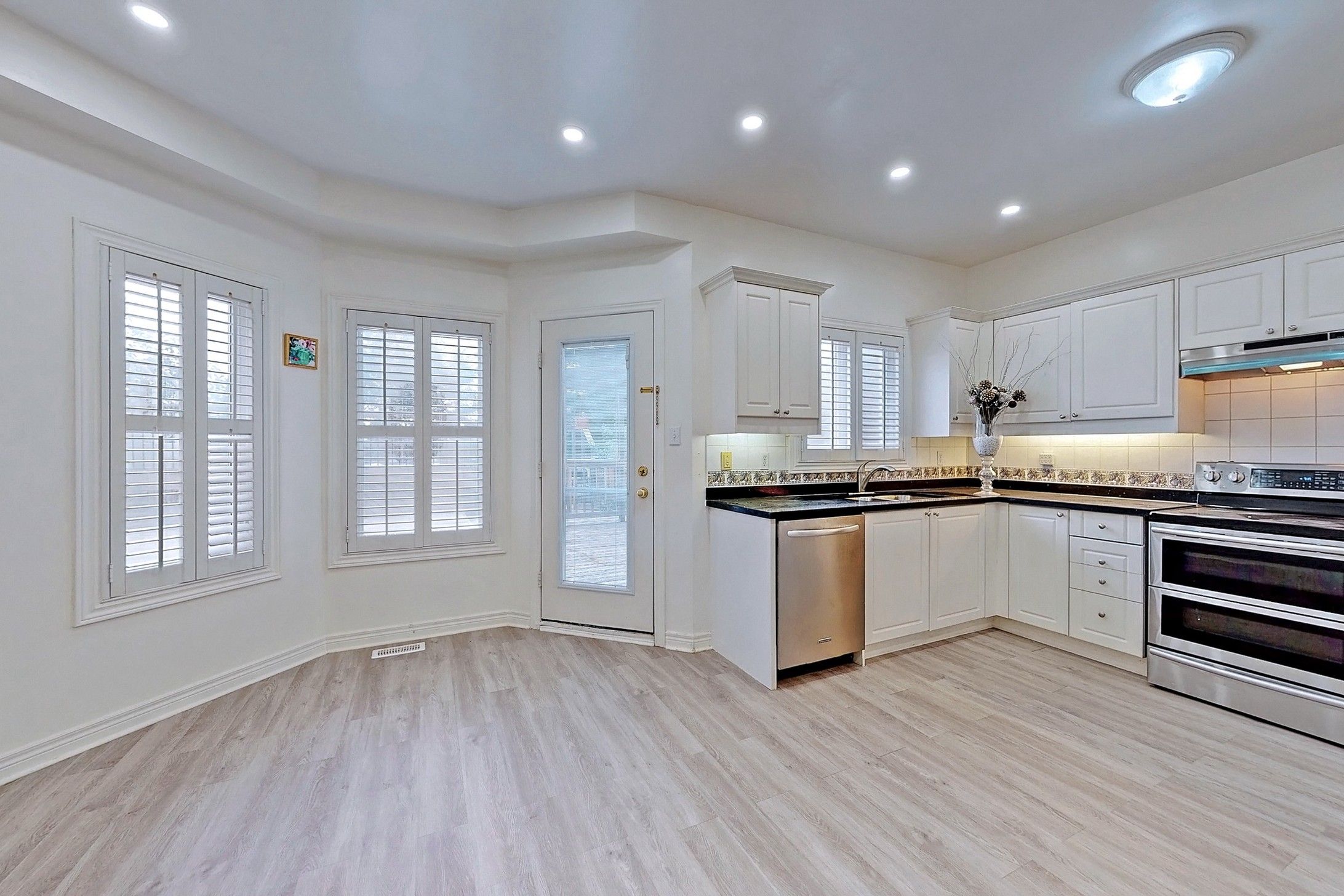 • Modern kitchen with stainless steel appliances and large deck for entertaining.