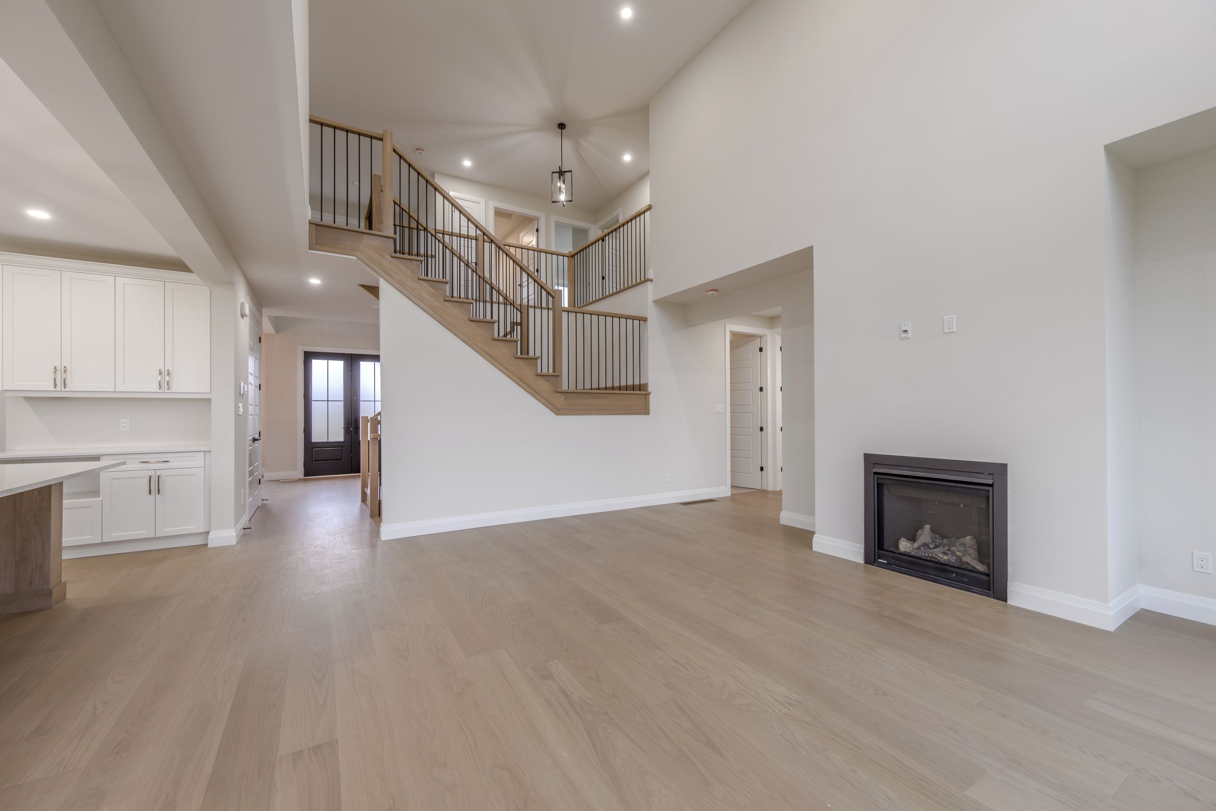 • Standard finishes include engineered hardwood, quartz, and a gas fireplace.