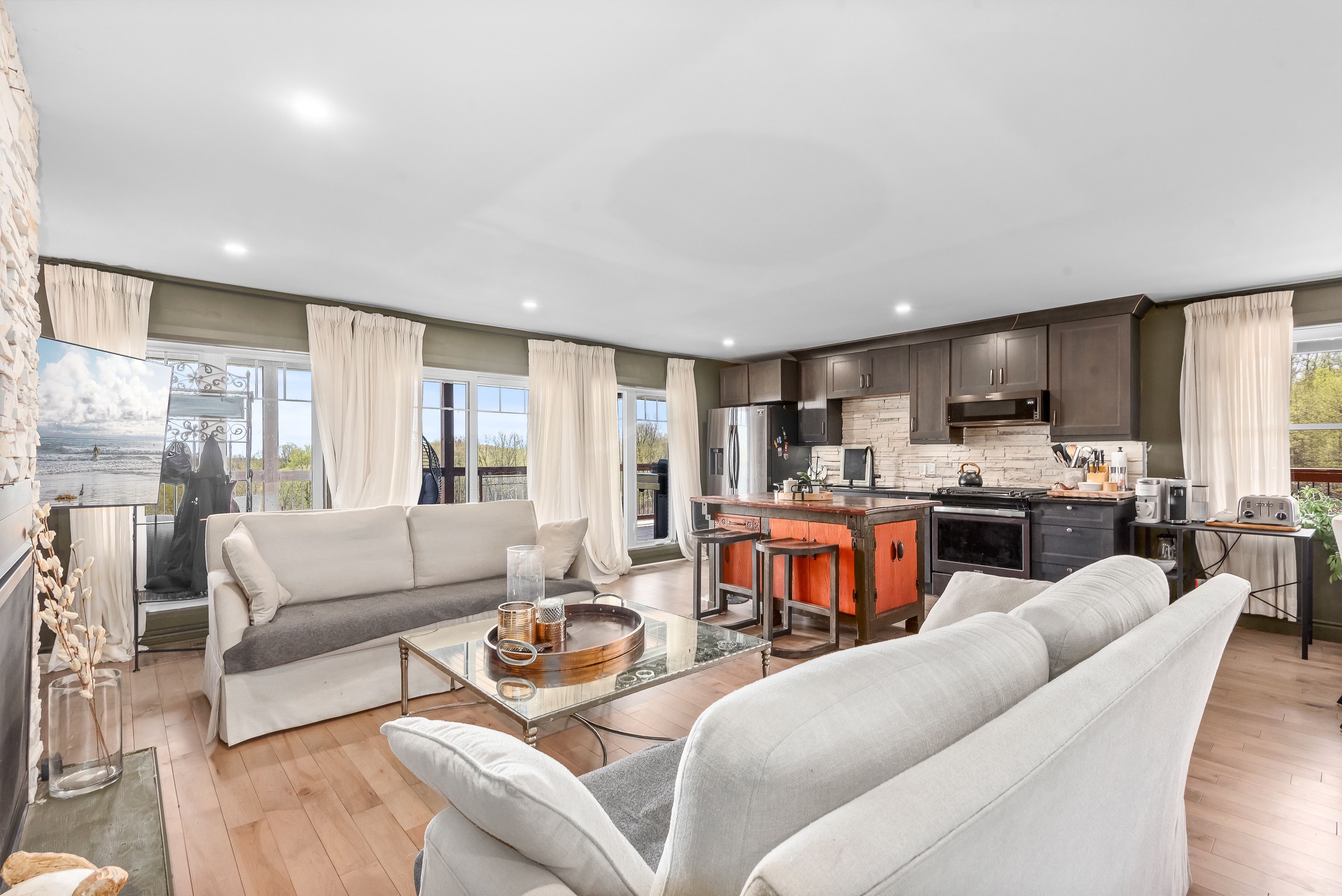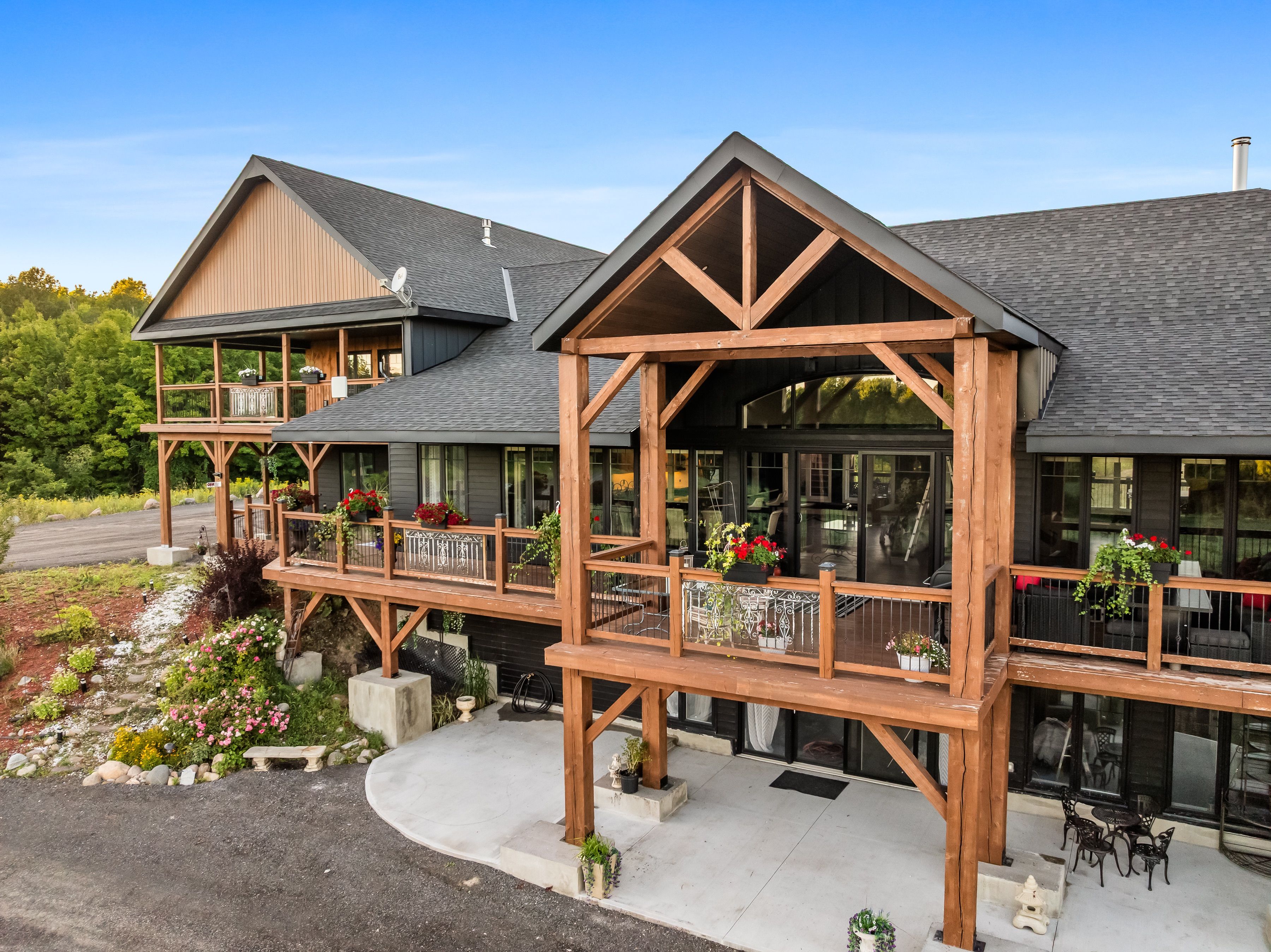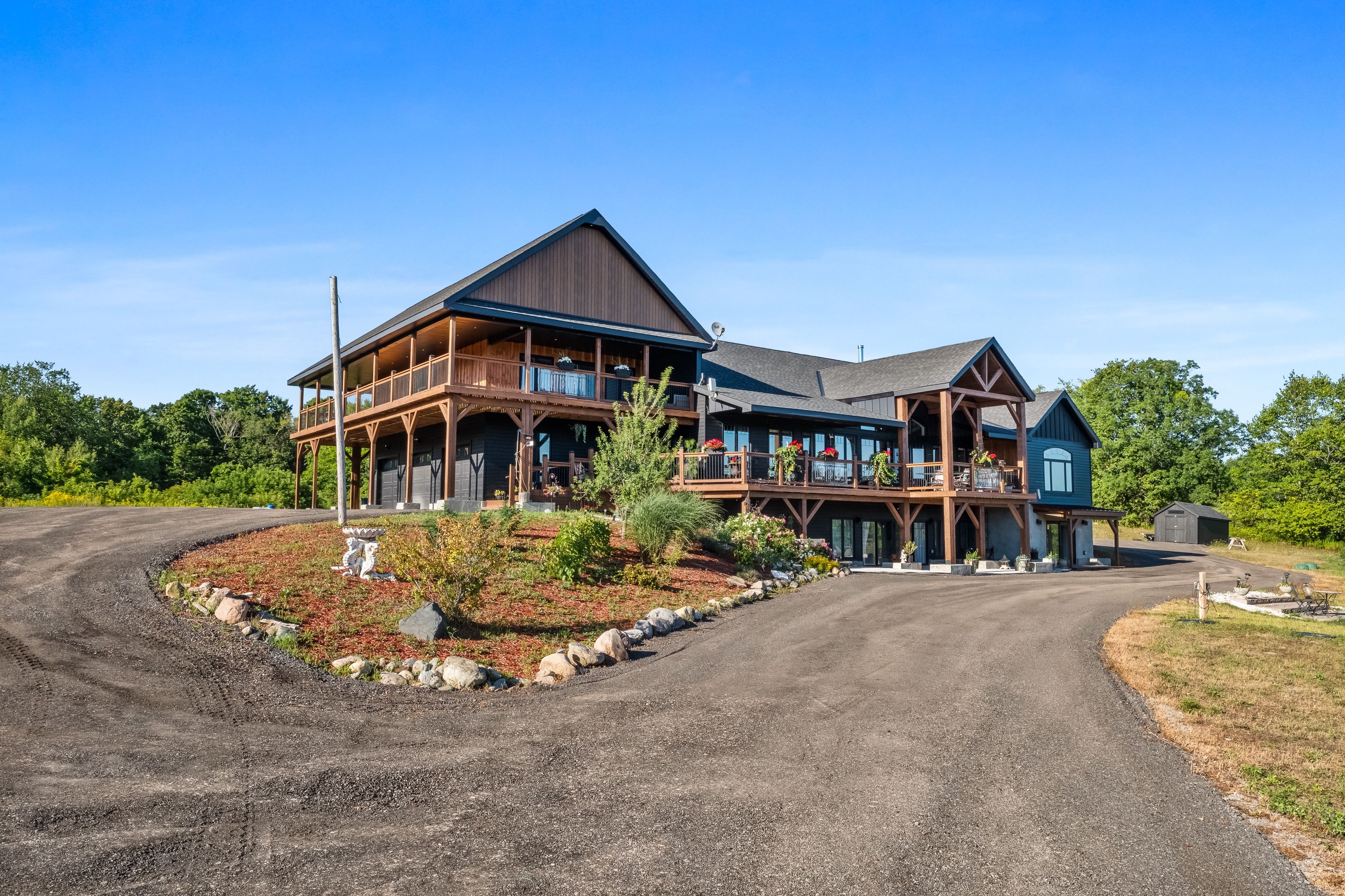 Welcome to 150 long reach road, a rare opportunity to own a newly built (2024) country residence designed with both modern comfort and true off-grid resilience. Nestled on 31 acres of unspoiled land (21 acres of mature forest and 10 acres of open fields) this estate offers unmatched privacy, breathtaking hilltop lake views, and a lifestyle surrounded by nature and wildlife. This sprawling 5-bedroom, 5-bath home showcases extraordinary attention to detail. Inside you'll find four full kitchens plus a kitchenette, each finished with elegant stone counters, including african quartz in the main kitchen. Smart-home lutron lighting and blinds, new trim throughout, and a heated three-car garage elevate daily living. Multiple living spaces allow for multi-generational families, entertaining, or income potential. Engineered for sustainability and peace of mind, the home is powered by a 400-amp underground hydro service with multiple distribution points, a generac backup system, propane, wood heat, and a 3,000-watt wind turbine. Two fresh-water wells with holding tanks and a gravity-fed trickle system ensure a continuous year-round supply from a pristine aquifer. A4 insulation keeps the home efficient and comfortable in all seasons. Step outside to nearly 3,000 sq. Ft. Of covered deck and concrete patio space, perfect for gatherings framed by sweeping lake views. Trails lead directly from your backyard into forested acres, while the newly installed rap road guarantees reliable year-round access. Security monitoring adds another layer of comfort, making this estate as practical as it isbeautiful. Whether you're drawn to a private retreat, a multi-family residence, or a self-sufficient homestead, this home embodies elevated living, true resilience, and the serenity of nature at your doorstep. Conveniently located near highway 401, downtown brighton, and presqu'ile provincialpark.