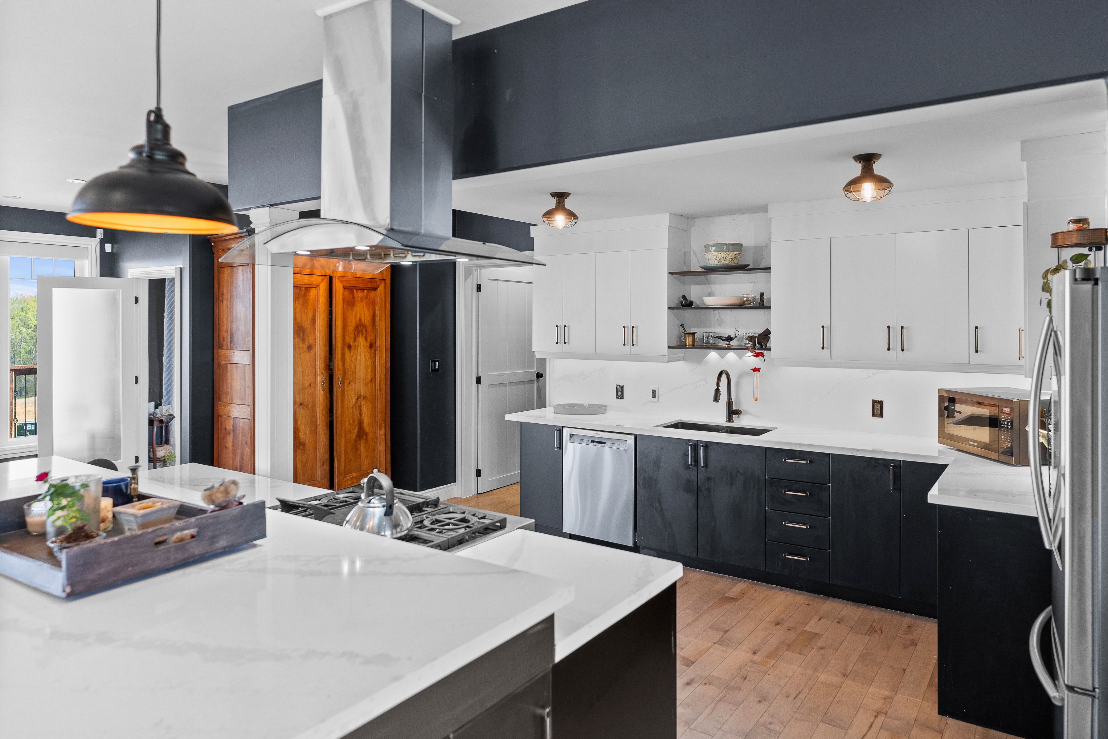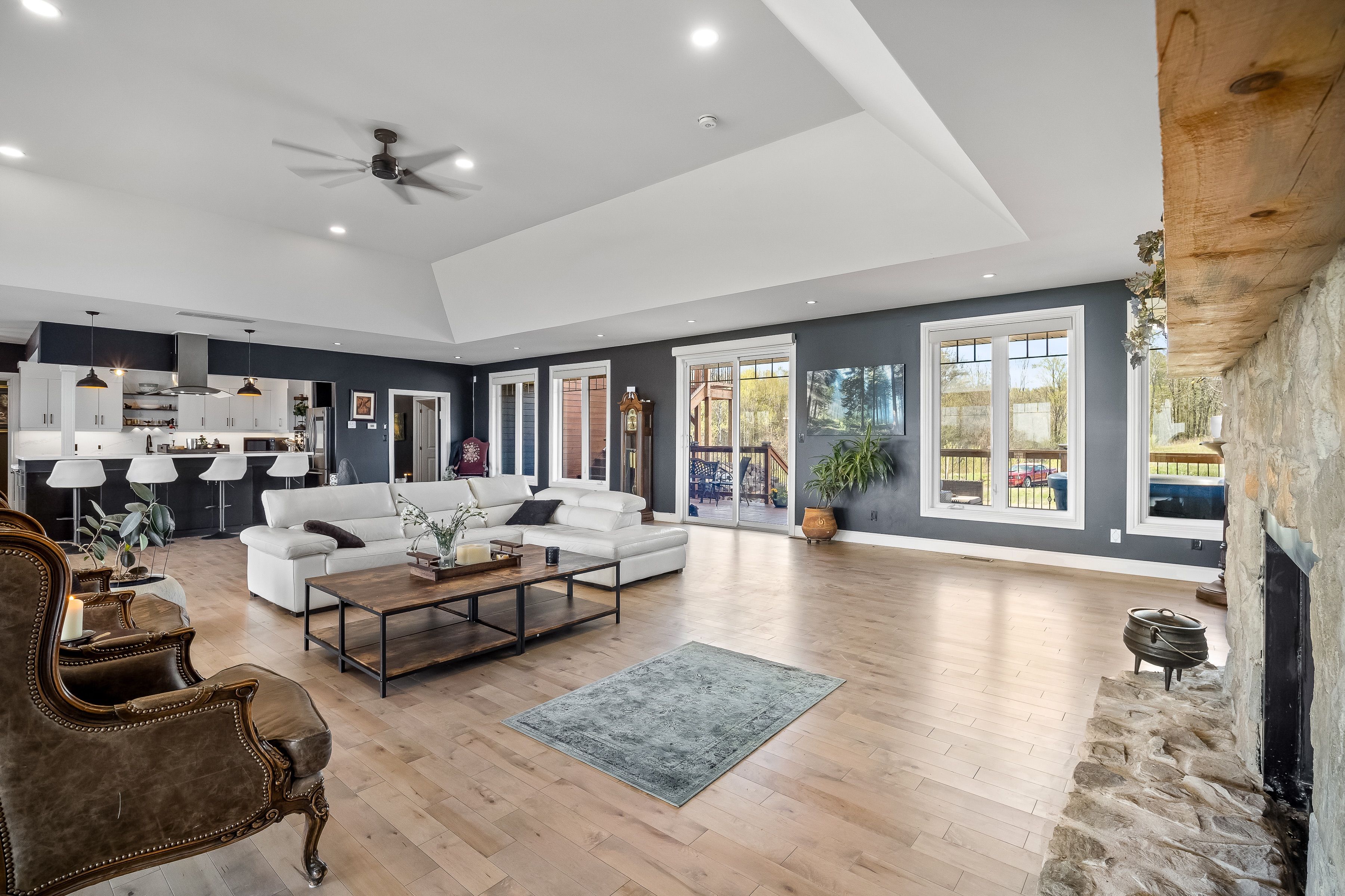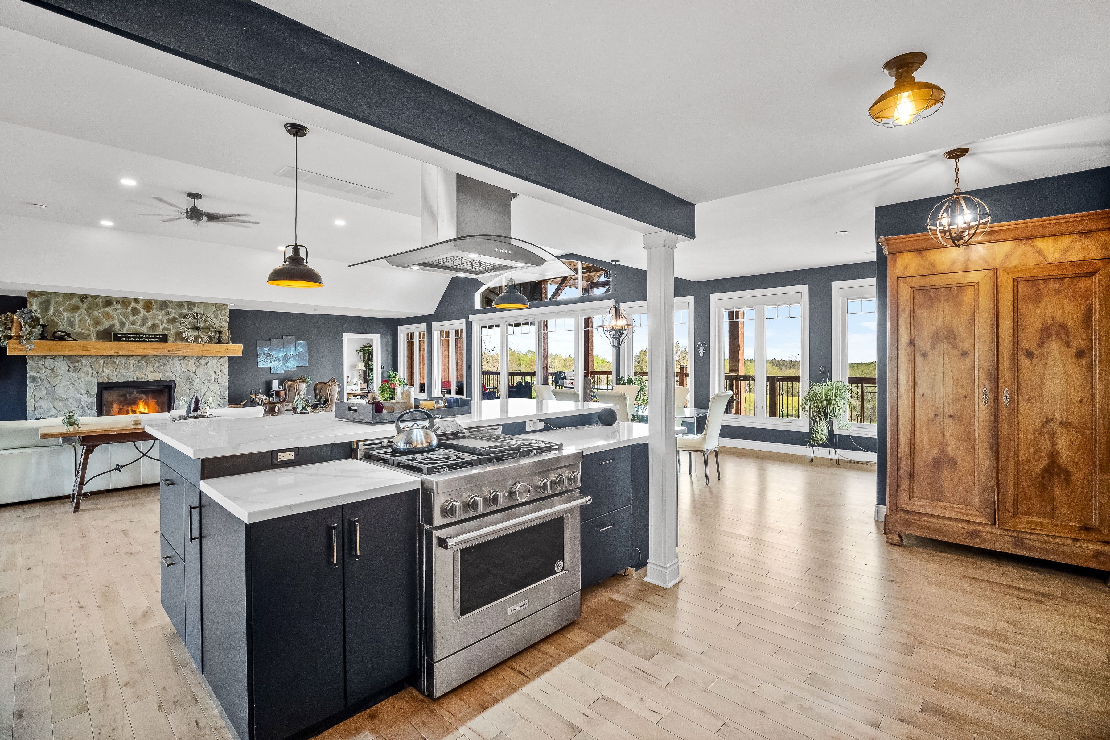 Welcome to 150 long reach road, a rare opportunity to own a newly built (2024) country residence designed with both modern comfort and true off-grid resilience. Nestled on 31 acres of unspoiled land (21 acres of mature forest and 10 acres of open fields) this estate offers unmatched privacy, breathtaking hilltop lake views, and a lifestyle surrounded by nature and wildlife. This sprawling 5-bedroom, 5-bath home showcases extraordinary attention to detail. Inside you'll find four full kitchens plus a kitchenette, each finished with elegant stone counters, including african quartz in the main kitchen. Smart-home lutron lighting and blinds, new trim throughout, and a heated three-car garage elevate daily living. Multiple living spaces allow for multi-generational families, entertaining, or income potential. Engineered for sustainability and peace of mind, the home is powered by a 400-amp underground hydro service with multiple distribution points, a generac backup system, propane, wood heat, and a 3,000-watt wind turbine. Two fresh-water wells with holding tanks and a gravity-fed trickle system ensure a continuous year-round supply from a pristine aquifer. A4 insulation keeps the home efficient and comfortable in all seasons. Step outside to nearly 3,000 sq. Ft. Of covered deck and concrete patio space, perfect for gatherings framed by sweeping lake views. Trails lead directly from your backyard into forested acres, while the newly installed rap road guarantees reliable year-round access. Security monitoring adds another layer of comfort, making this estate as practical as it isbeautiful. Whether you're drawn to a private retreat, a multi-family residence, or a self-sufficient homestead, this home embodies elevated living, true resilience, and the serenity of nature at your doorstep. Conveniently located near highway 401, downtown brighton, and presqu'ile provincialpark.
