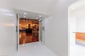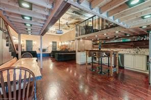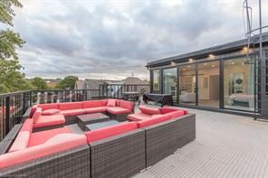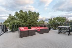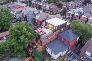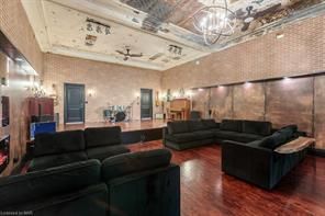 New meets nostalgia in this rare property! Located only 2 blocks from tim horton's field, 7 mins from hamilton harbourfront, blocks from 2 schools & bernie morelli community centre. In 2019 this former church has undergone full renovation. Strategic upgrades & careful preservation resulted in an incomparable find. Greeted by 14ft ceilings with original tin tiles, open concept living & dining areas, stage with a 20ft threatre screen/projector. Entertainment space continues with walkout to 400 sqft tree covered deck. Above is a spacious loft & access to 2nd floor bedrooms & lastly the gracious 3rd floor primary suite with 9ft ceilings. This suite is complete with fireplace, 4pc ensuite, dressing room with custom cabinetry & stackable laundry. Floor ceiling windows take you to 500 sqft rooftop patio with stadium & scenic views of escarpment in background. Lower level has large rental suite, full kitchen, open concept, separate entrance. See schedule c for added info. Buyer/agent to do due diligence. Ask about the rental track record. **lower level refers to basement.