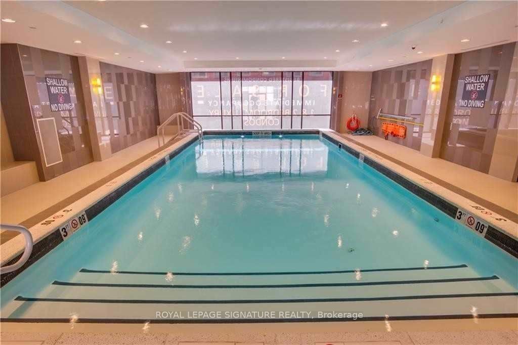 • Building features a pool, gym, and yoga room for wellness.