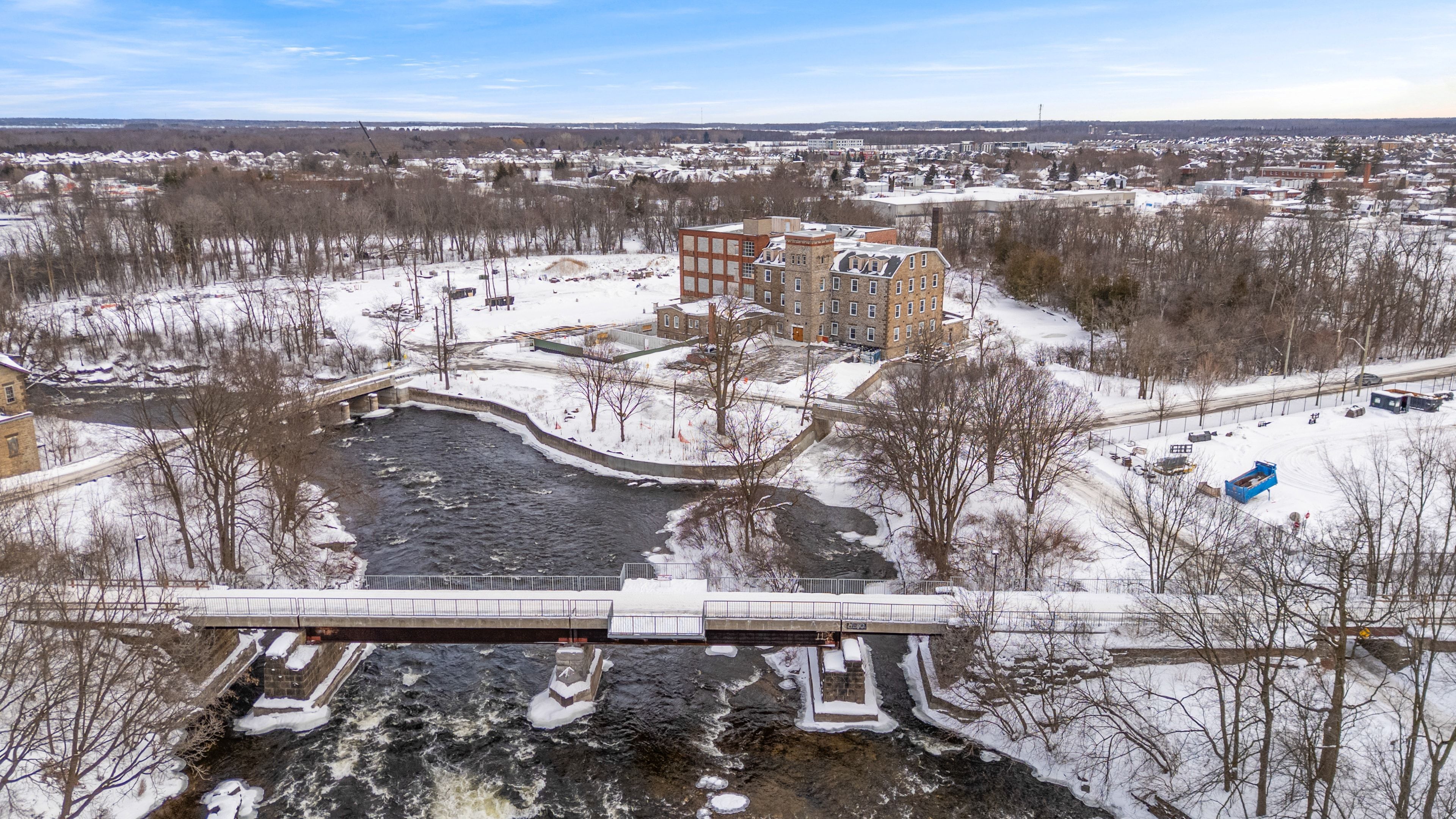 Tri century mill at mcarthur island presents a rare opportunity to lease commercial space within a landmark waterfront redevelopment in the heart of carleton place. This mixed-use destination blends historic character with modern design, creating a vibrant environment for retail, hospitality, office, and event-driven businesses. Available spaces range from approximately 405 square feet to over 4,300 square feet, accommodating boutique retail, service commercial, and hospitality concepts. Flexible access options include exterior entrances and connectivity through the central atrium, supported by strong on-site parking. A signature offering within the development is the tri century event centre, providing approximately 4,398 rentable square feet of dedicated event space, ideal for weddings, conferences, and private functions. Complementing this is a full-service pub and restaurant opportunity totalling approximately 8,086 rentable square feet. The space includes a generous main dining area, a private meeting room, and well-designed back-of-house areas to support kitchen operations, staff facilities, storage, and seamless service flow. An expansive over-water patio further enhances the offering, creating a premier waterfront dining and entertainment destination. The development also incorporates a significant residential component along with an on-site hotel, providing a built-in customer base and consistent foot traffic for commercial tenants. Positioned at 150 mill street with a prominent waterfront setting and thoughtfully designed common areas including atrium and lobby spaces, tri century mill offers a dynamic opportunity to anchor your business within one of the region's most distinctive lifestyle destinations.