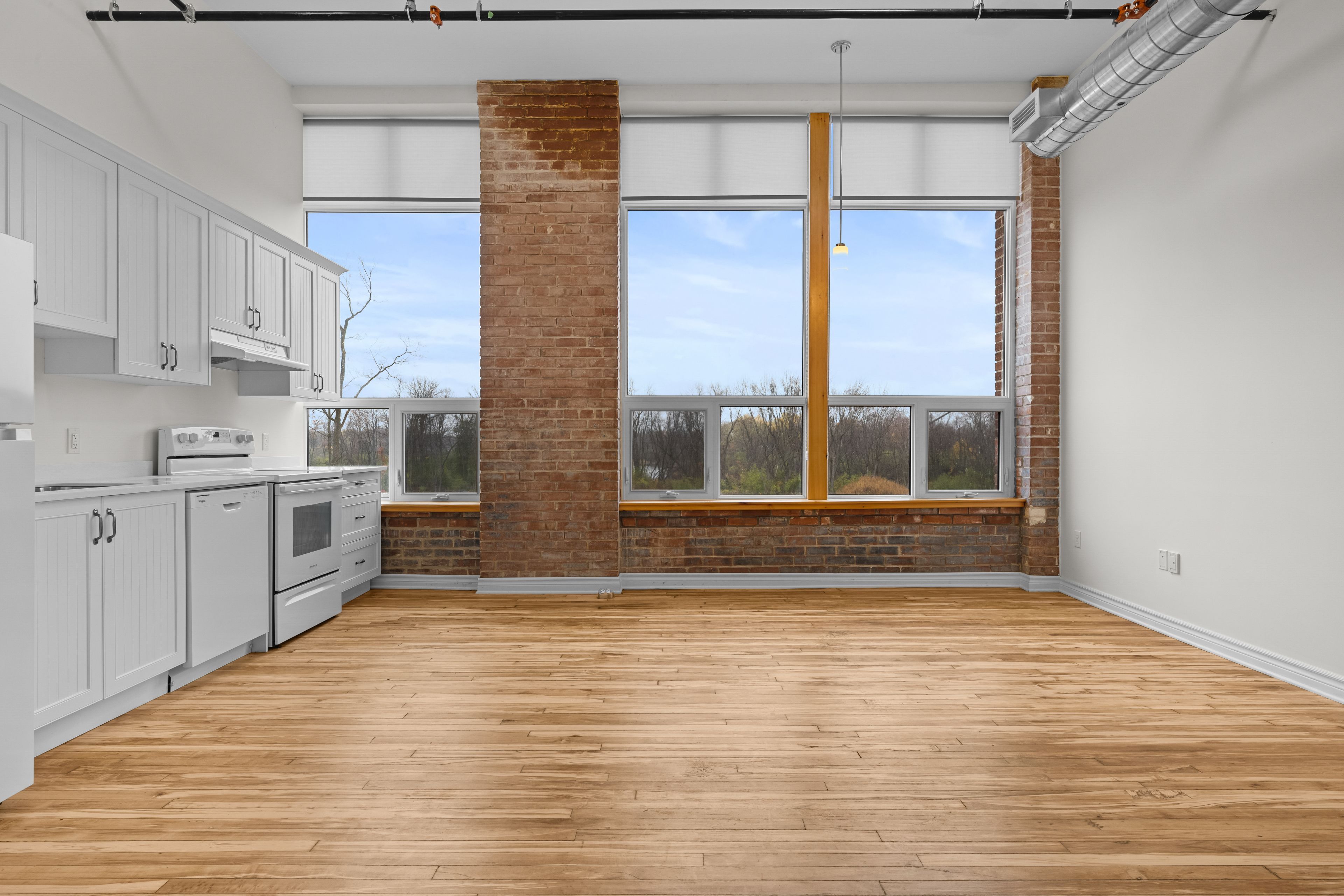 • Large windows provide natural light and a partial Mississippi River view.