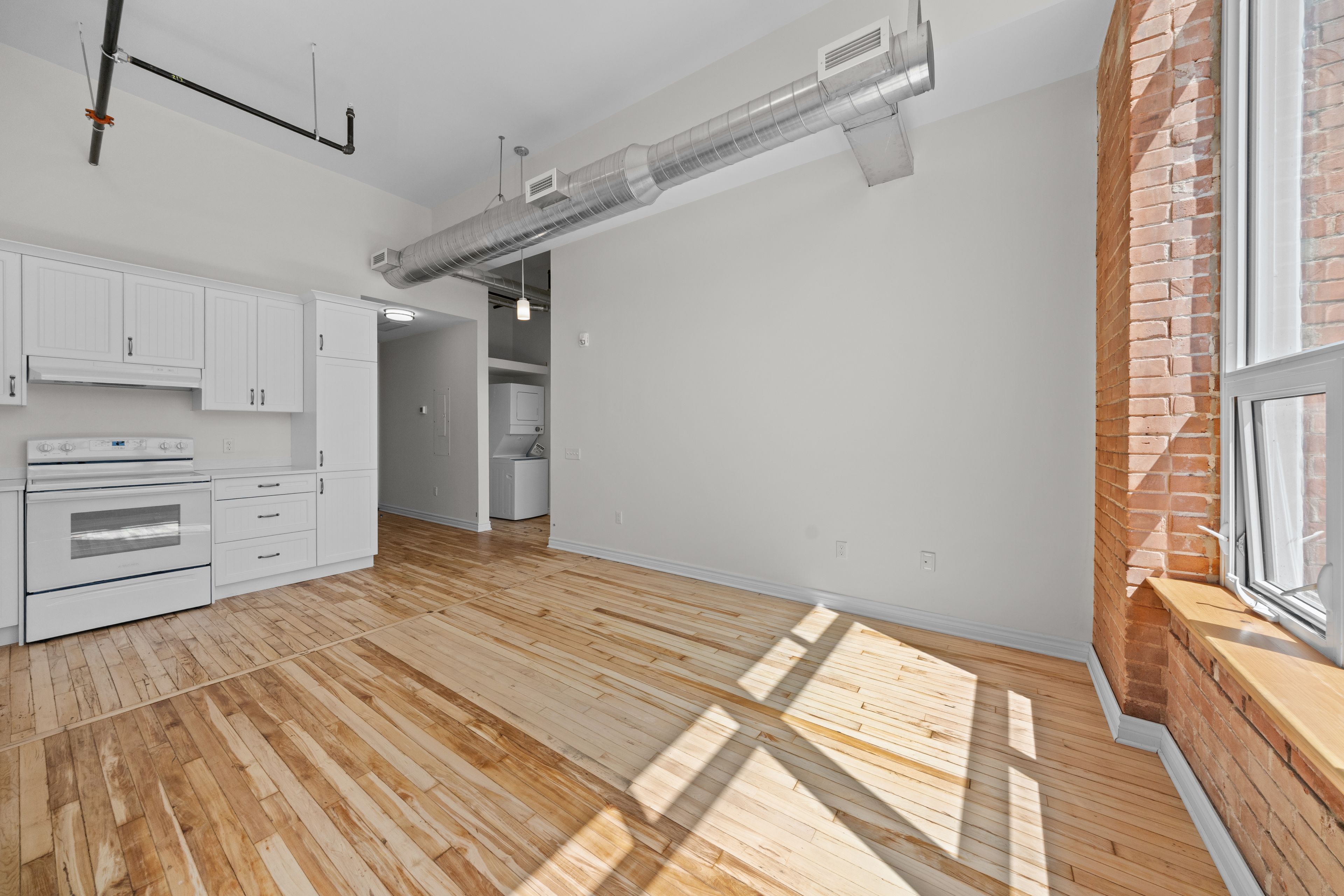 • Unique 1 bedroom + den apartment in a restored historic mill.