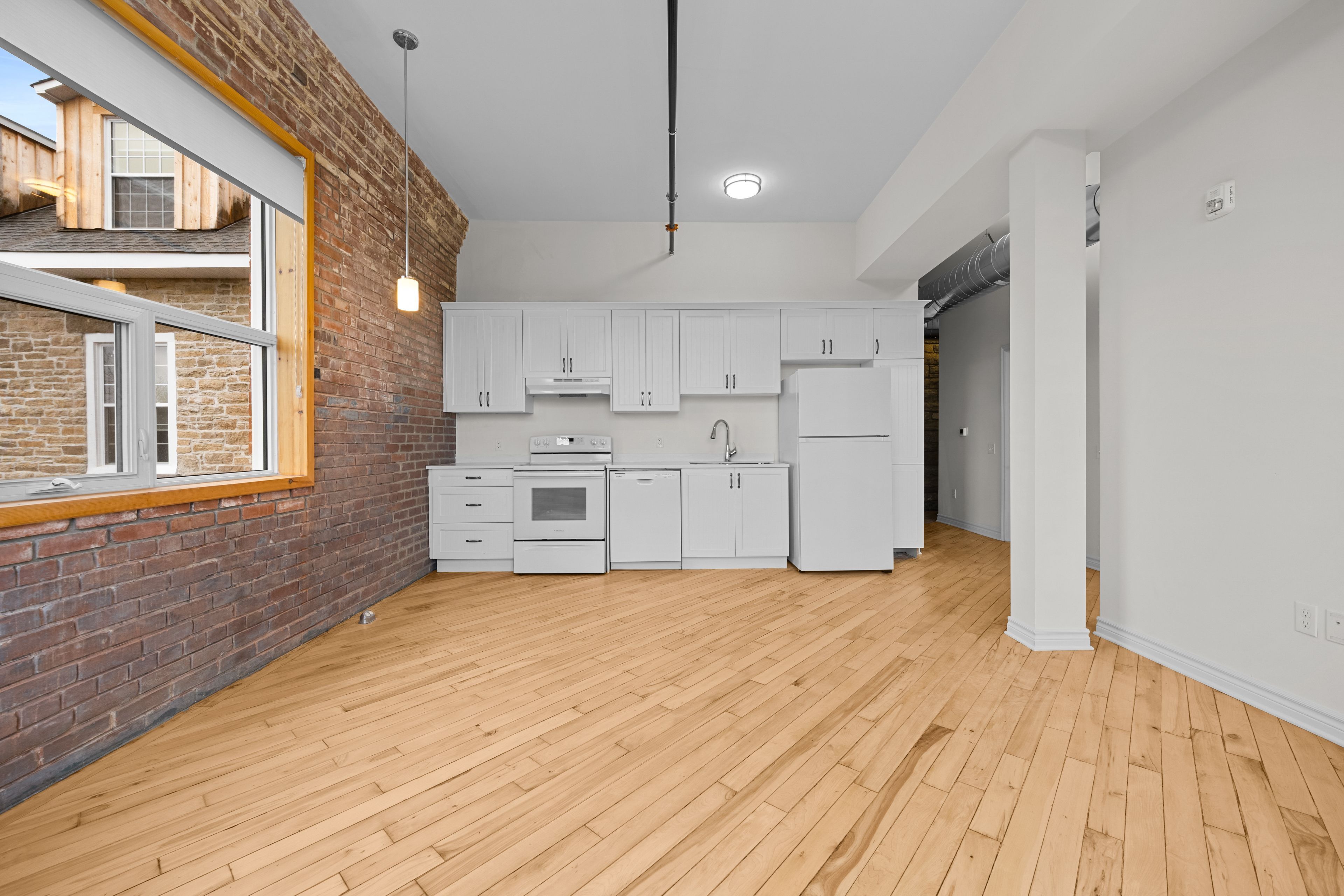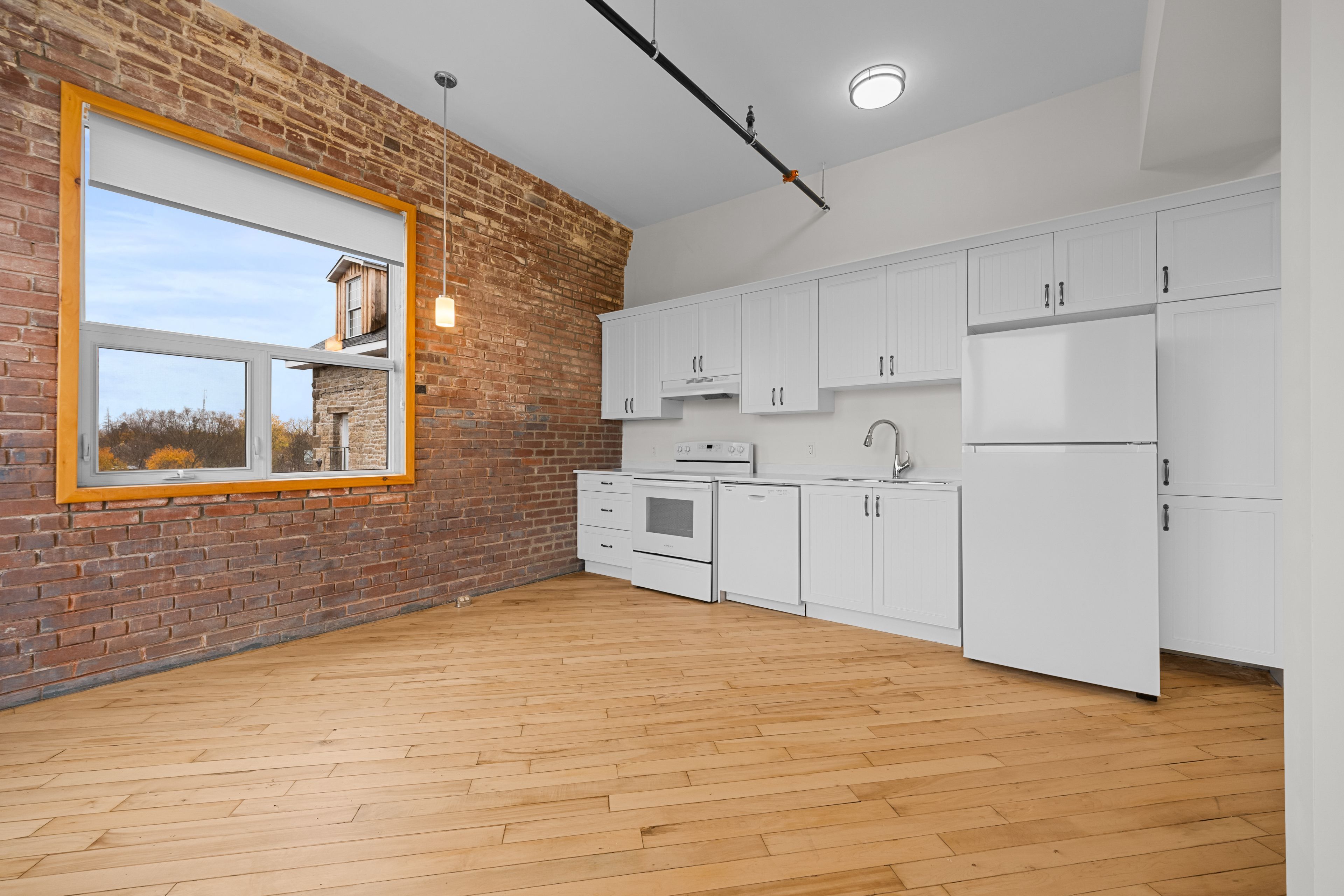 Discover a truly unique 2-bedroom apartment in a beautifully restored historic mill on mcarthur island, right in the heart of carleton place. Offering approximately 880 sq ft, this one-of-a-kind space blends century character with modern comfort. Exposed brick, original hardwood floors, and soaring ceilings highlight the building's heritage, while large windows bring in abundant natural light and offer a partial view of the mississippi river. The open living area feels warm and inviting, with a layout that maximizes functional living and flexible furniture arrangements. Two well-sized bedrooms provide comfort and privacy - ideal for working from home, sharing, or creating a guest space. Step outside and enjoy the best of carleton place on foot: bridge street's shops, cafés, and restaurants, along with scenic riverfront trails and pathways, are all just a short walk away. This is a rare opportunity for those who appreciate history, architecture, and a walkable small-town lifestyle in a sought-after location. Bonus perks: free surface parking for the first year, plus hydro & water free for the first 3 months of the lease.