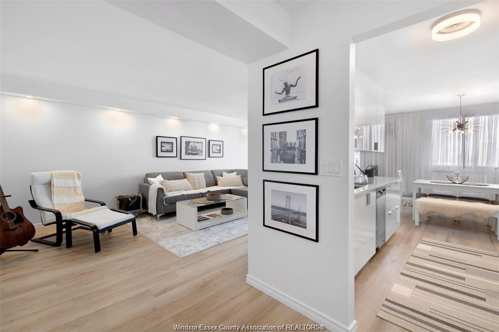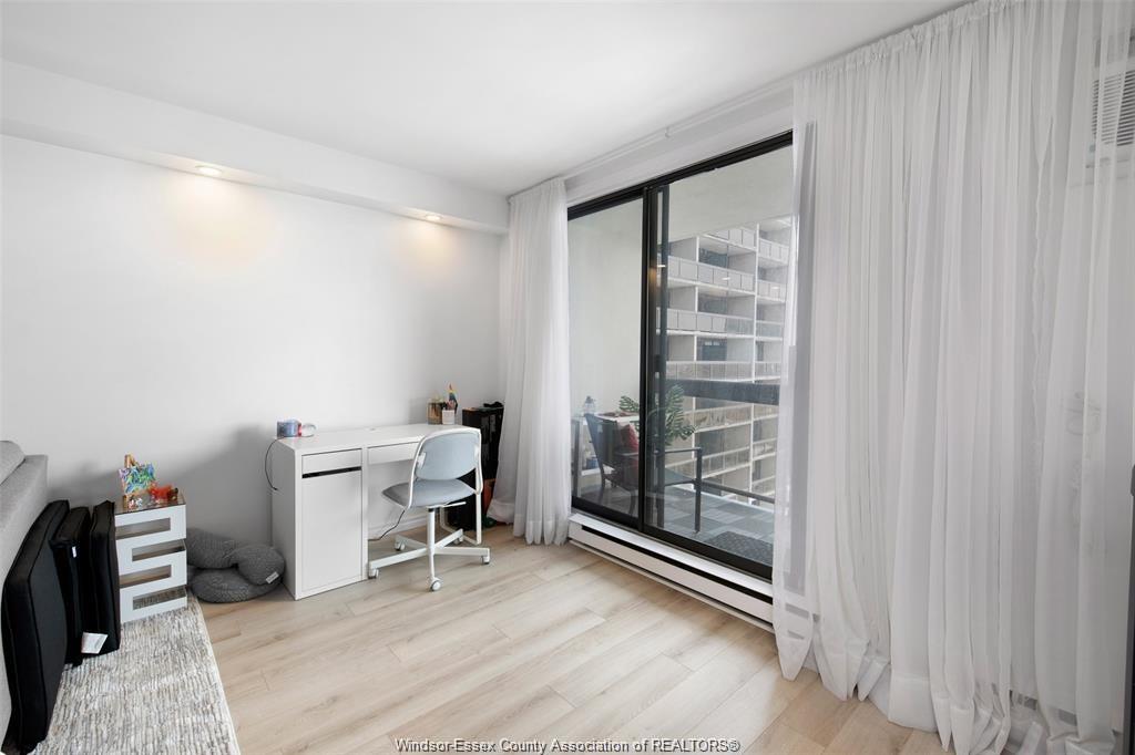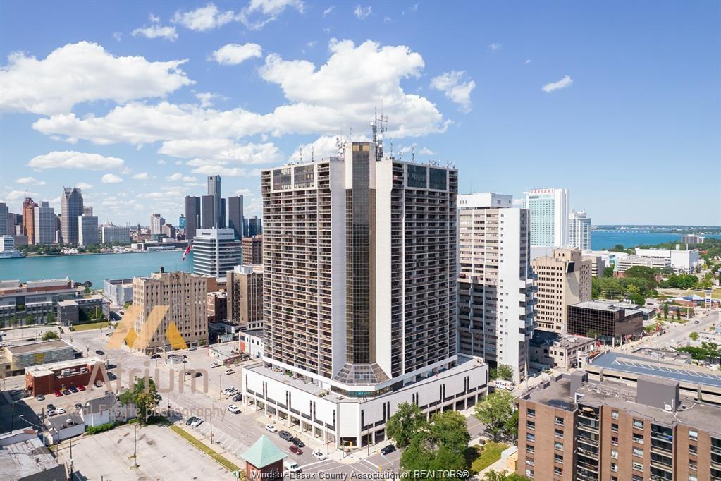 Soaring above the city on the 18th floor, this fully renovated 1-bedroom condo combines luxury, convenience, and unbeatable views of the detroit skyline. The open-concept design features a bright and spacious living and dining area, a sleek modern kitchen, and versatile layout with potential to convert to a 1-bedroom plus den or full 2-bedroom suite — perfect for professionals, growing families, or investors seeking maximum flexibility. Enjoy two private balconies — including one off the primary bedroom — for the ultimate indoor-outdoor lifestyle. This executive unit also includes underground parking and a storage locker. Resort-style amenities await with an indoor pool, gym, sauna, party room, and 24-hour security. Located in the heart of windsor, you'll be steps from shops, restaurants, the waterfront, and transit. Move-in ready with incredible rental and conversion potential.