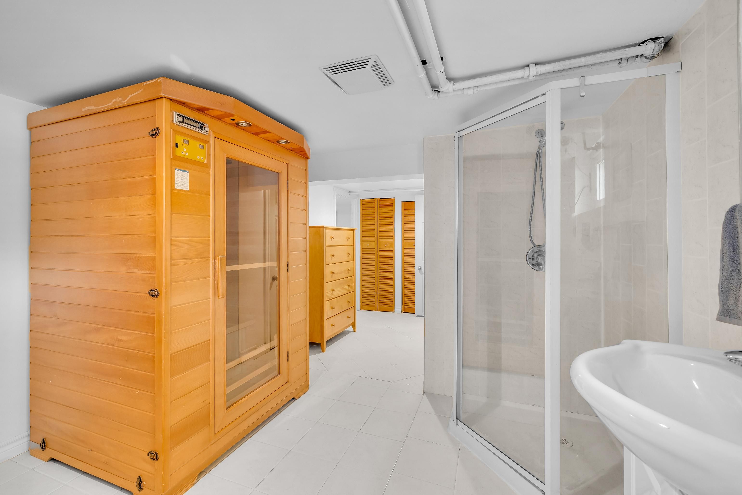 • Finished basement with rec room, sauna, and wine cellar for extra space.