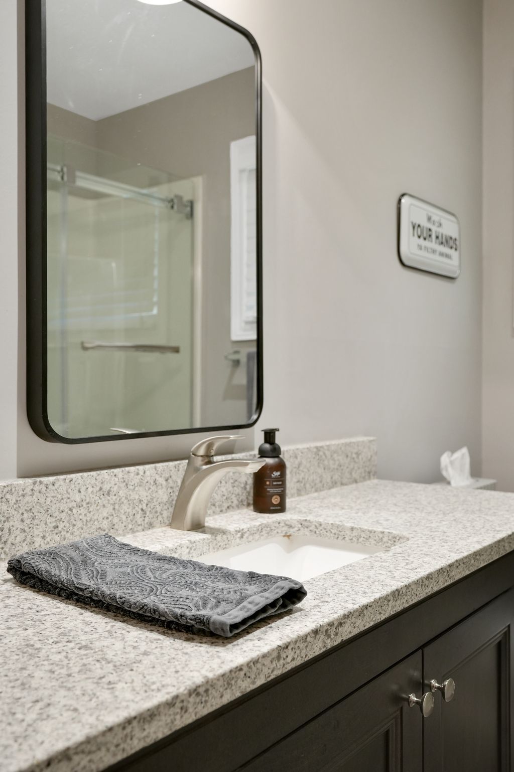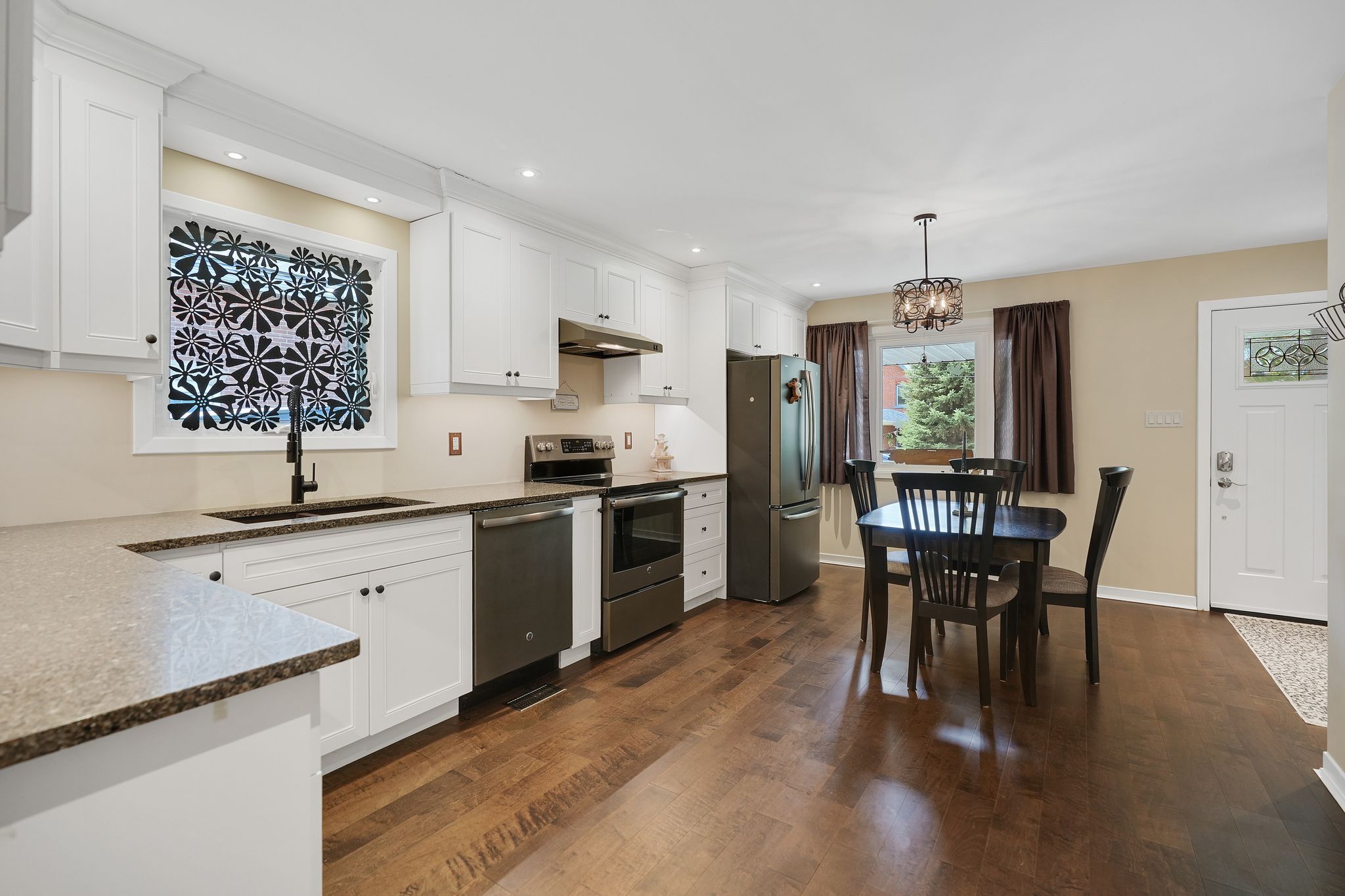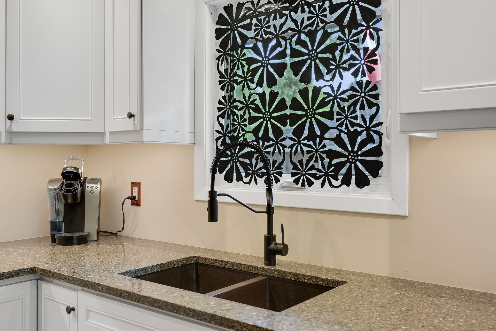 • Spacious updated kitchen featuring granite countertops and stainless steel appliances.