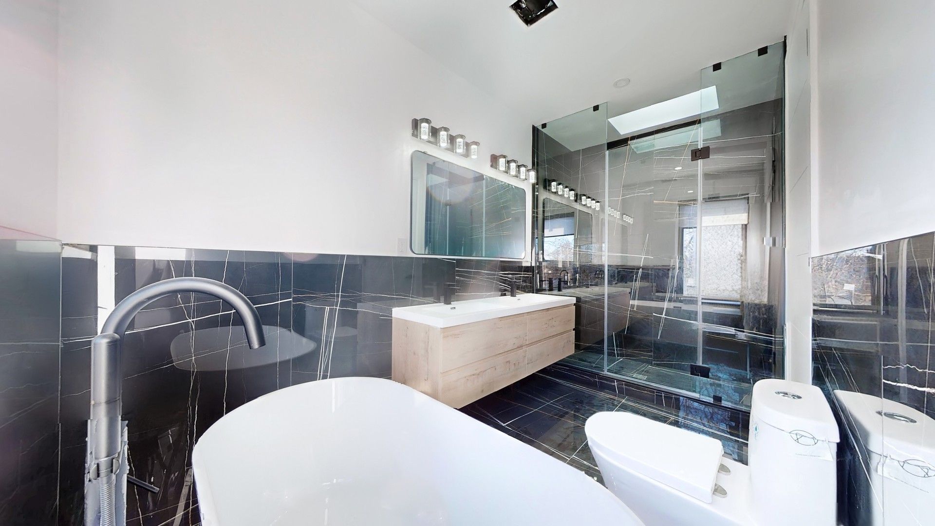 • Large primary bedroom with luxurious ensuite, soaker tub, and skylight.