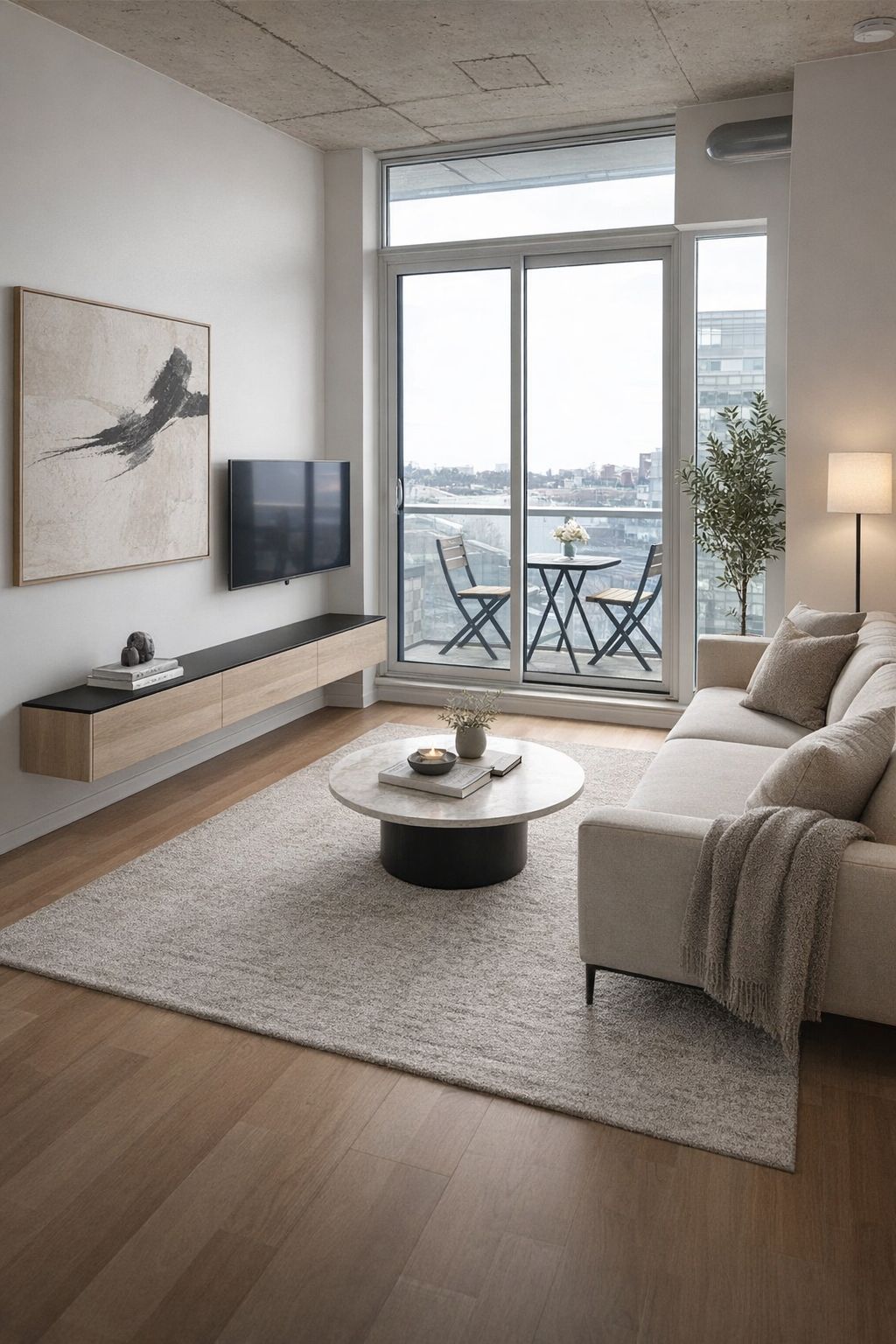 • Abundant natural light from expansive windows creates a bright atmosphere.