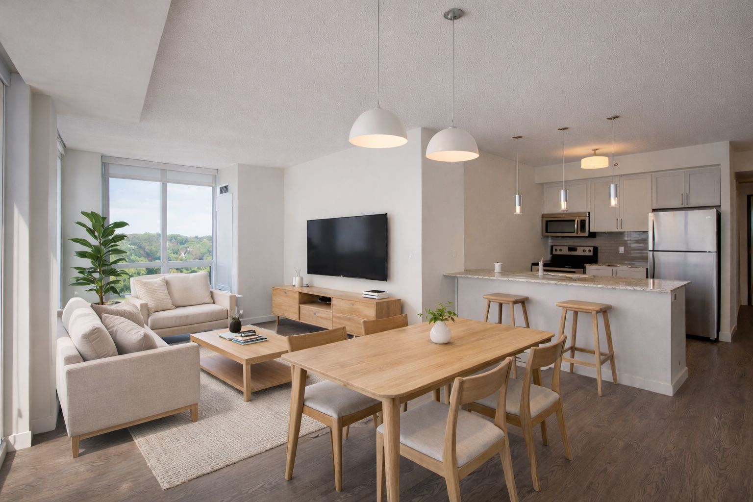 • Access to amenities like a fitness center, social lounge, and outdoor terrace.