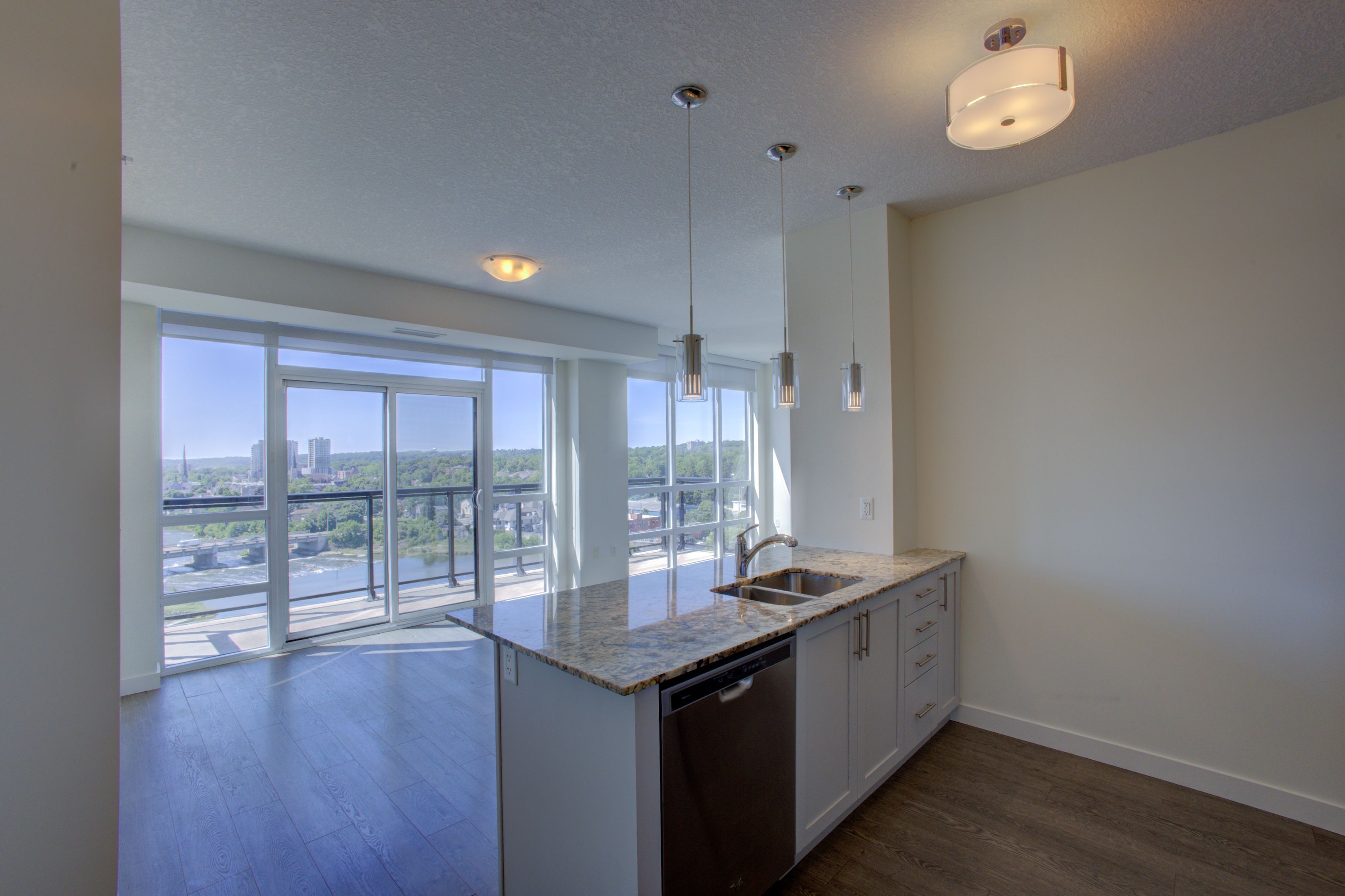 • Pristine corner unit with stunning, unobstructed views of the Grand River.