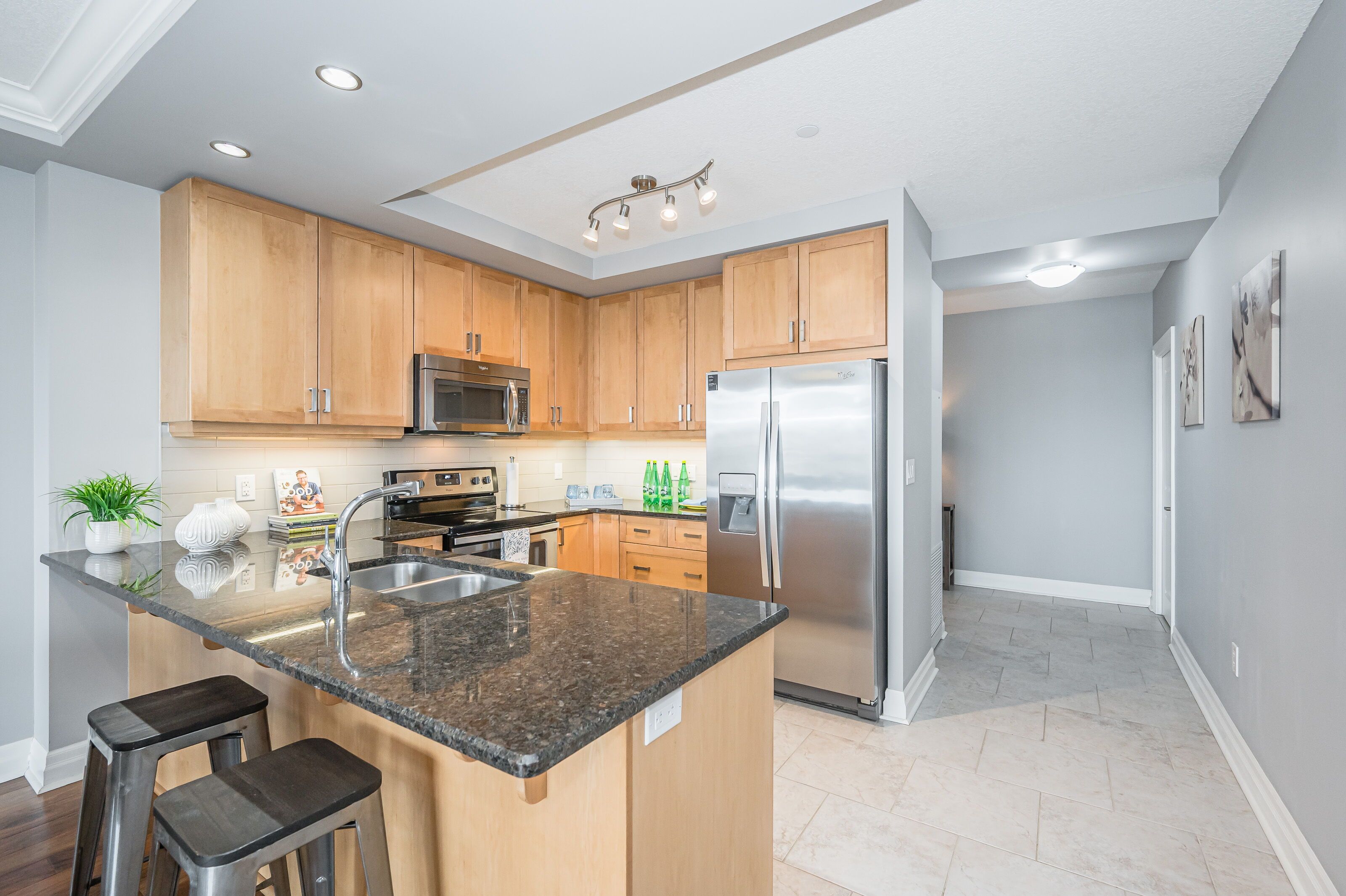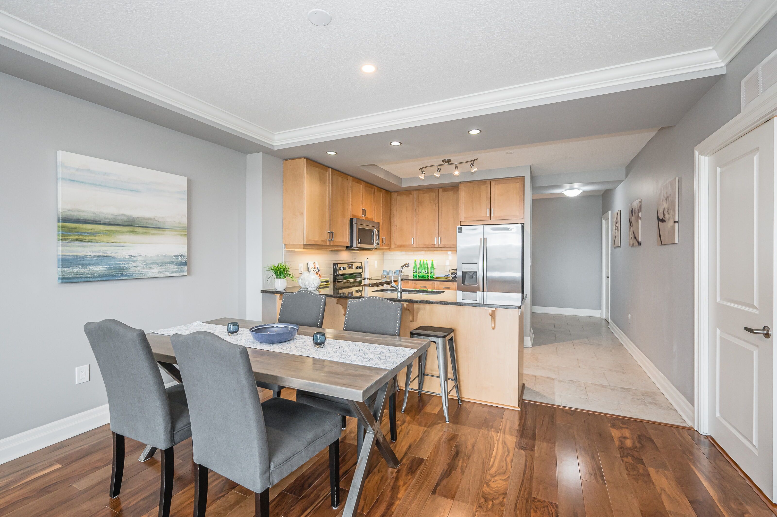 Welcome to suite 901 at river mill - where modern luxury meets downtown guelph's most picturesque setting. This prestigious condominium offers a rare advantage: highly sought-after parking for two vehicles. Nestled quietly along the banks of the speed river on a beautiful tree-lined street, river mill places you in the heart of the city while surrounding you with serenity. From the moment you enter the art-gallery-inspired lobby, river mill's sense of sophistication is unmistakable. Inside suite 901, a generous foyer leads you into a bright, airy split-bedroom layout accented by elegant finishes and floor-to-ceiling windows that flood the space with natural light. The stunning chef's kitchen features quartz countertops and high-end appliances, opening seamlessly into a spacious living and dining area-perfect for entertaining. Step out onto your private balcony to enjoy sunshine, fresh air, and unobstructed views of historic downtown guelph. The thoughtfully designed floor plan places bedrooms on opposite sides of the home for maximum privacy. Your primary suite serves as a true retreat, complete with an oversized closet and a contemporary ensuite showcasing a sleek glass walk-in shower. Known for its exceptional amenities, river mill offers a lifestyle and recreation centre, theatre, library, guest suite, garden terrace, sky lounge, and even dedicated space for your own gardening. Step outside and you're just moments from go transit, via rail, guelph transit, scenic trails, parks, cafés, restaurants, shops, galleries, schools, and the beloved farmer's market. Don't miss the opportunity to make this exceptional residence your urban oasis in one of guelph's most desirable buildings.