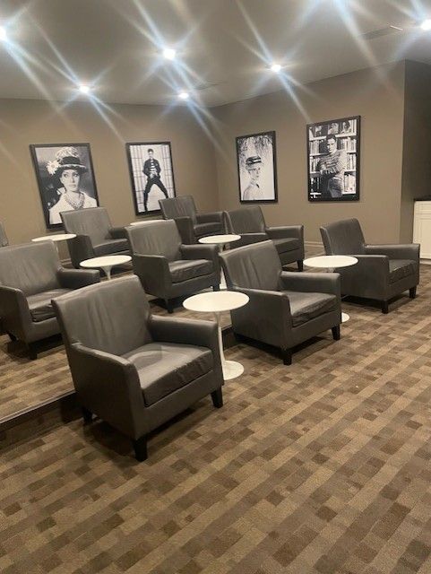 • Amenities include gym, library, movie room, and outdoor garden area.