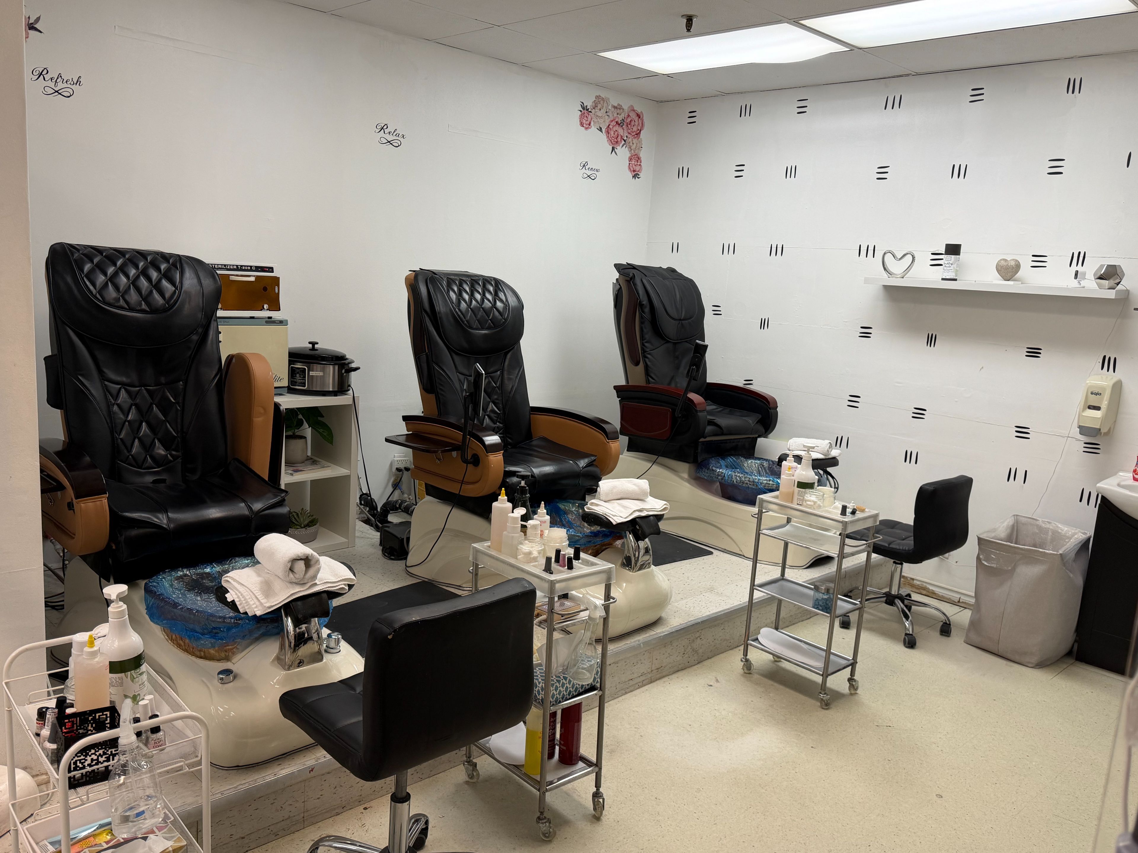 • Equipped with 4 pedicure chairs and 4 manicure stations for immediate use.