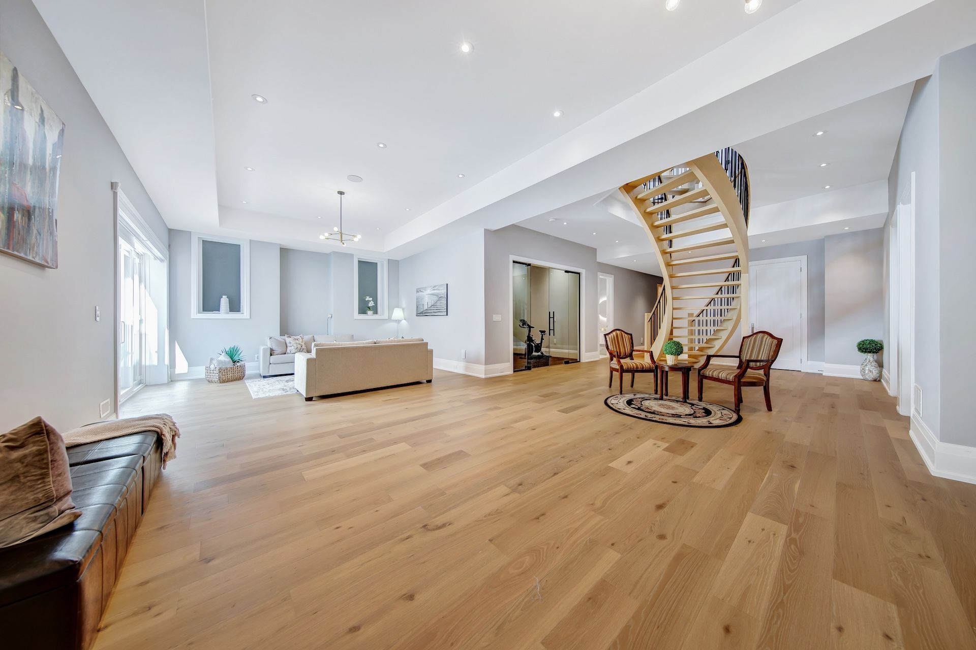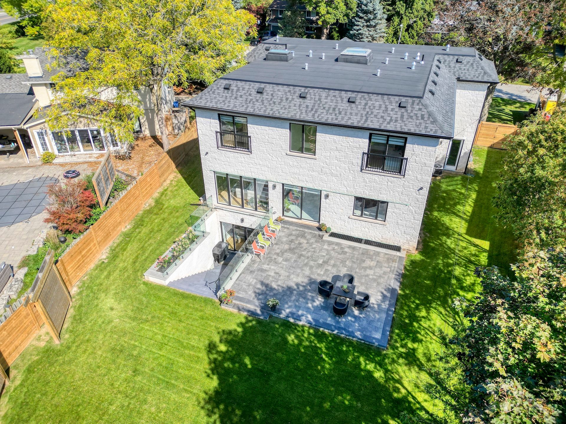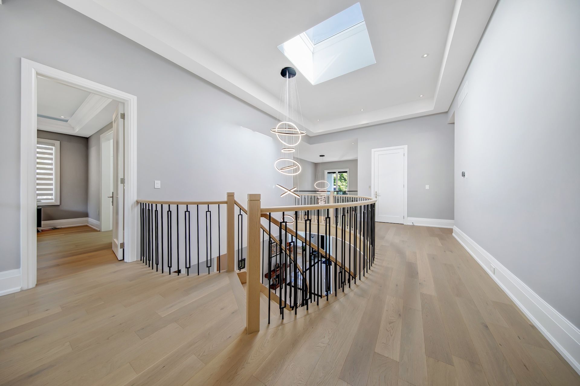 Welcome to 150 wolfdale avenue. Entertainers dream home, built by ambassador fine custom homes in 2023 fall, on a 0. 36 acres in southwest oakville, south of lakeshore road. With 7276 square feet of living space on all three levels, this home perfectly combines sophisticated luxurious design with quality construction to create the ultimate package. The main floor is beautifully designed with exquisite detail radiant heated large porcelain tiles. The near 11-foot ceilings provide an open-airy feeling throughout. No estate home would be complete without a grand foyer and and this home has just that with 22 -foot ceilings, center of the house with 24-foot ceilings with large skylight allowing the entire house to be flooded with natural light while also highlighting the stunning hanging circular staircase beneath. Built-in wine cellar storage for over 180 bottles. The kitchen is a show piece with stunning 10-foot waterfall island, quartz slab backsplash and two-toned cabinetry and top-of-the-line wolf ,sub-zero & miele appliances. The kitchen/great room combination is designed for large scale entertaining with it being open concept to the dining room. A tucked away mud room, walk in closet with custom shelving & an elegant custom powder room are the perfect spaces to keep your family organized while providing inside access to both the garage and rear yard. Main floor you find your primary home office with front yard views. Elevator besides mud area travels all 3 floors for convenience of movement. The upper hallway stops you with a beautifully vaulted ceiling, skylights. Primary bedroom is located across the rear of the home taking in the best views of the backyard with ample natural light. The open concept walk-in closet with a skylight complements the primary ensuite, is a beautiful combination of rich tones to create the ultimate spa oasis. 3 additional bedrooms, laundry & library are found upstairs, each one uniquely decorated & appointed with closets and ensuites.