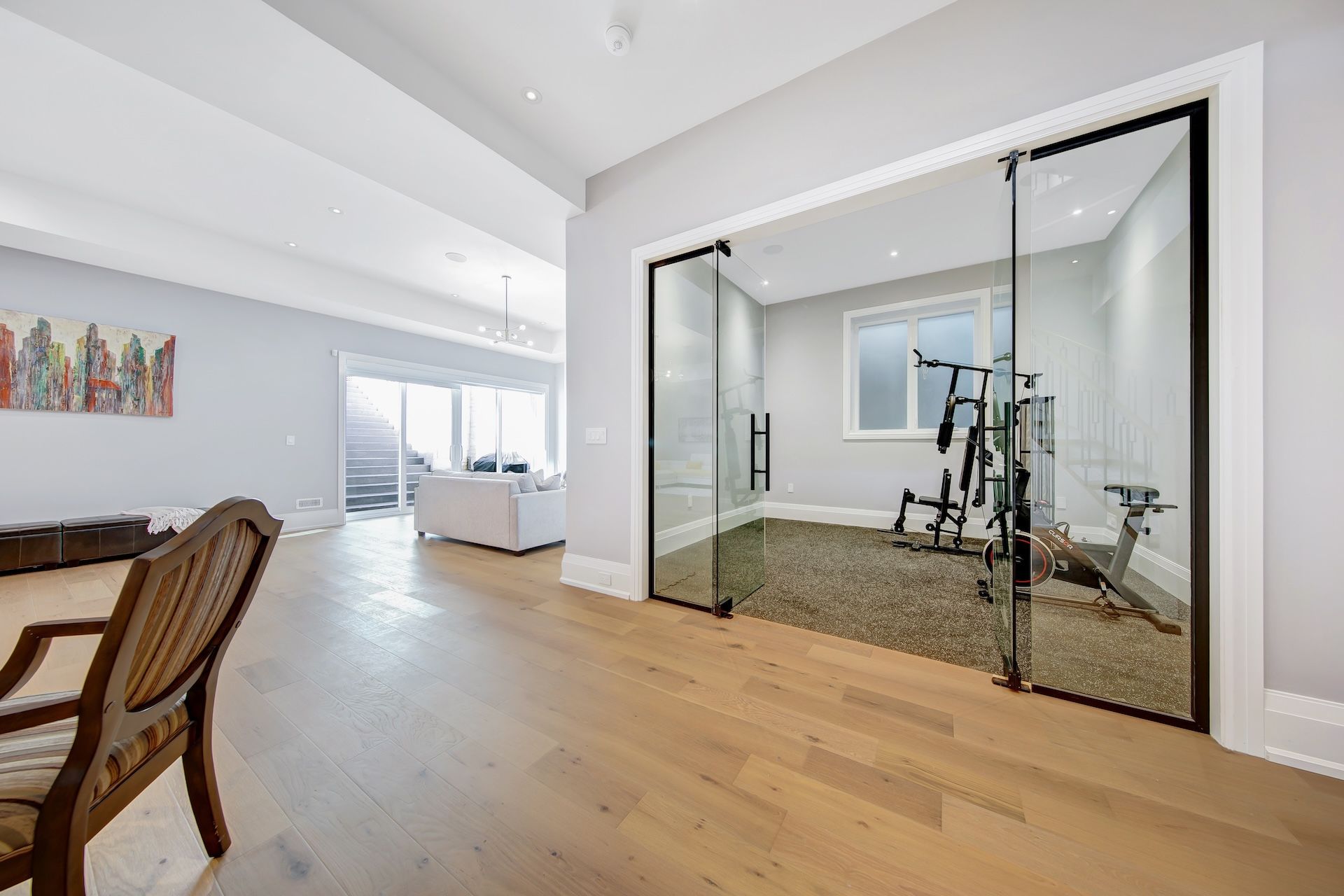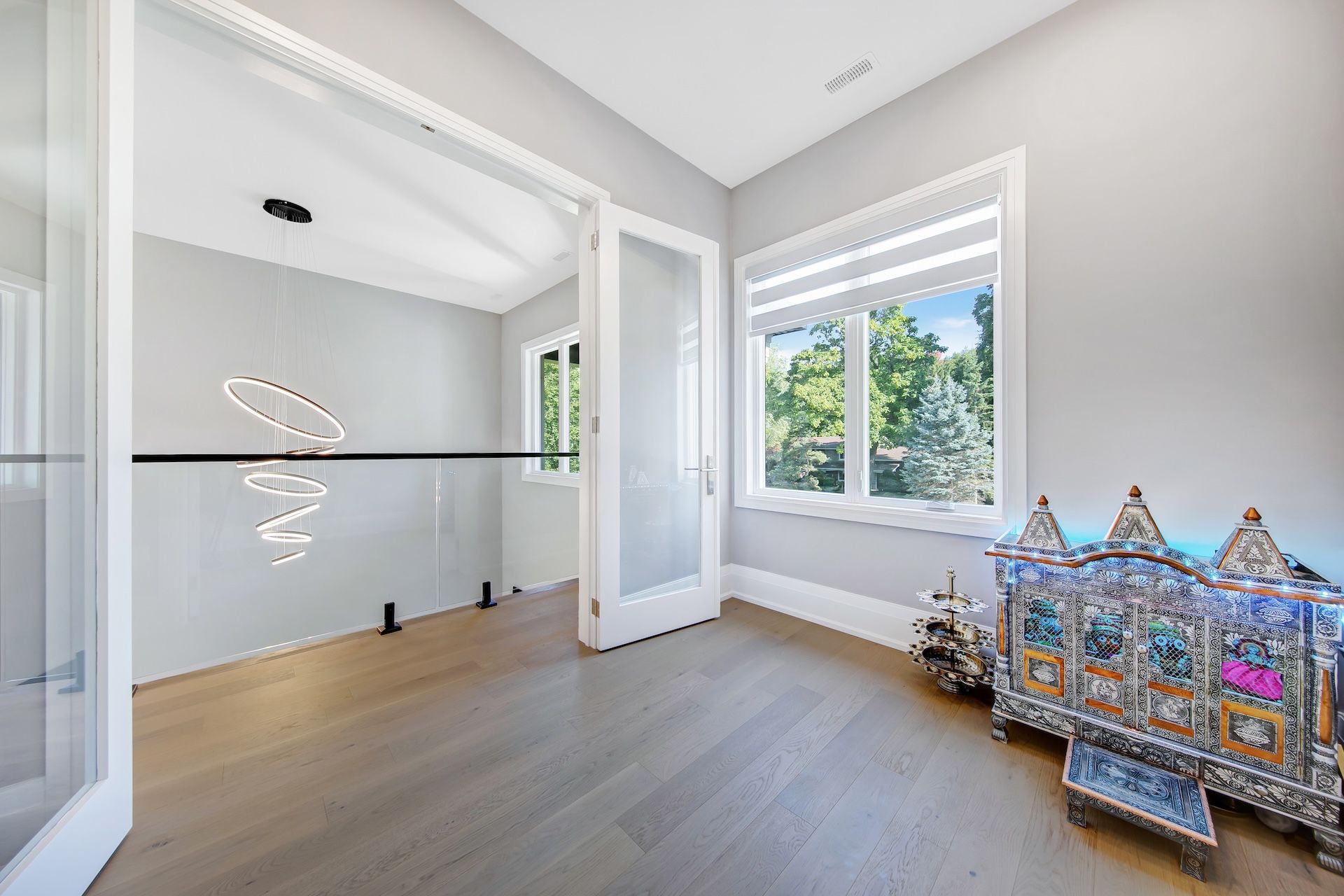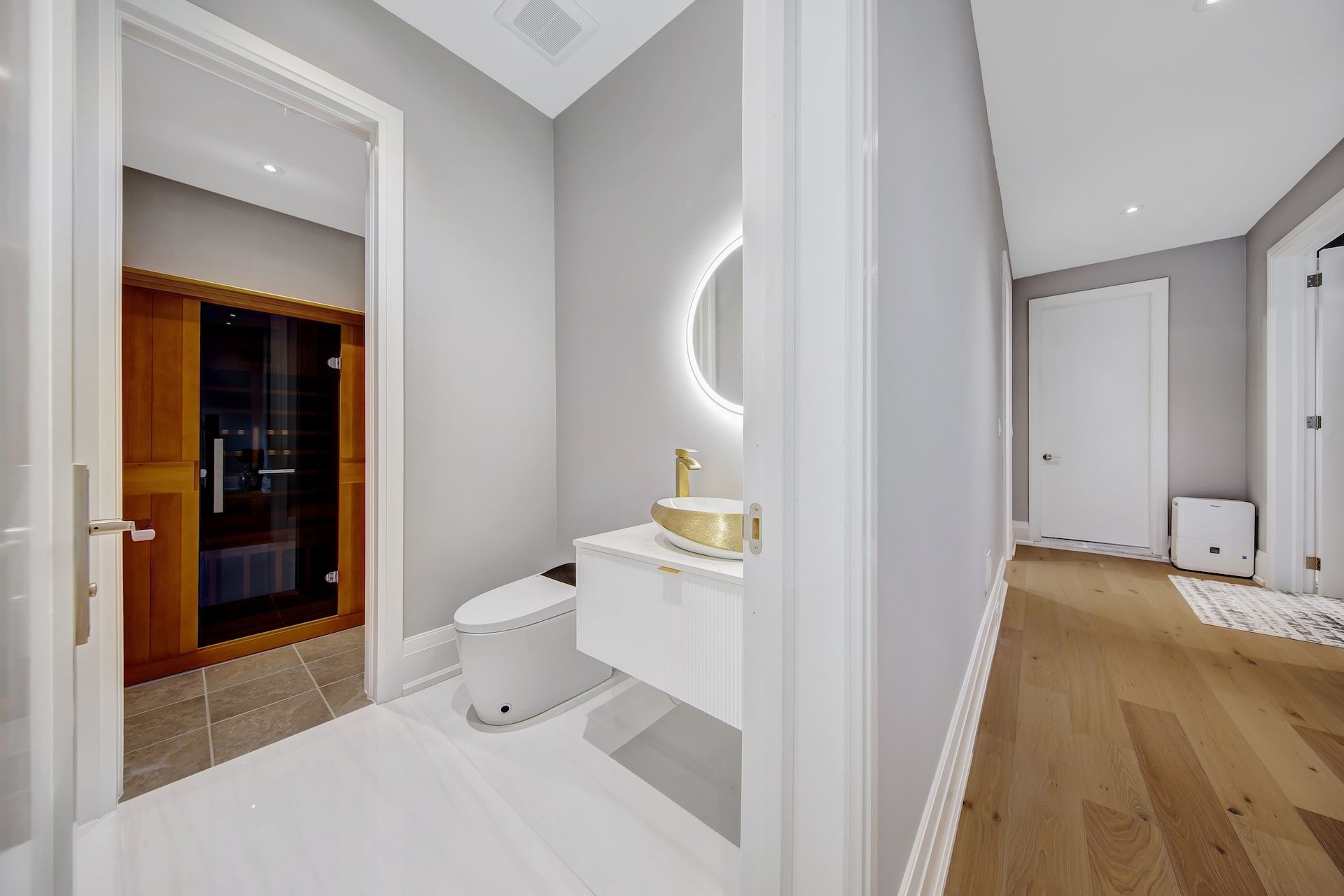 Welcome to 150 wolfdale avenue. Entertainers dream home, built by ambassador fine custom homes in 2023 fall, on a 0. 36 acres in southwest oakville, south of lakeshore road. With 7276 square feet of living space on all three levels, this home perfectly combines sophisticated luxurious design with quality construction to create the ultimate package. The main floor is beautifully designed with exquisite detail radiant heated large porcelain tiles. The near 11-foot ceilings provide an open-airy feeling throughout. No estate home would be complete without a grand foyer and and this home has just that with 22 -foot ceilings, center of the house with 24-foot ceilings with large skylight allowing the entire house to be flooded with natural light while also highlighting the stunning hanging circular staircase beneath. Built-in wine cellar storage for over 180 bottles. The kitchen is a show piece with stunning 10-foot waterfall island, quartz slab backsplash and two-toned cabinetry and top-of-the-line wolf ,sub-zero & miele appliances. The kitchen/great room combination is designed for large scale entertaining with it being open concept to the dining room. A tucked away mud room, walk in closet with custom shelving & an elegant custom powder room are the perfect spaces to keep your family organized while providing inside access to both the garage and rear yard. Main floor you find your primary home office with front yard views. Elevator besides mud area travels all 3 floors for convenience of movement. The upper hallway stops you with a beautifully vaulted ceiling, skylights. Primary bedroom is located across the rear of the home taking in the best views of the backyard with ample natural light. The open concept walk-in closet with a skylight complements the primary ensuite, is a beautiful combination of rich tones to create the ultimate spa oasis. 3 additional bedrooms, laundry & library are found upstairs, each one uniquely decorated & appointed with closets and ensuites.