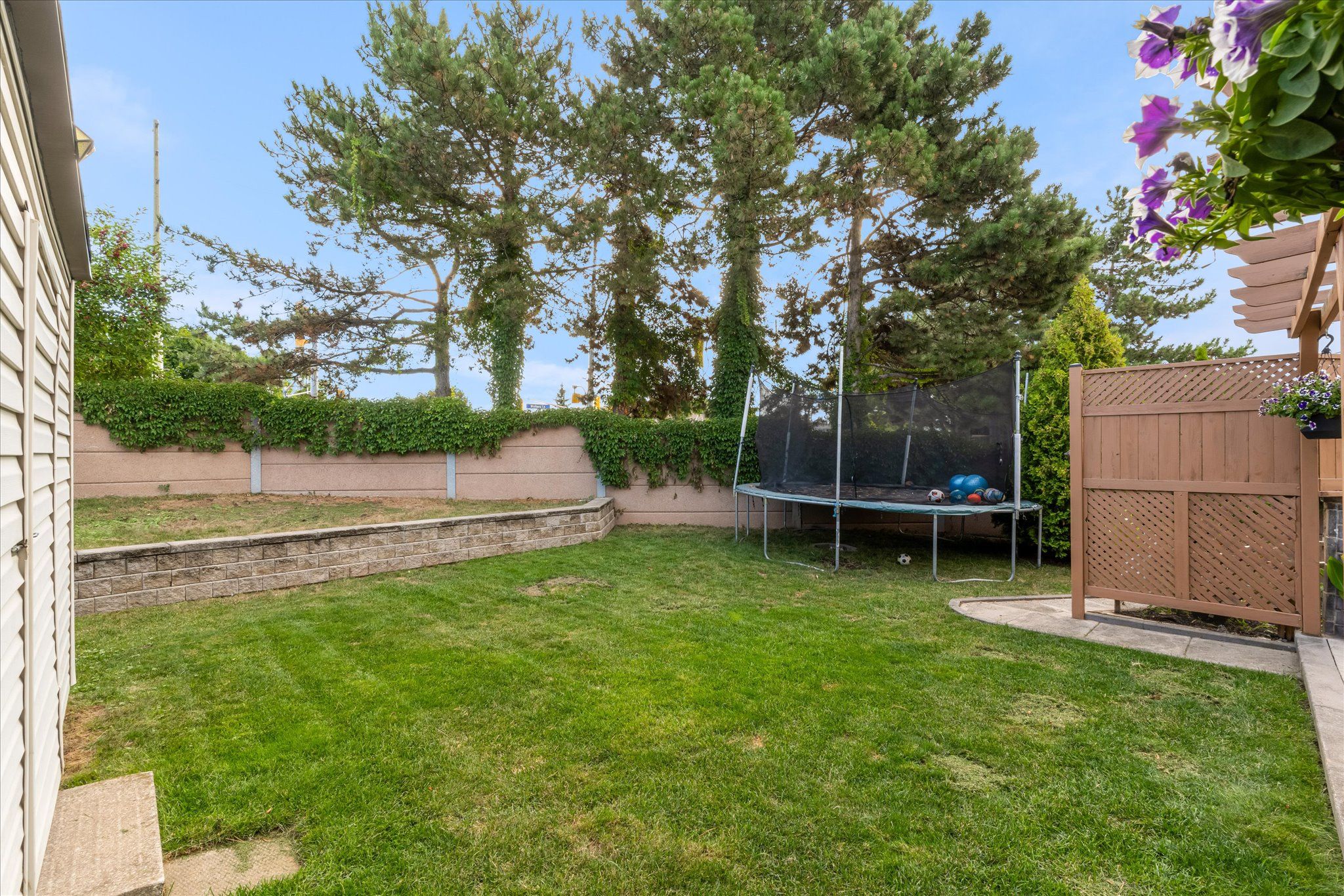 • Spacious multi-tiered backyard with stone patio, great for entertaining.