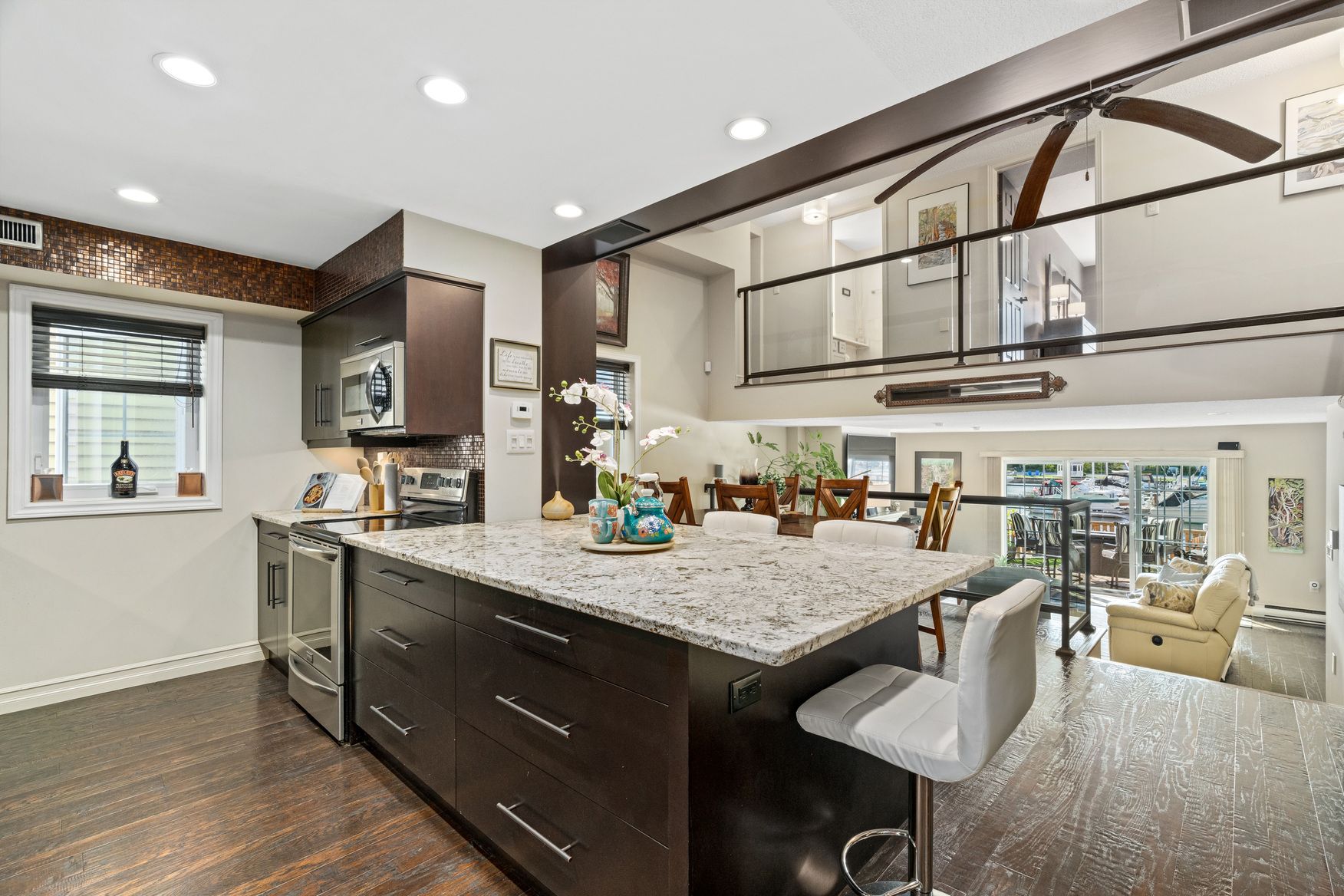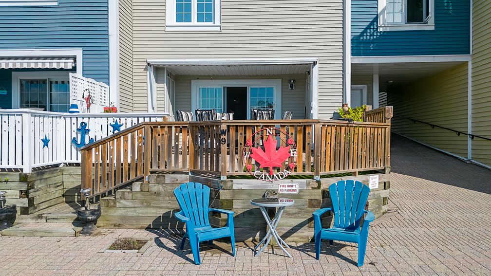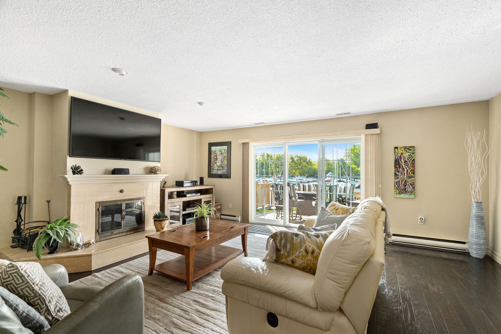 • Main floor waterfront condo with three bedrooms and three bathrooms.