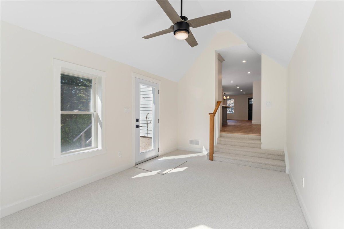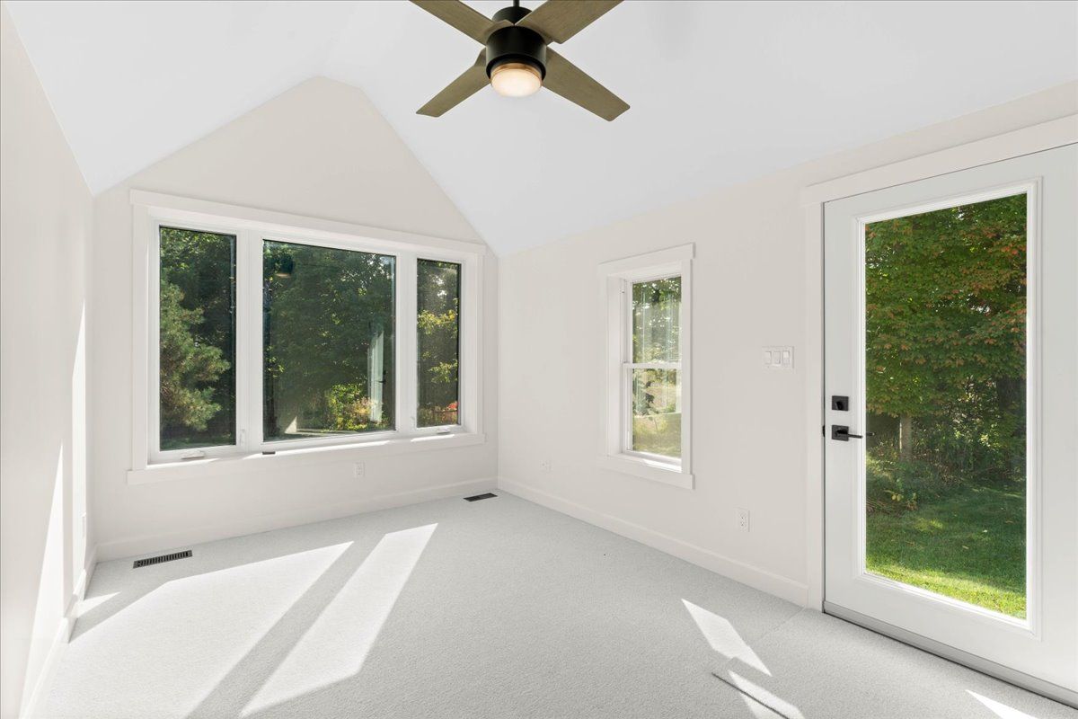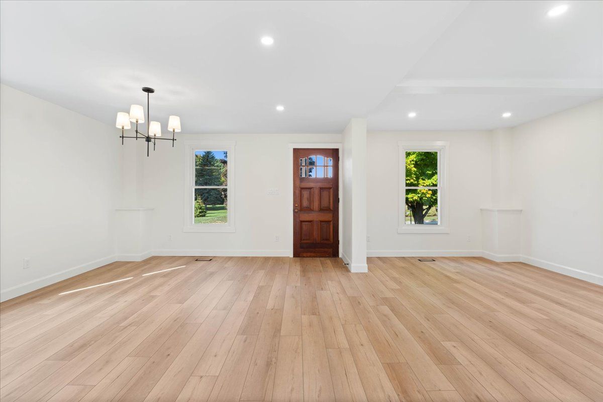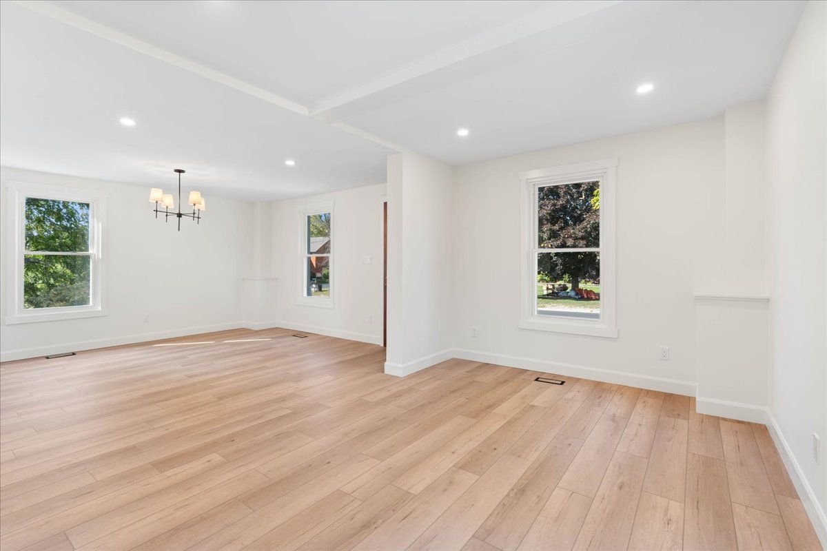 • Large backyard overlooking farm fields, providing a peaceful retreat.
