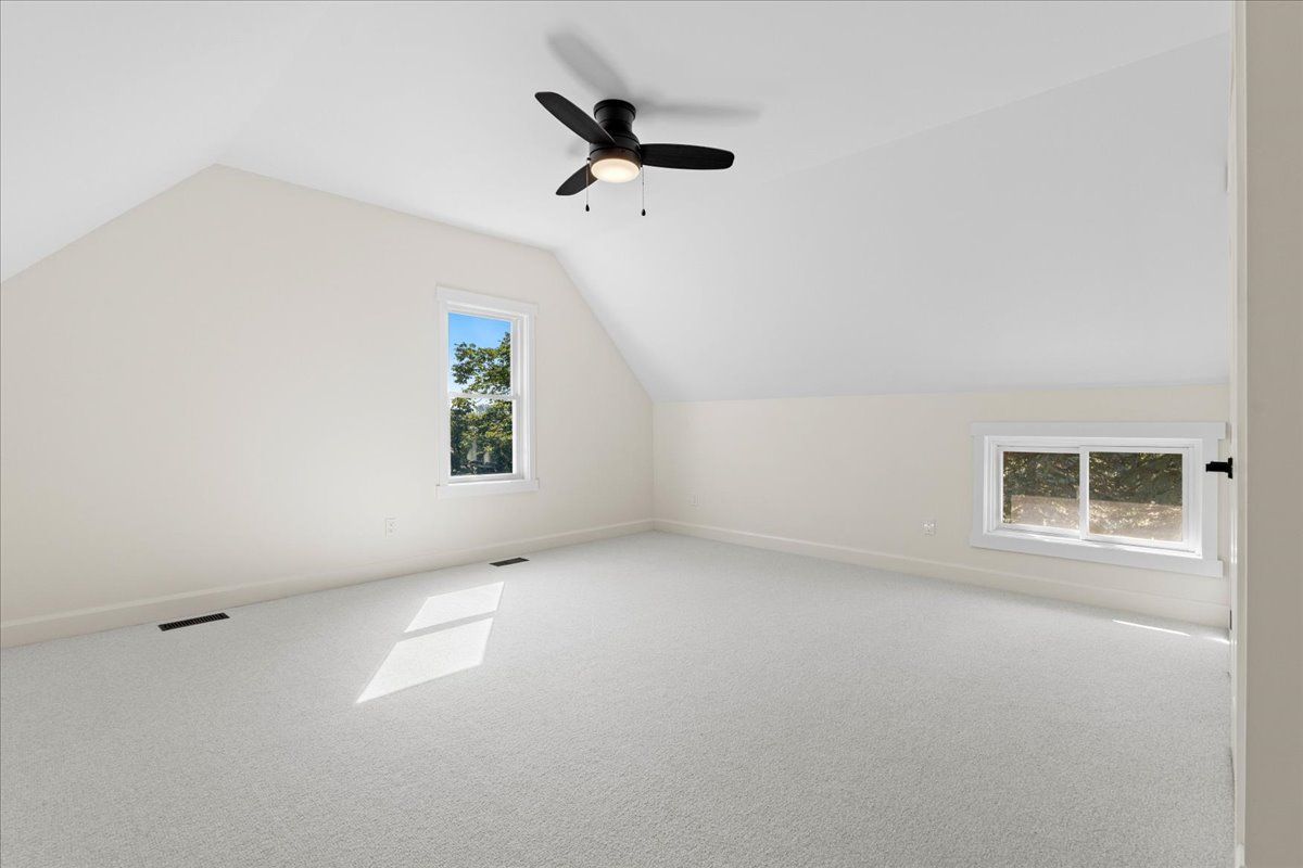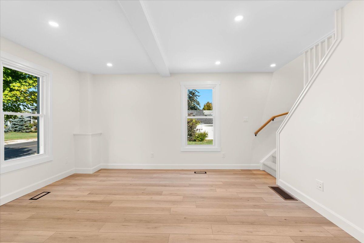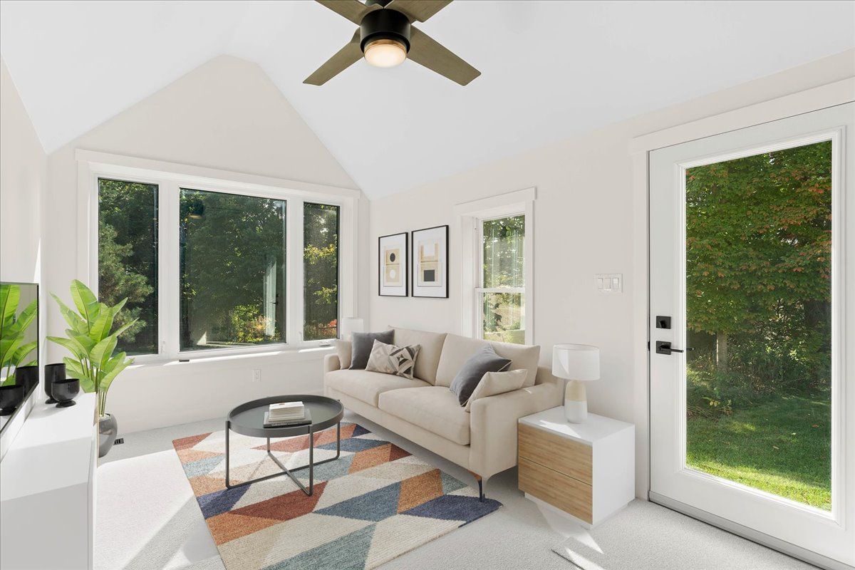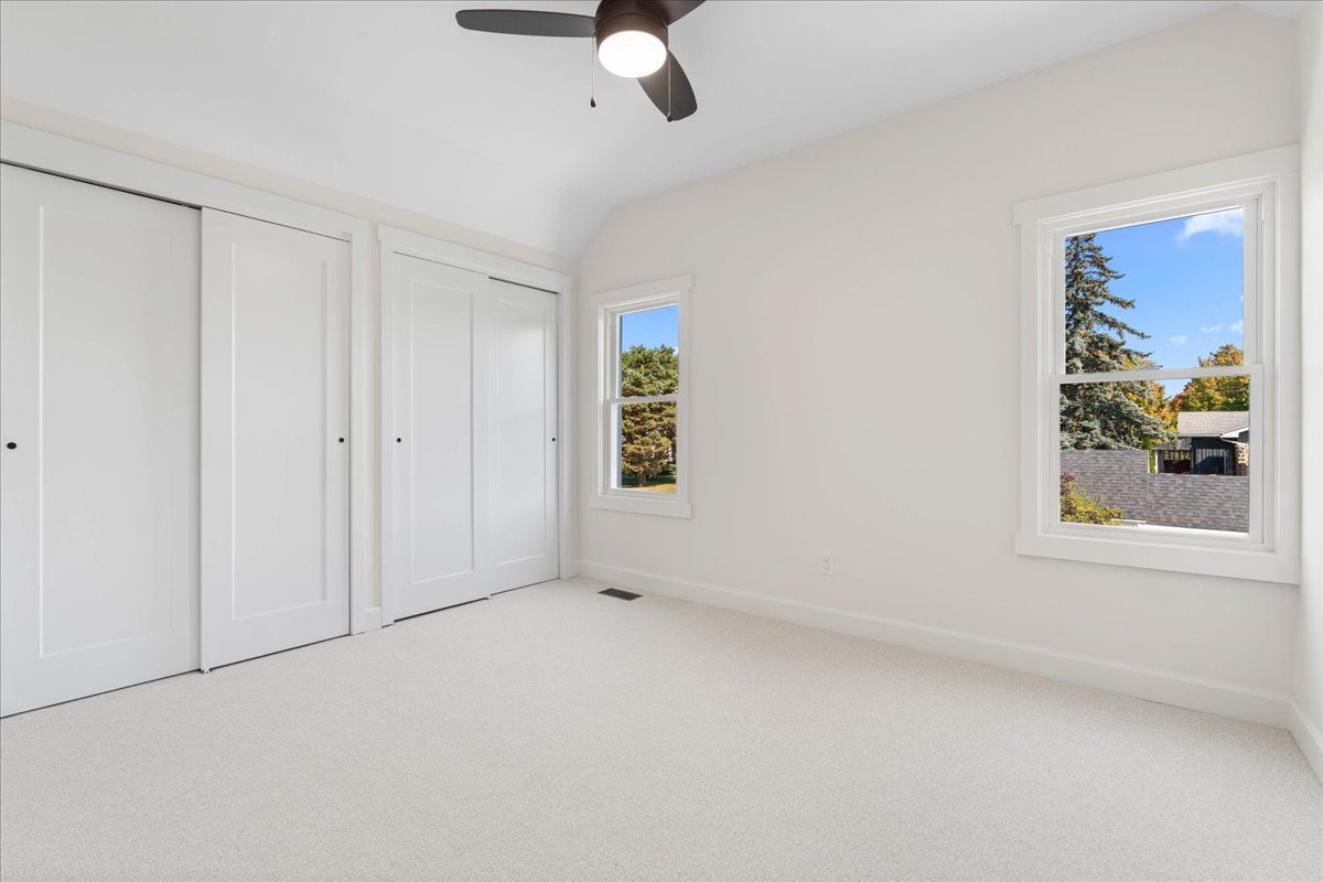 • Large backyard overlooking farm fields, providing a peaceful retreat.